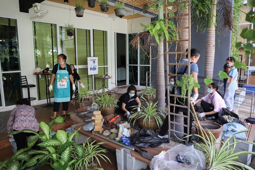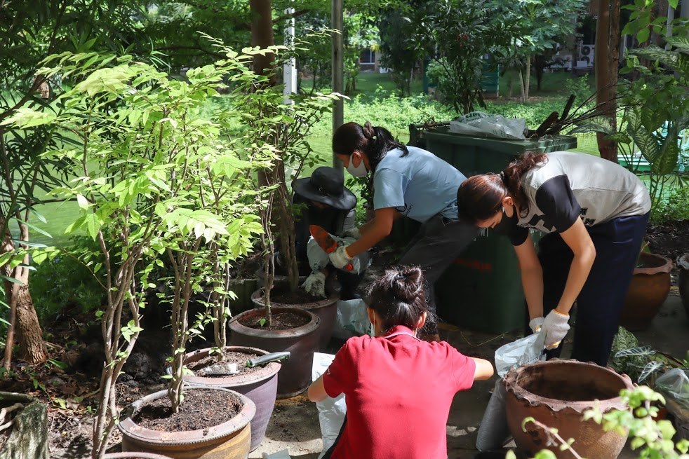 Lec. Hemmarat Wachirahatthapong, the director of BUU Library together with the library’s staff held “BUU Library’s unity Big Cleaning Day COVID-19 Fighter” Project in order to orderly arrange working environment, improve the landscape around the library to be clean, shady, and beautiful and have a conductive atmosphere for learning on 19 June 2020.