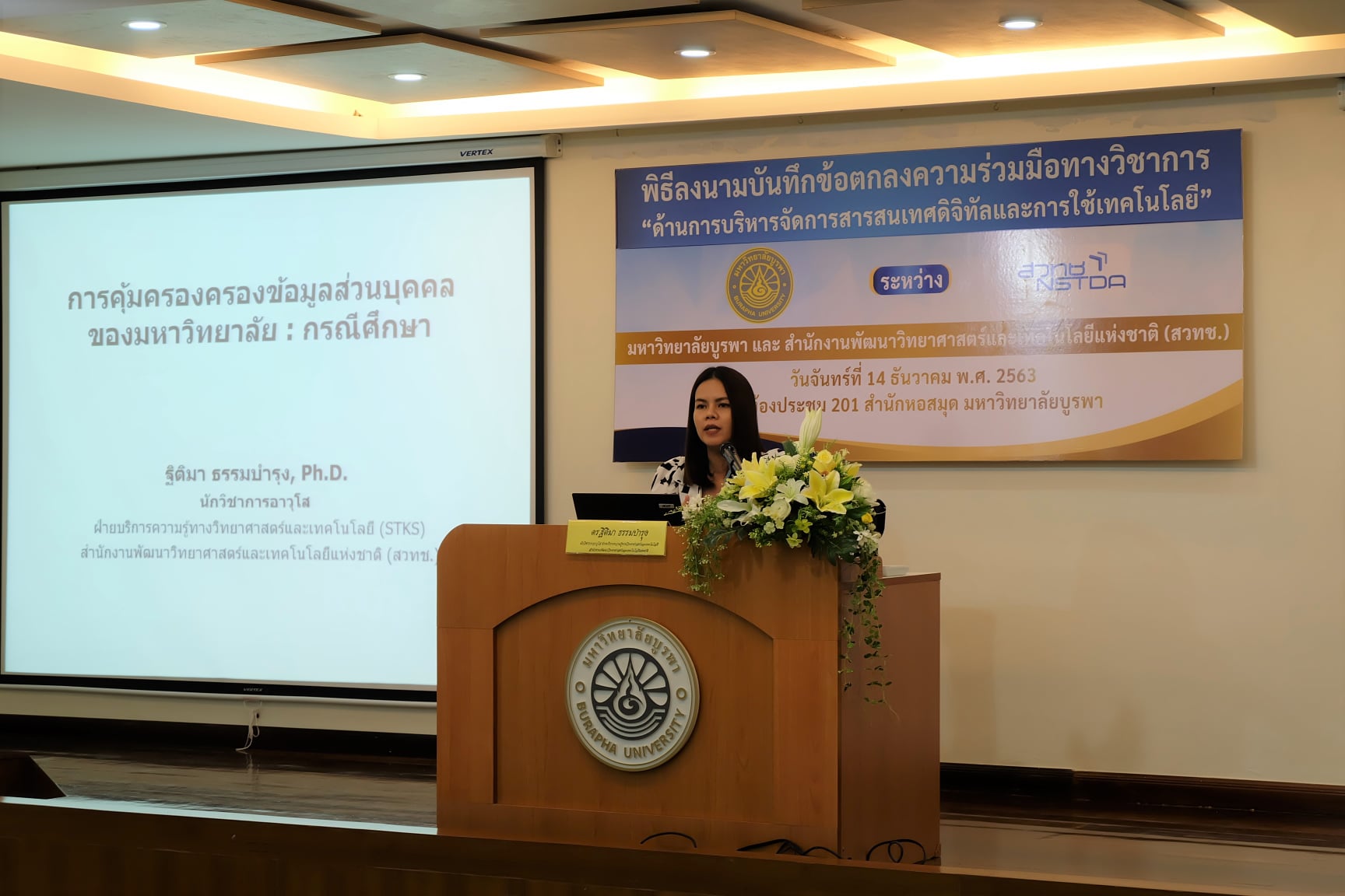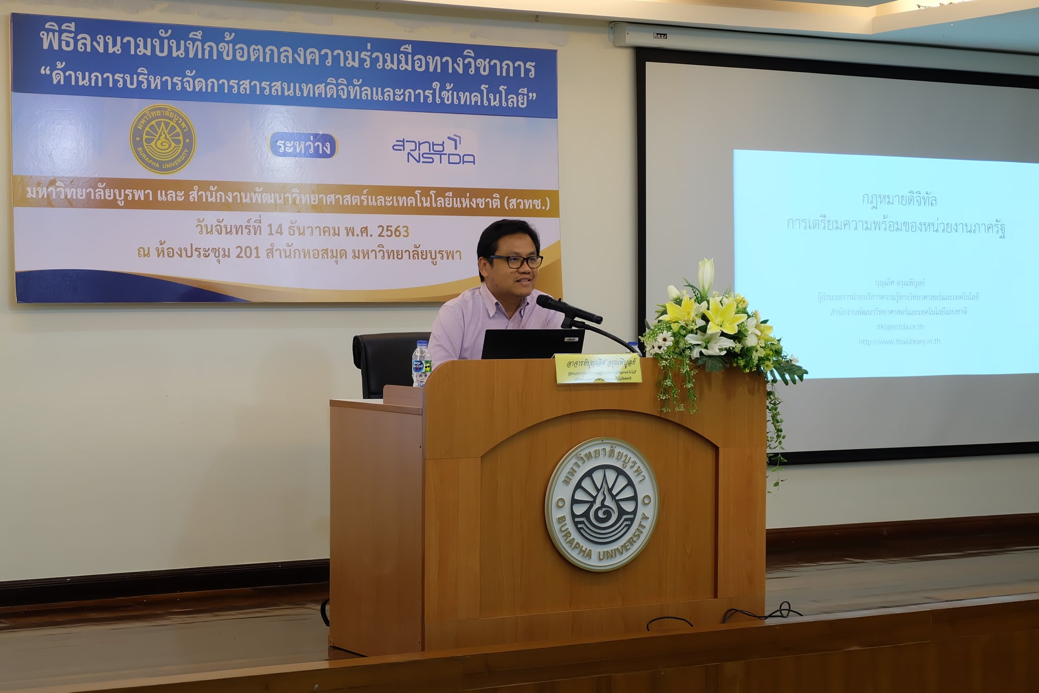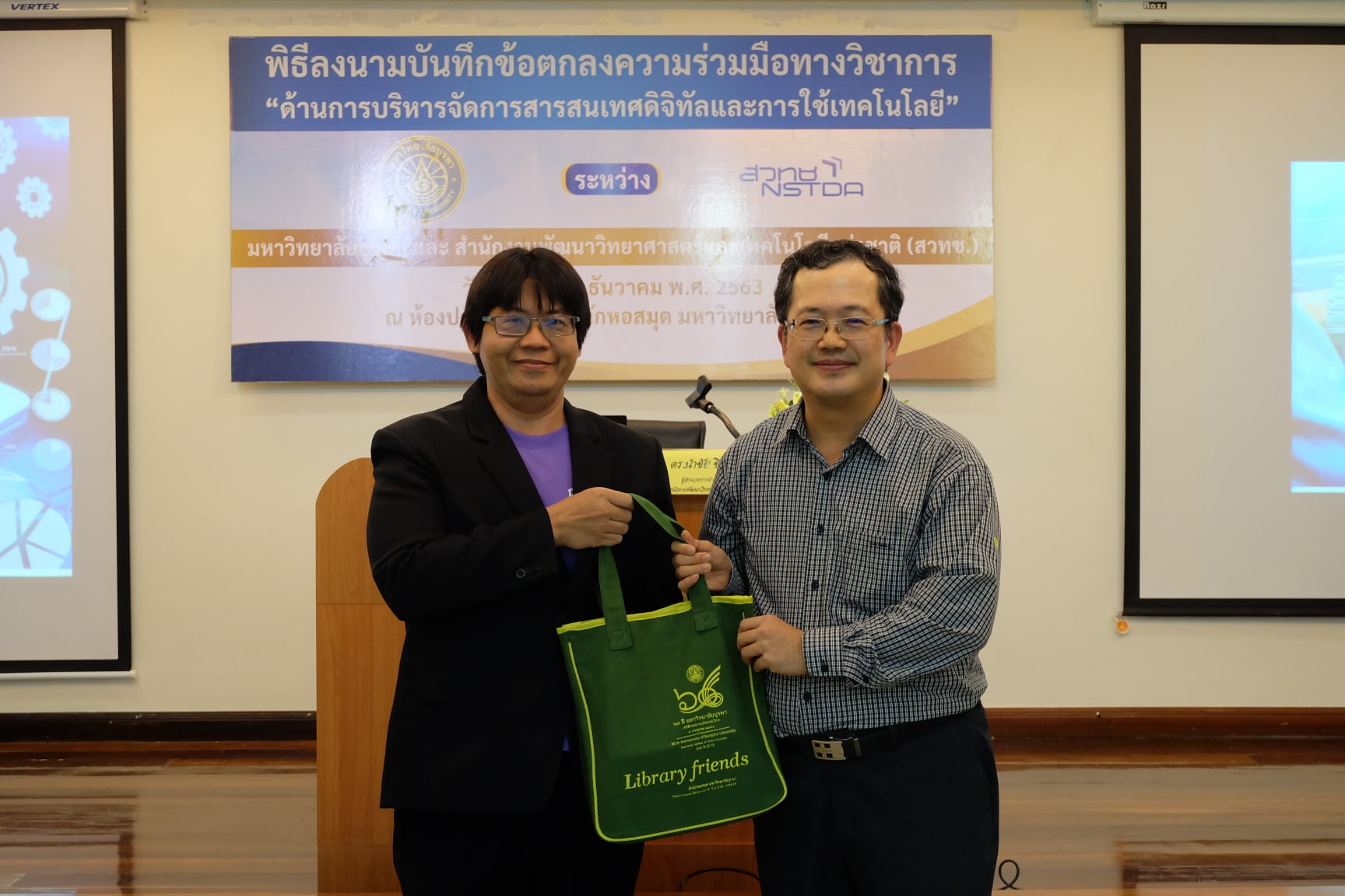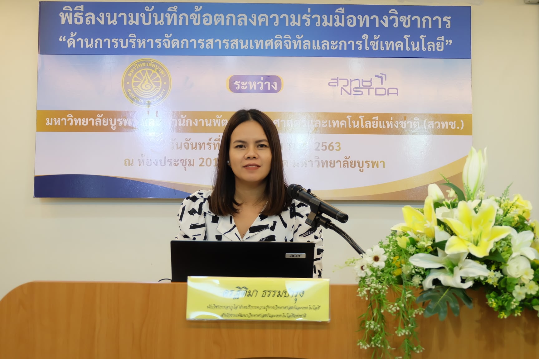 Burapha University Library together with National Science and Technology Development Agency (NSTDA) organized an academic lecture with an honor from Dr. Numchai Cheewawiwat, Director of Science Publishing, National Science and Technology Development Agency (NSTDA) to be a special speaker on the topic “Science and Technology Trends in the New Century” Lec. Boonlert Arunpiboon, Director of Science and Technology Knowledge Service along with Dr. Thitima Thambumrung, Senior Academic Officer, Acting Head of Service and Knowledge Management of Science and Technology of Knowledge Service Department gave