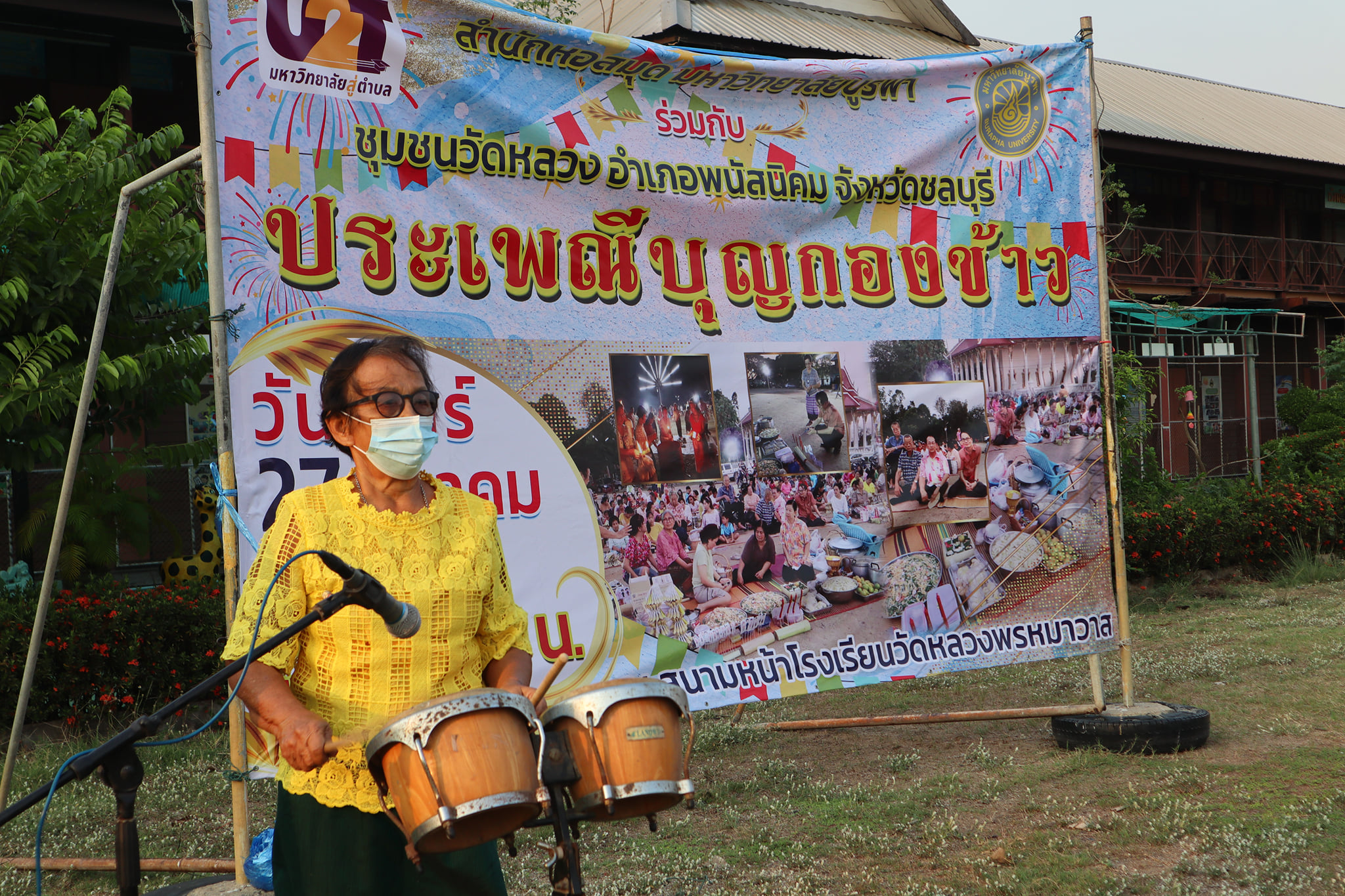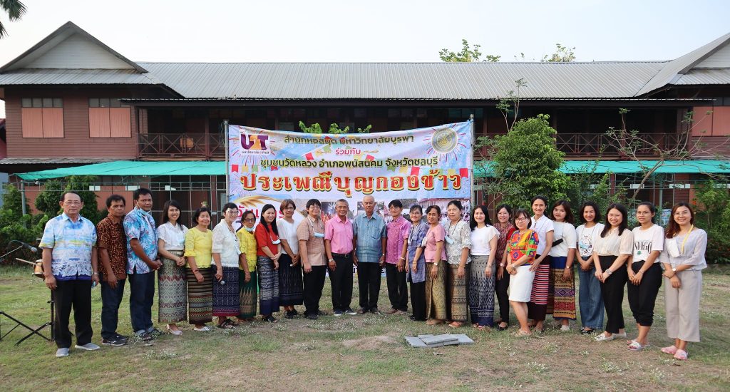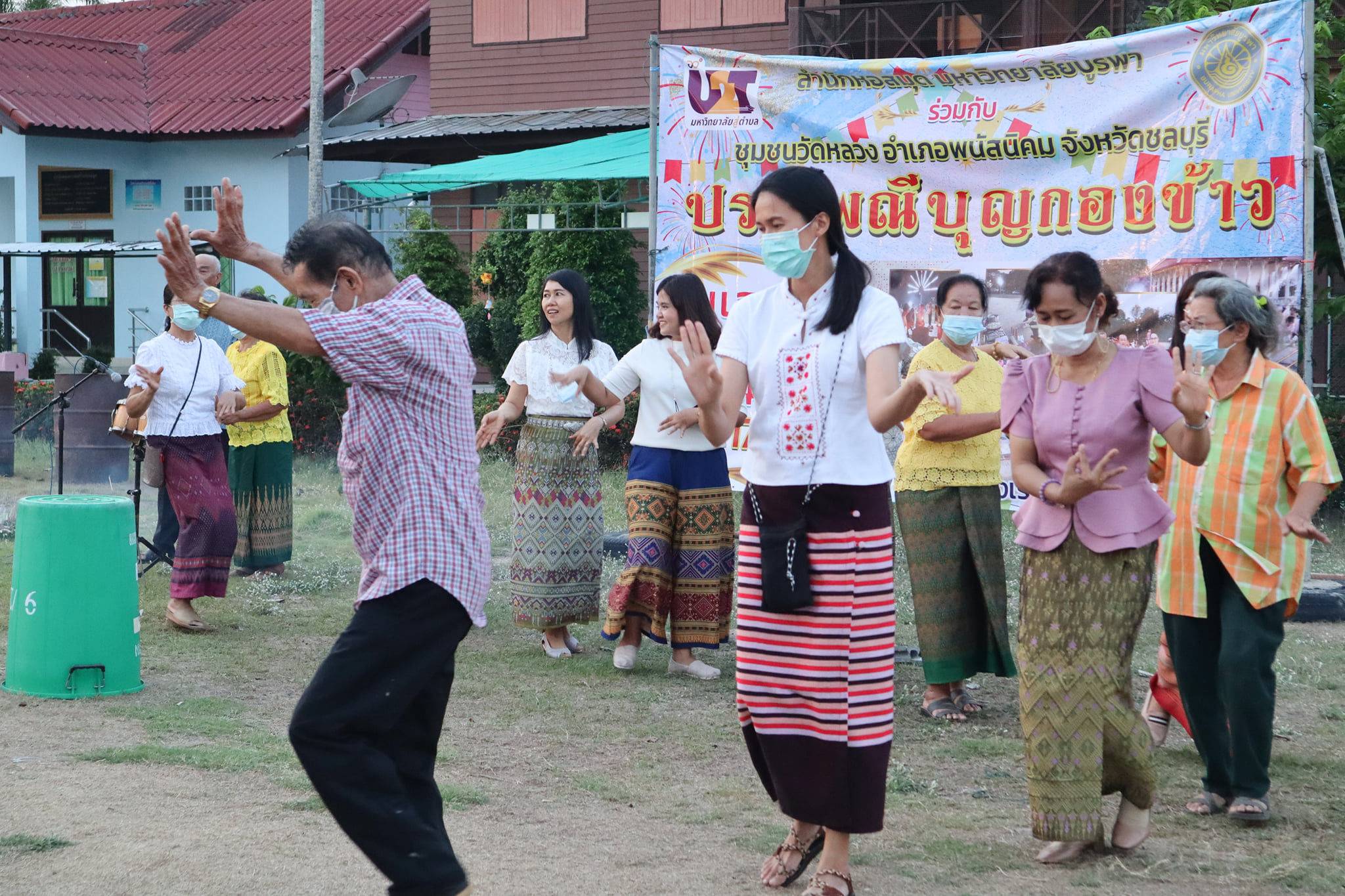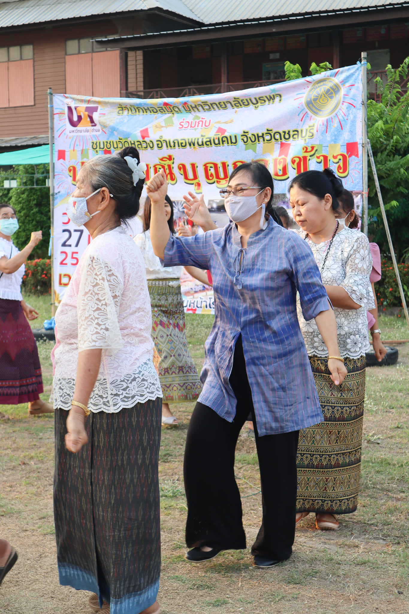 BUU Library, led by Lec. Hemmarat Wachirahatthapong, the library director, and the library staff together with Wat Luang Community, Phanat Nikhom District, Chonburi (A community in One Tambon One University Project) joined in Boun Kong Khao (Rice Festival). We brought both sweet and savory foodto perform the offering ceremony because it is believed that the ghost would not harm our own families or properties. After that, the villagers would form a circle to eat food together. Besides, we danced together. This event was held on 27 March 2021 at the fieldin front of Wat Luang Prommawat School.