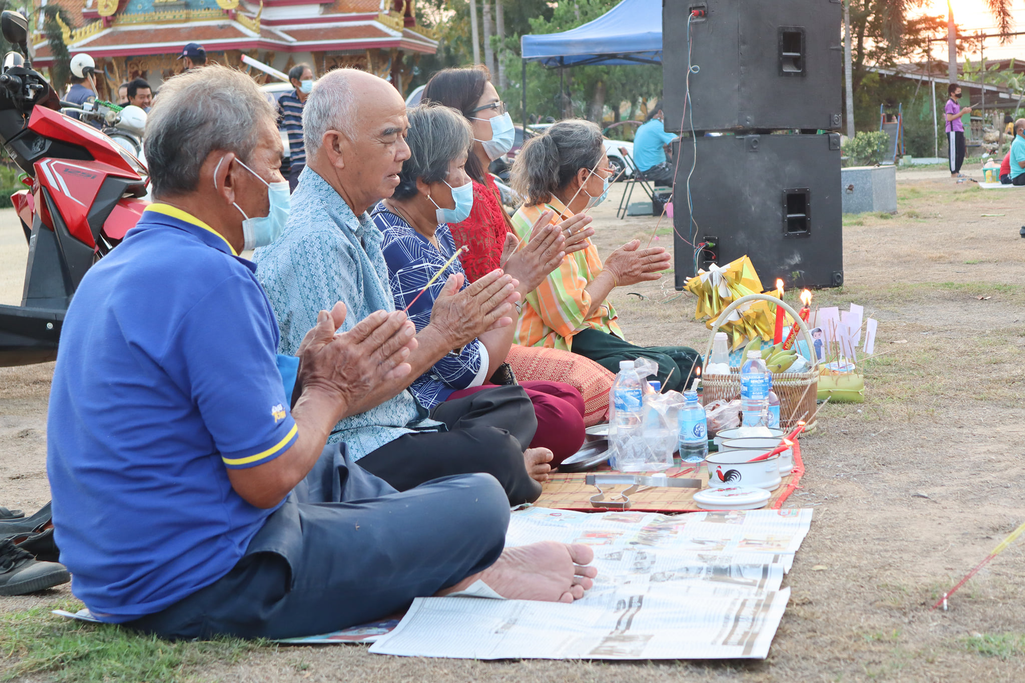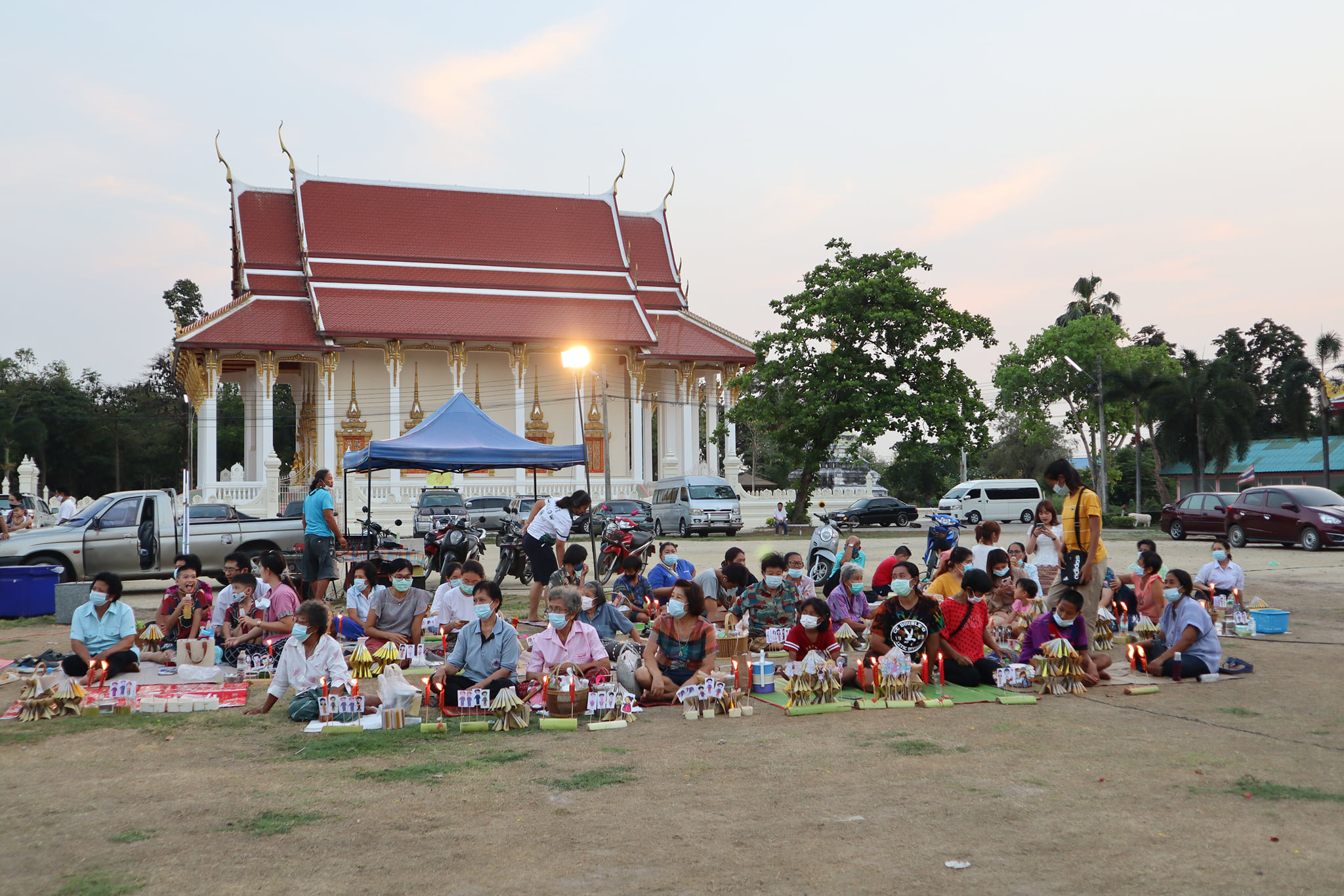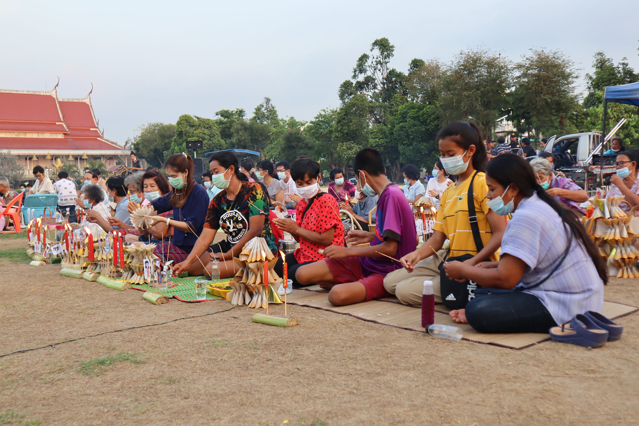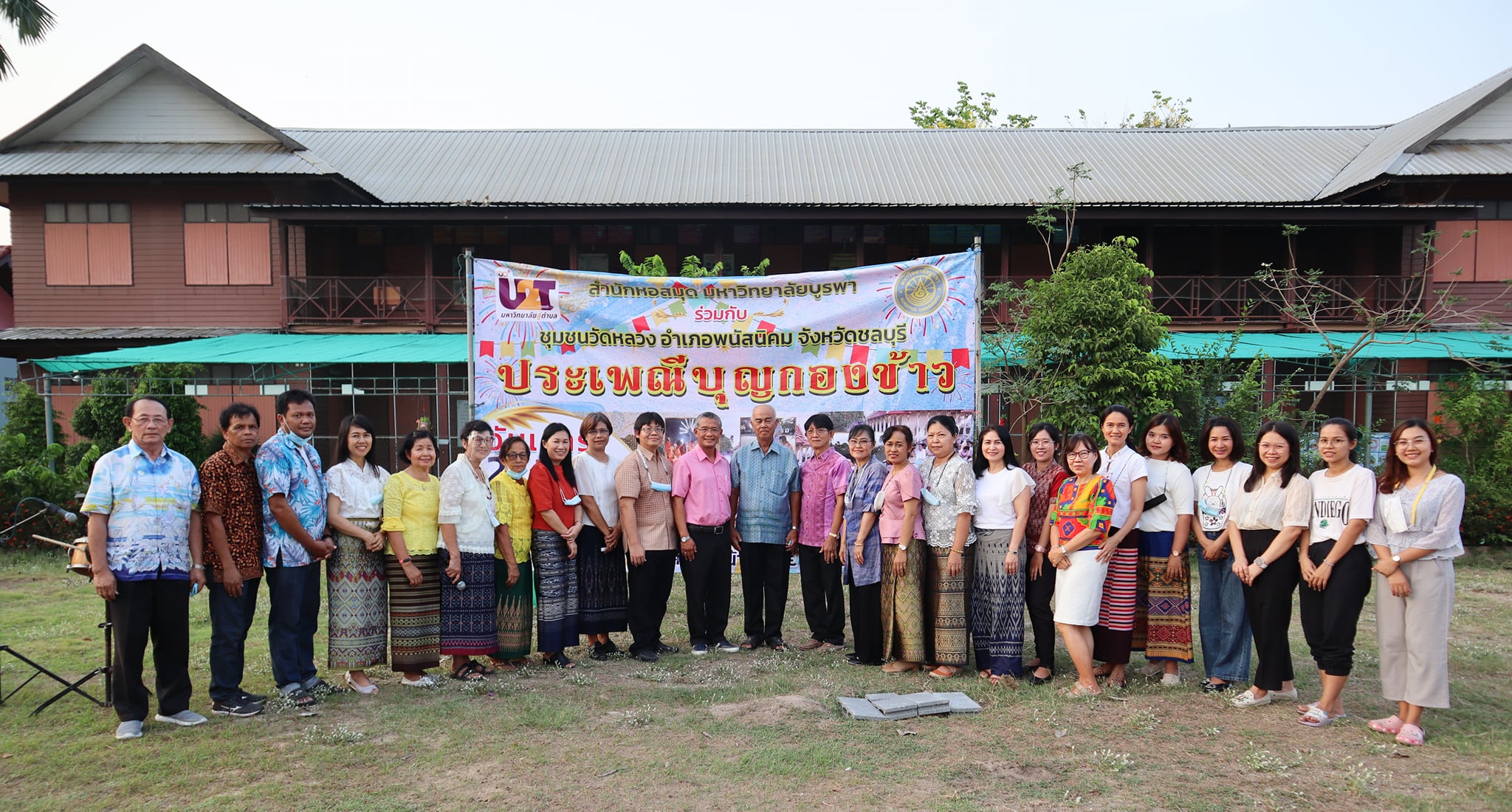 BUU Library, led by Lec. Hemmarat Wachirahatthapong, the library director, and the library staff together with Wat Luang Community, Phanat Nikhom District, Chonburi (A community in One Tambon One University Project) joined in Boun Kong Khao (Rice Festival). We brought both sweet and savory foodto perform the offering ceremony because it is believed that the ghost would not harm our own families or properties. After that, the villagers would form a circle to eat food together. Besides, we danced together. This event was held on 27 March 2021 at the fieldin front of Wat Luang Prommawat School.