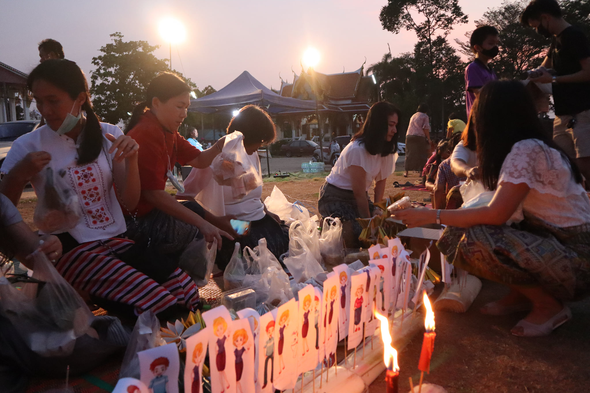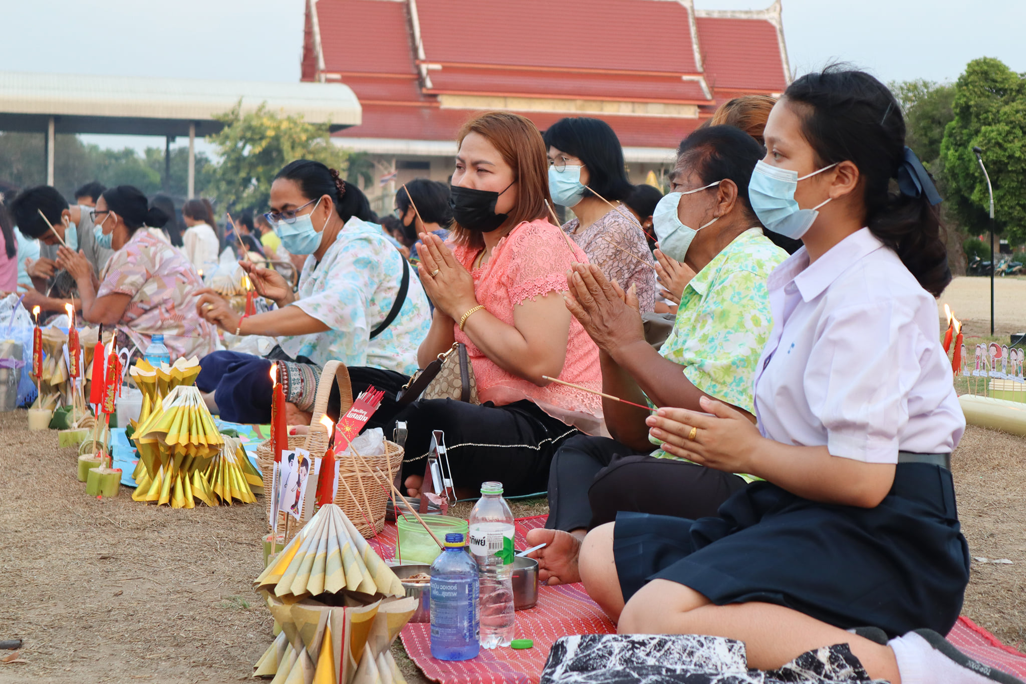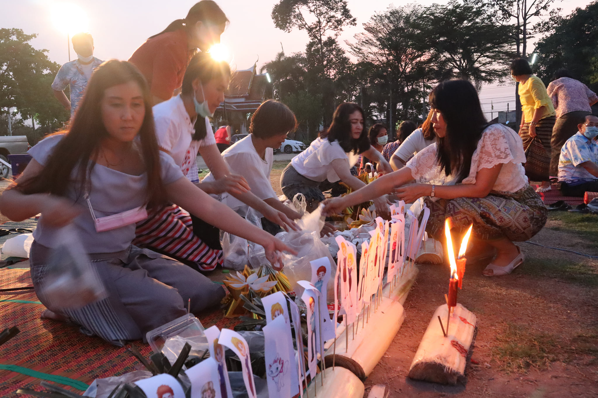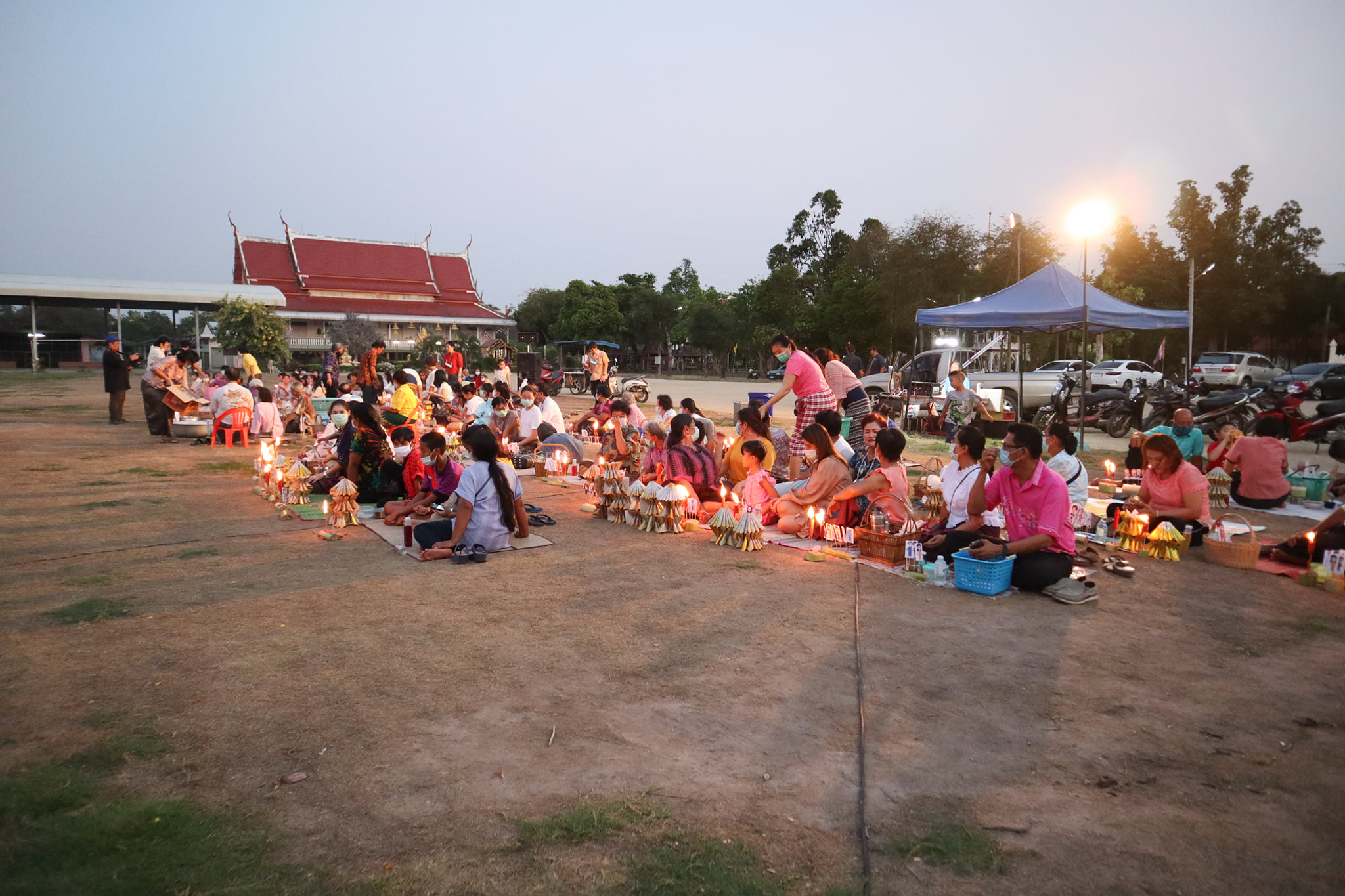 BUU Library, led by Lec. Hemmarat Wachirahatthapong, the library director, and the library staff together with Wat Luang Community, Phanat Nikhom District, Chonburi (A community in One Tambon One University Project) joined in Boun Kong Khao (Rice Festival). We brought both sweet and savory foodto perform the offering ceremony because it is believed that the ghost would not harm our own families or properties. After that, the villagers would form a circle to eat food together. Besides, we danced together. This event was held on 27 March 2021 at the fieldin front of Wat Luang Prommawat School.