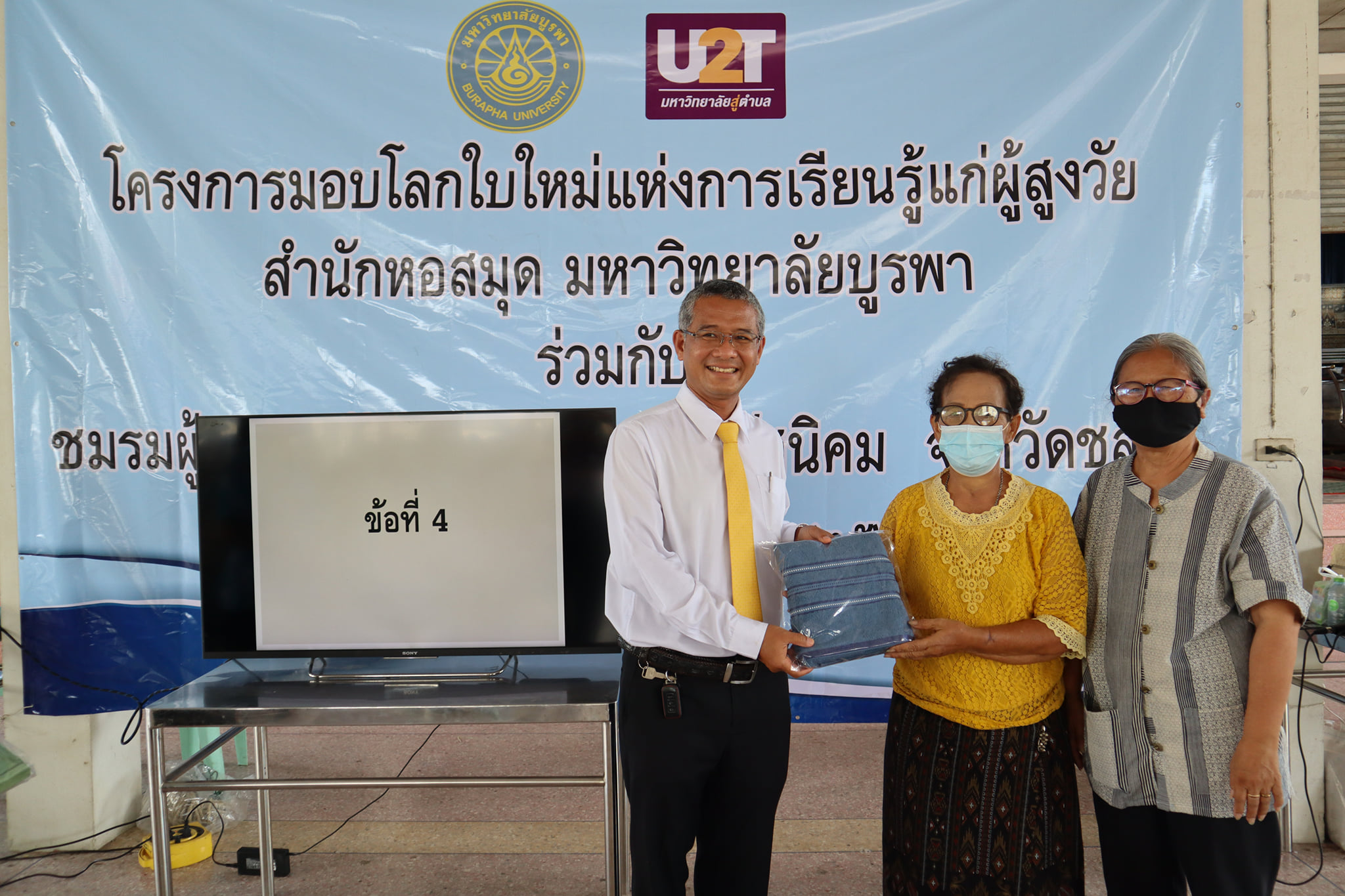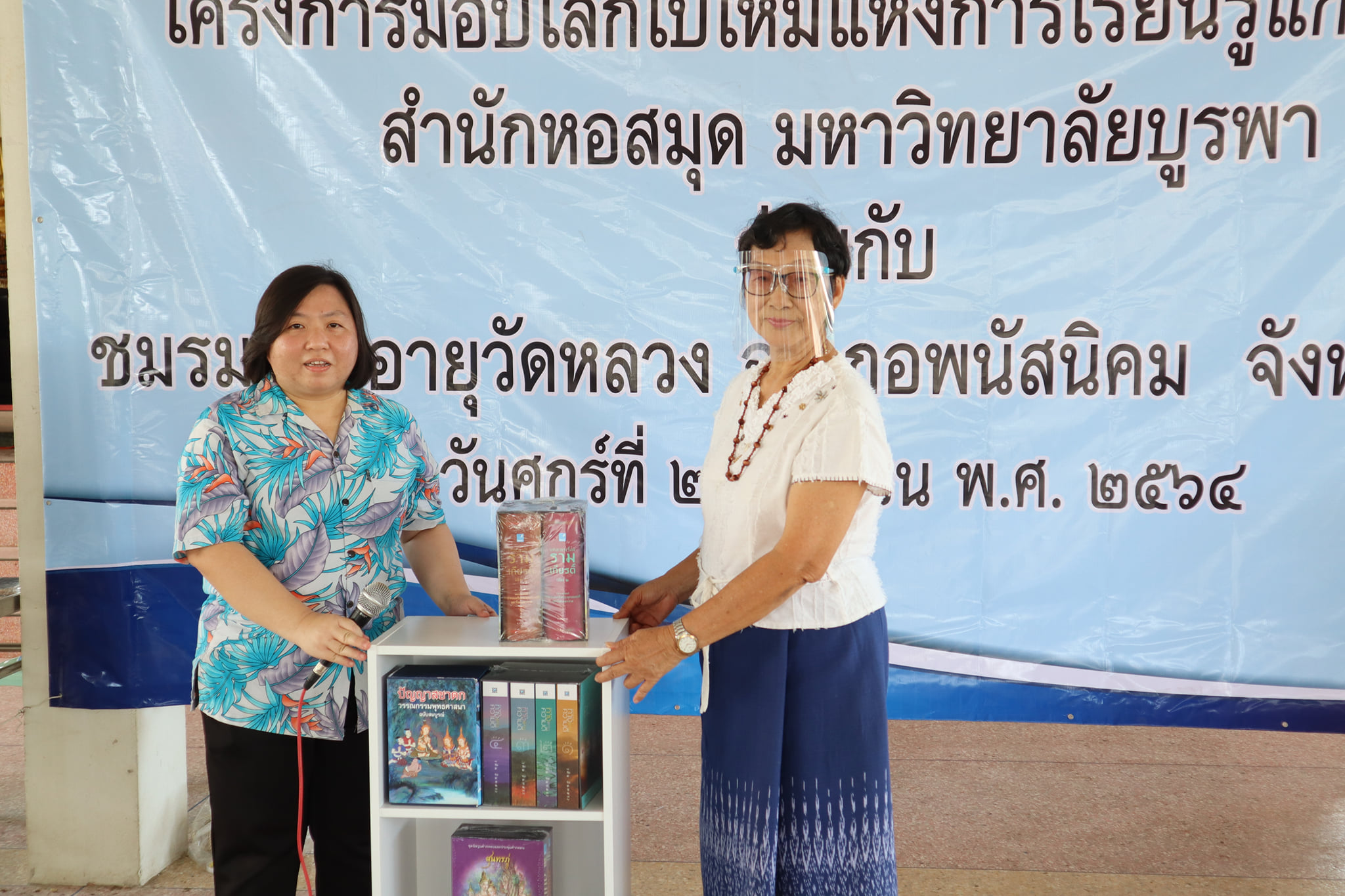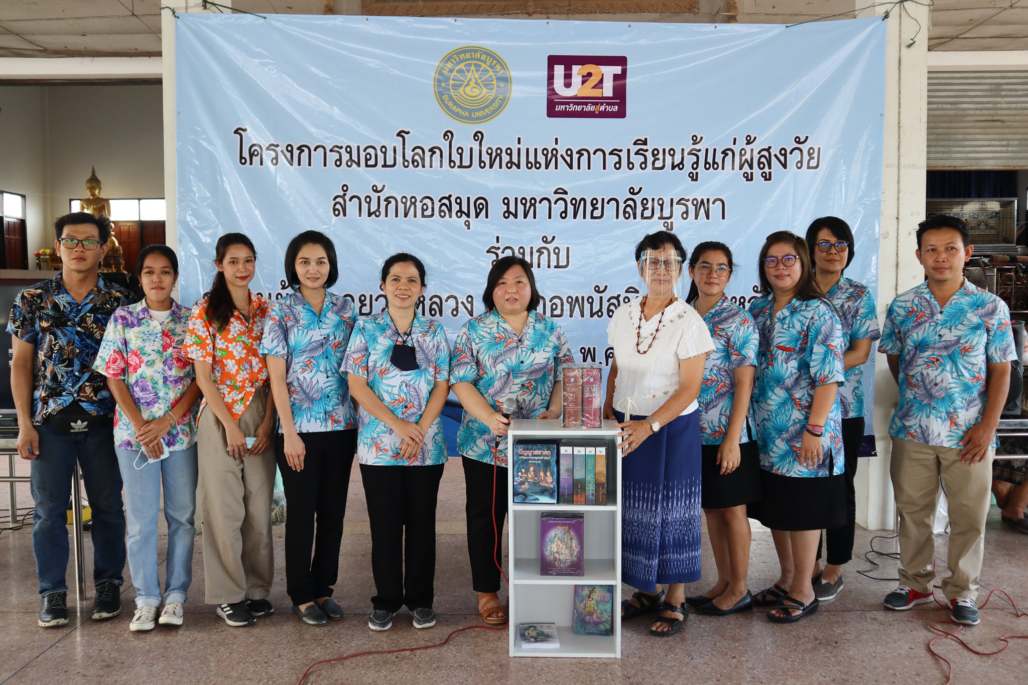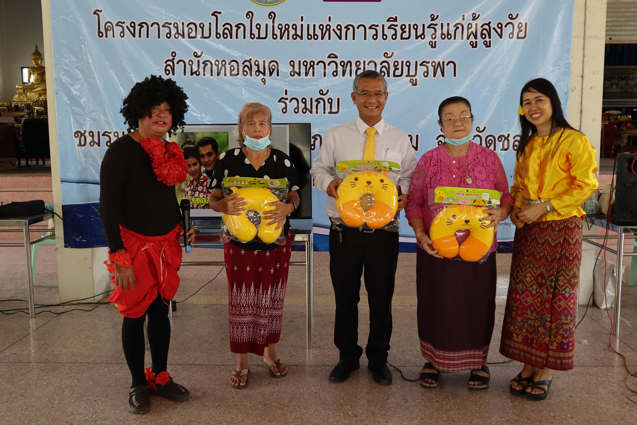 Burapha University Library held a project to give a new world of learning to the elderly under the integrated economic and social elevation project by sub-district, One Tambon One University (U2T) (University to Tambon, Build a taproot for the country): Wat Luang Sub-District by providing information media, holding reading promotion activities, and holding a water pouring ceremony to pray for the participants of the activities from Wat Luang Elderly Club on Songkran festival. This event was held on 2 April 2021 at Phrommawat Temple, Wat Bot Sub-district, Phanat Nikhom District, Chonburi.