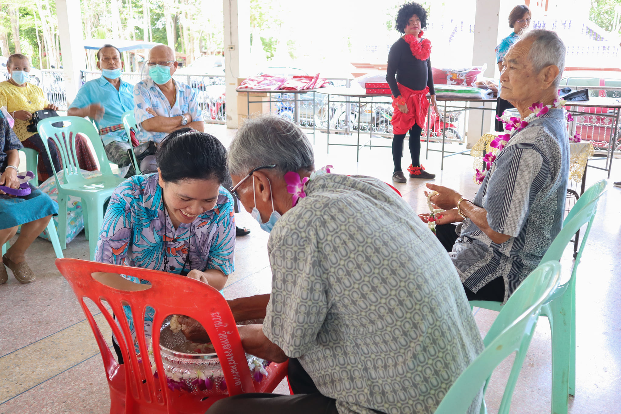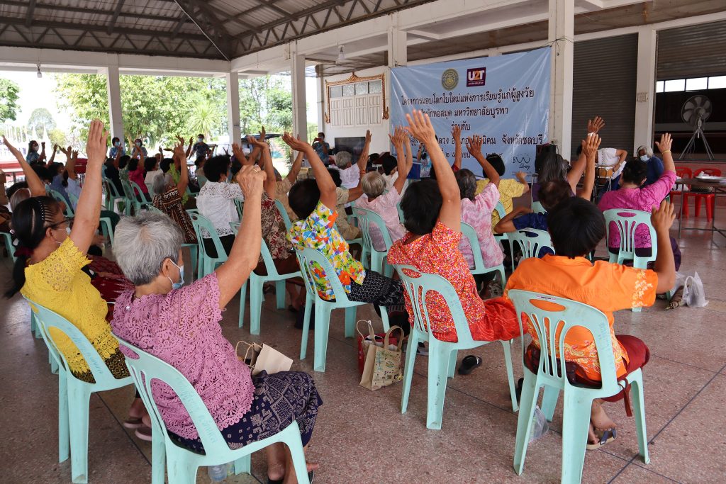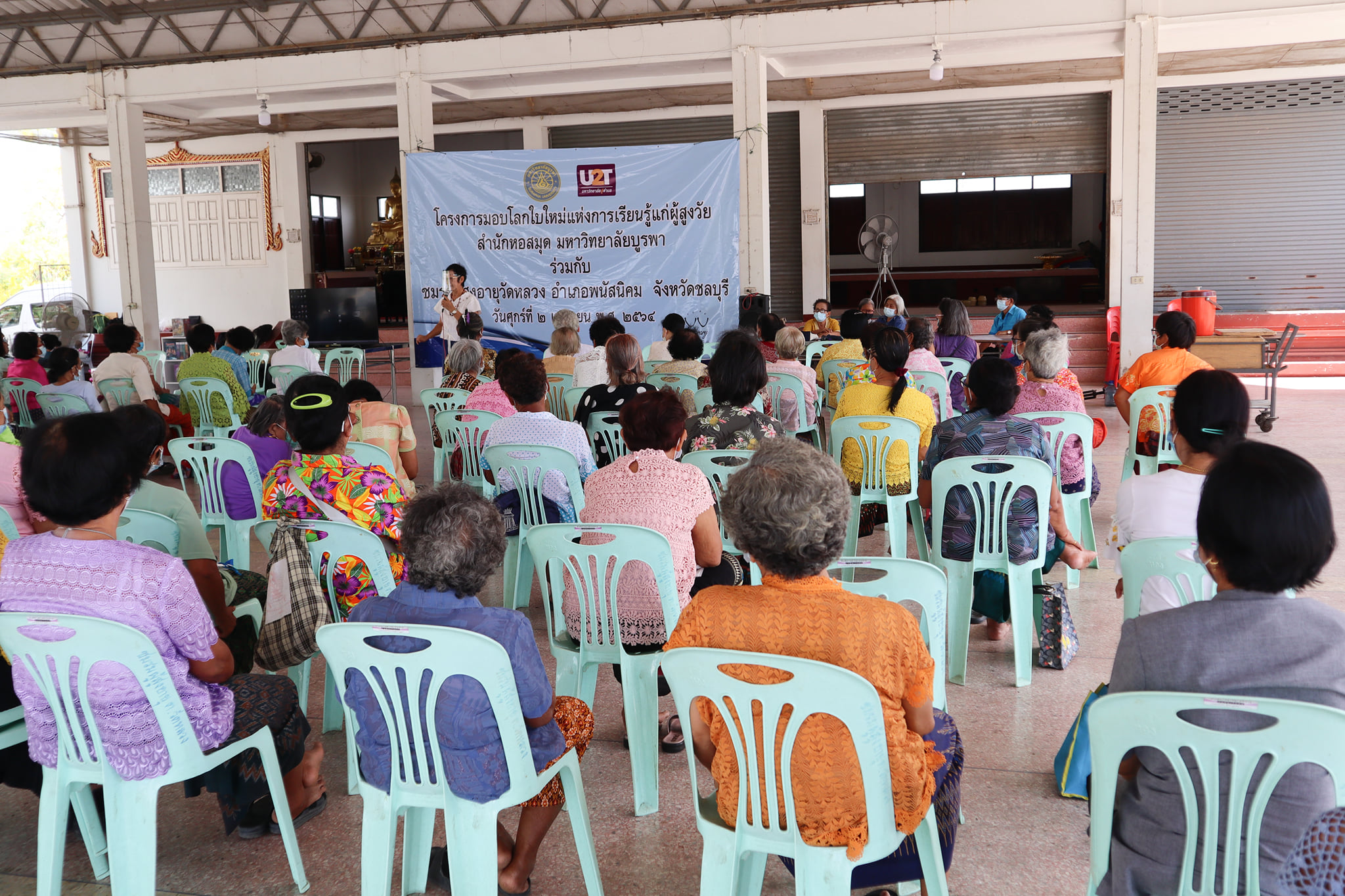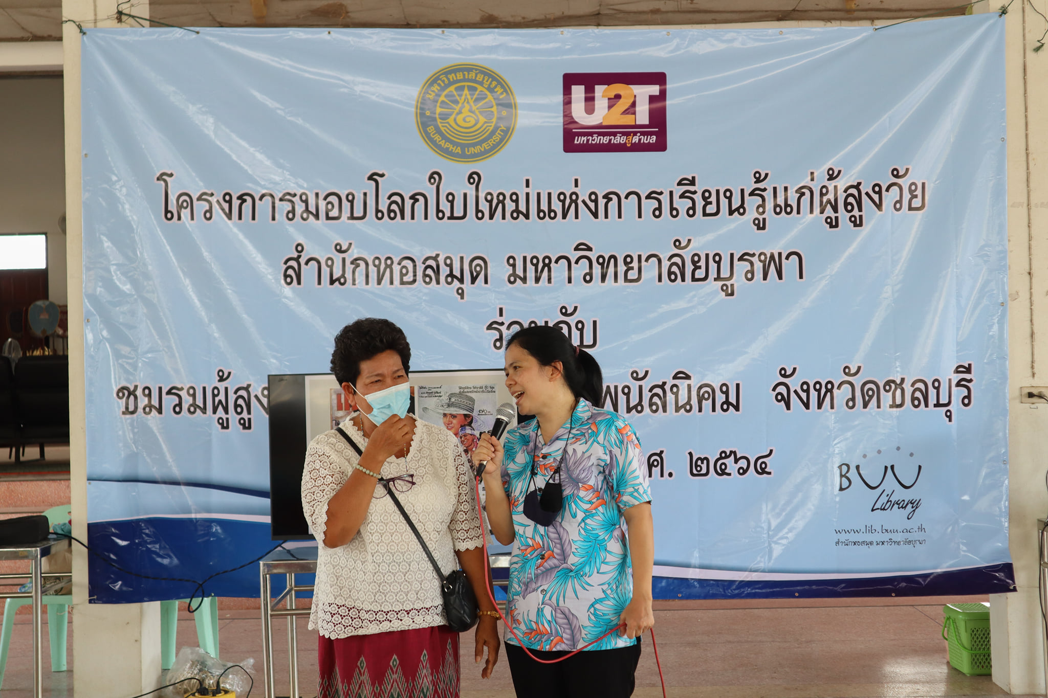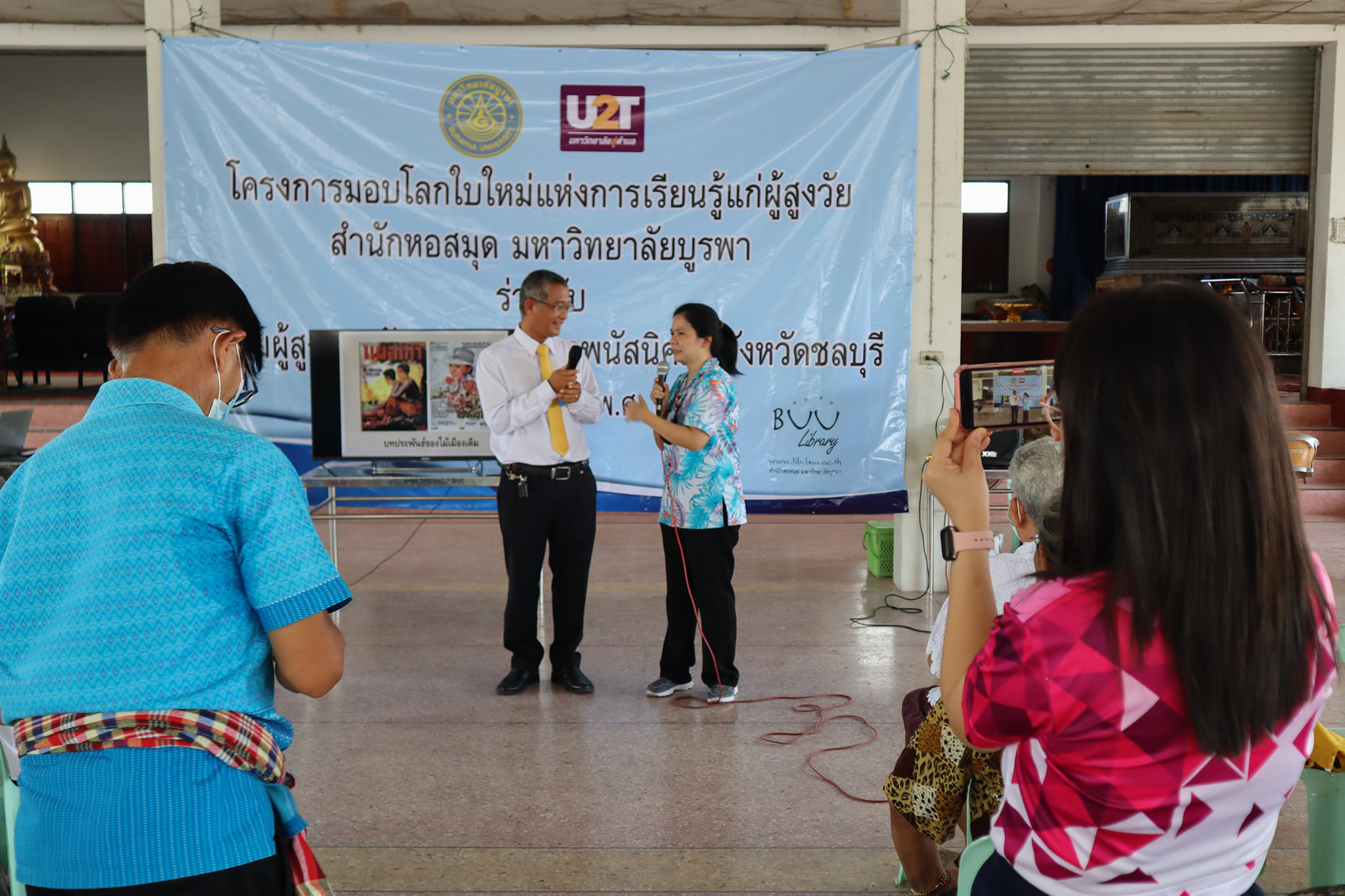 Burapha University Library held a project to give a new world of learning to the elderly under the integrated economic and social elevation project by sub-district, One Tambon One University (U2T) (University to Tambon, Build a taproot for the country): Wat Luang Sub-District by providing information media, holding reading promotion activities, and holding a water pouring ceremony to pray for the participants of the activities from Wat Luang Elderly Club on Songkran festival. This event was held on 2 April 2021 at Phrommawat Temple, Wat Bot Sub-district, Phanat Nikhom District, Chonburi.
