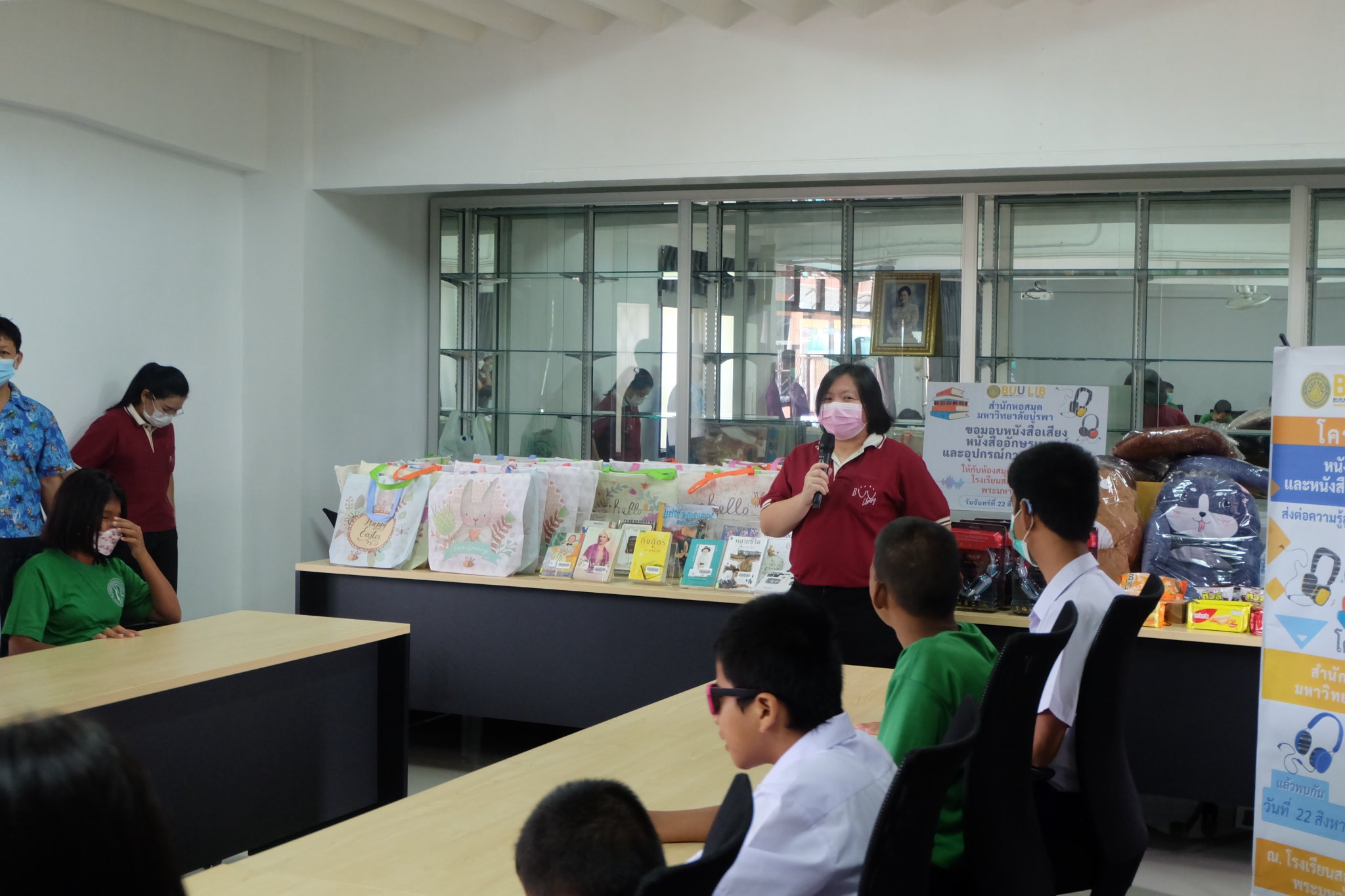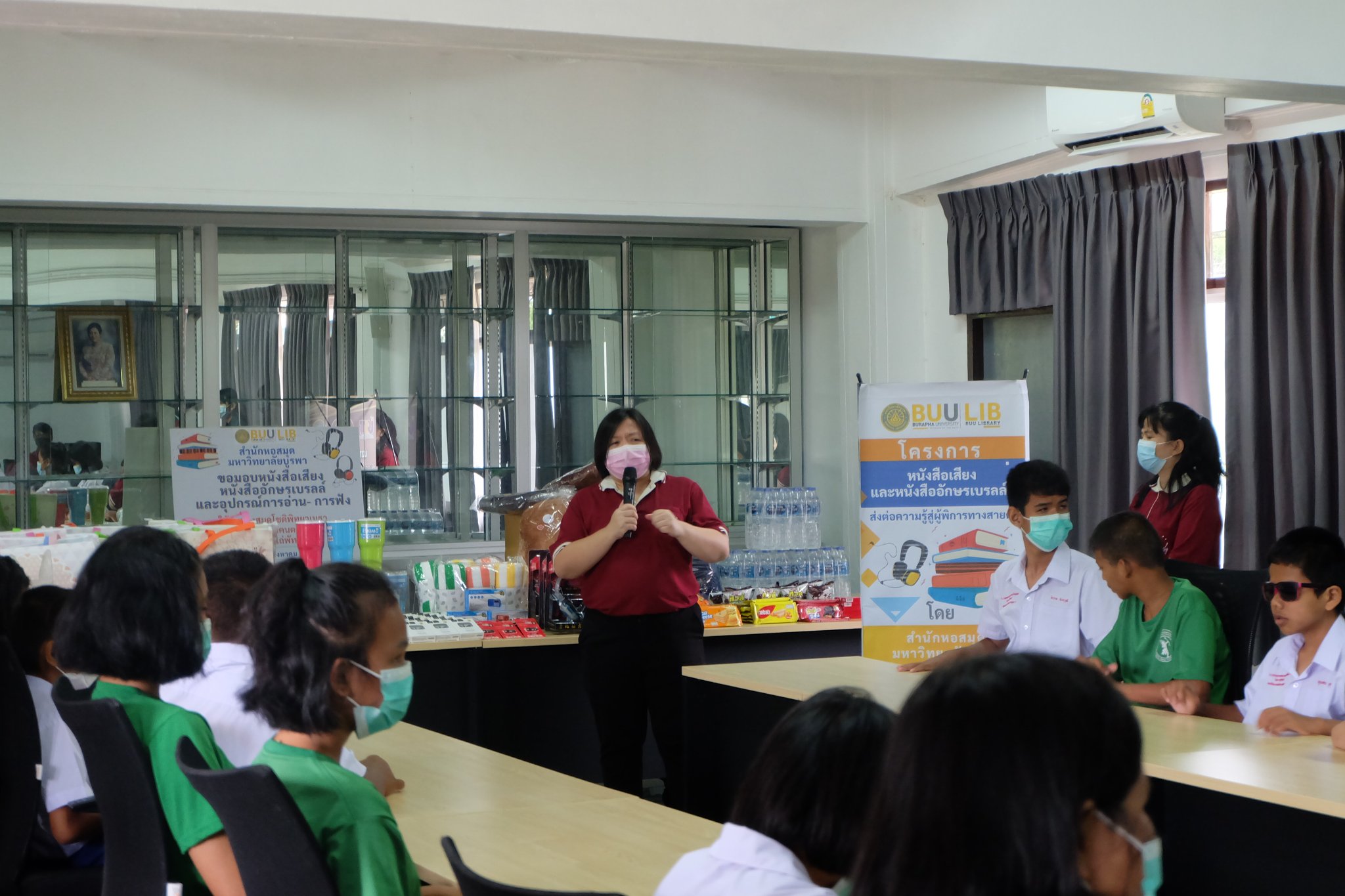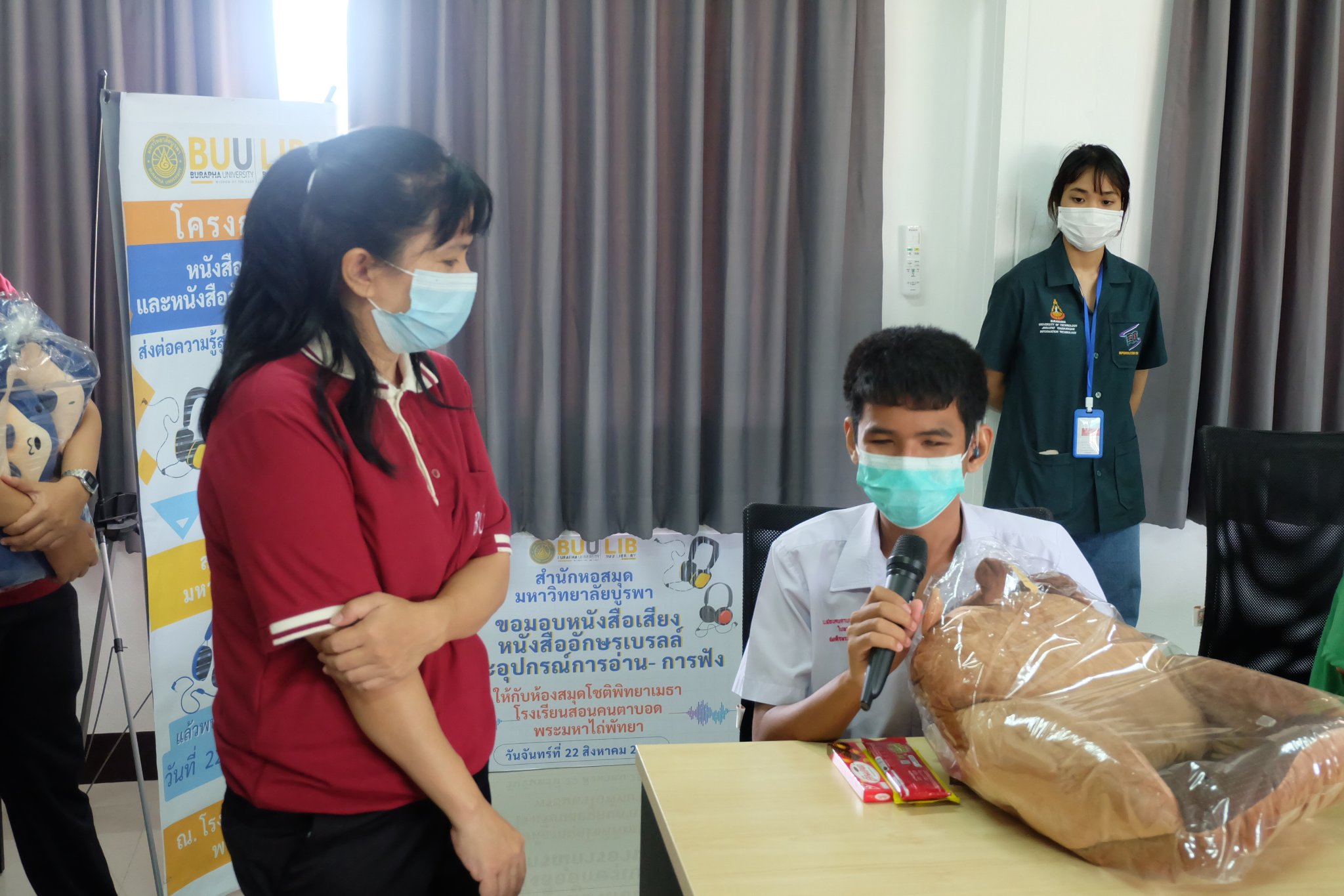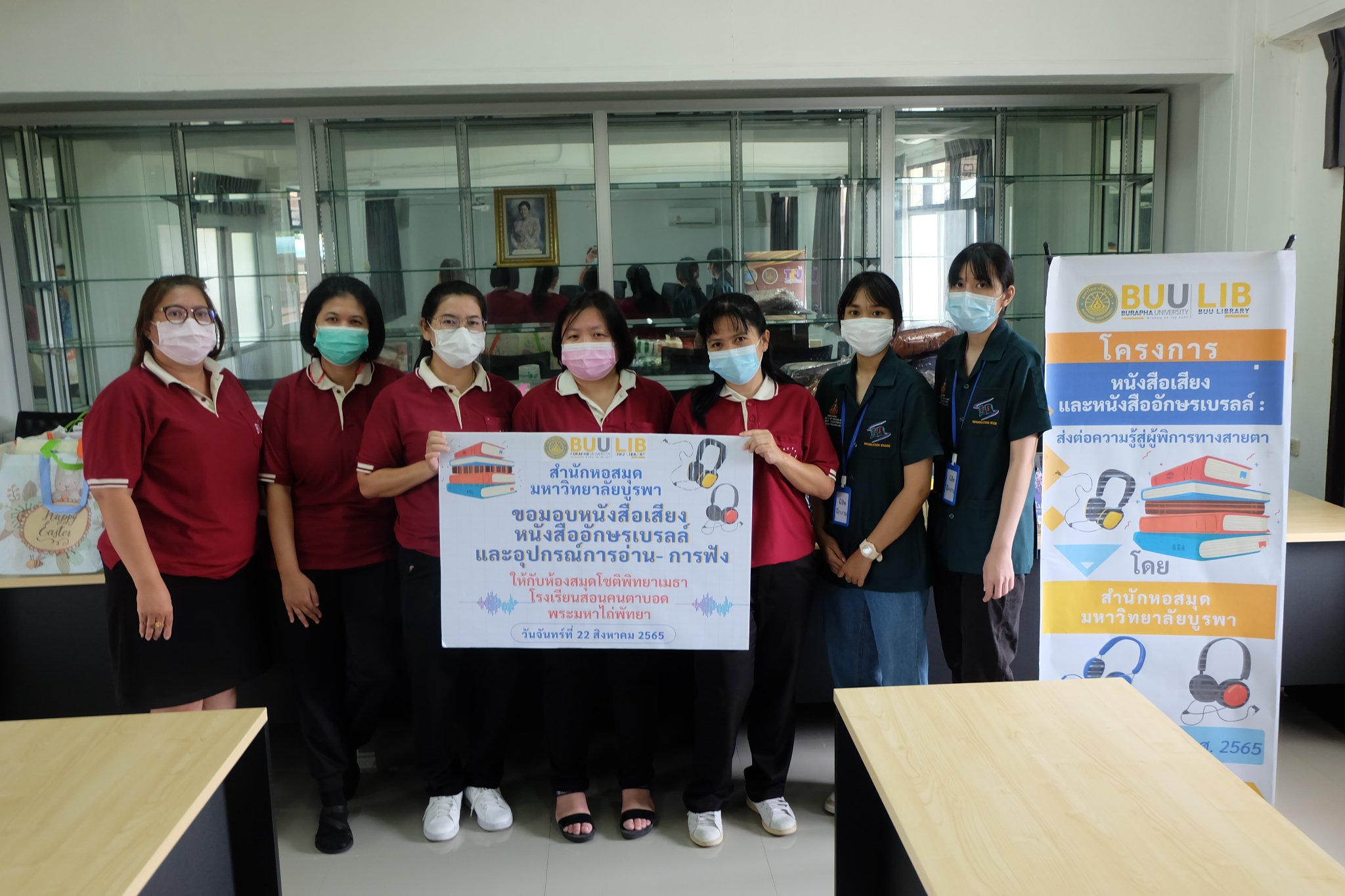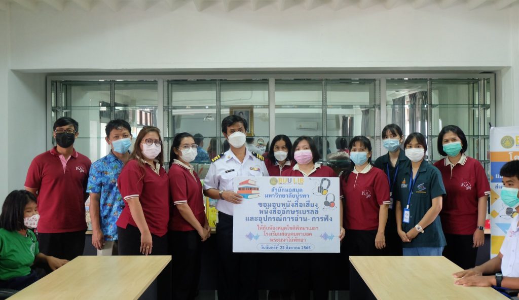 Burapha University Library donated audio, books braille books, recording and listening equipment to Choti Pittayametha Library, Pattaya Redemptorist School for The Blind which was received by Mr. Chid Suknoo, the Director of Pattaya Redemptorist School for the Blind under the Royal Patronage of HRH Princess Maha Chakri Sirindhorn in the “Audiobooks and Braille Books: Passing Knowledge to the Visually Impaired People” Project on 22 August 2022.