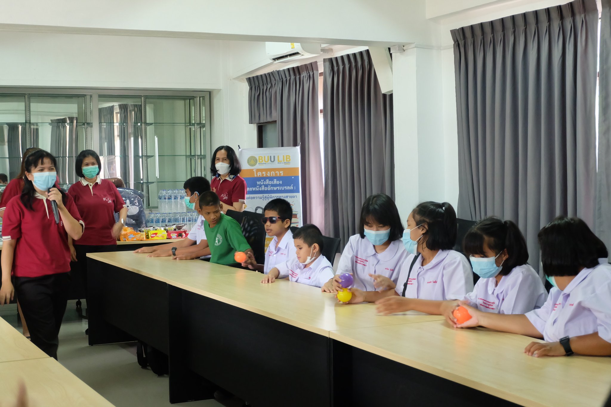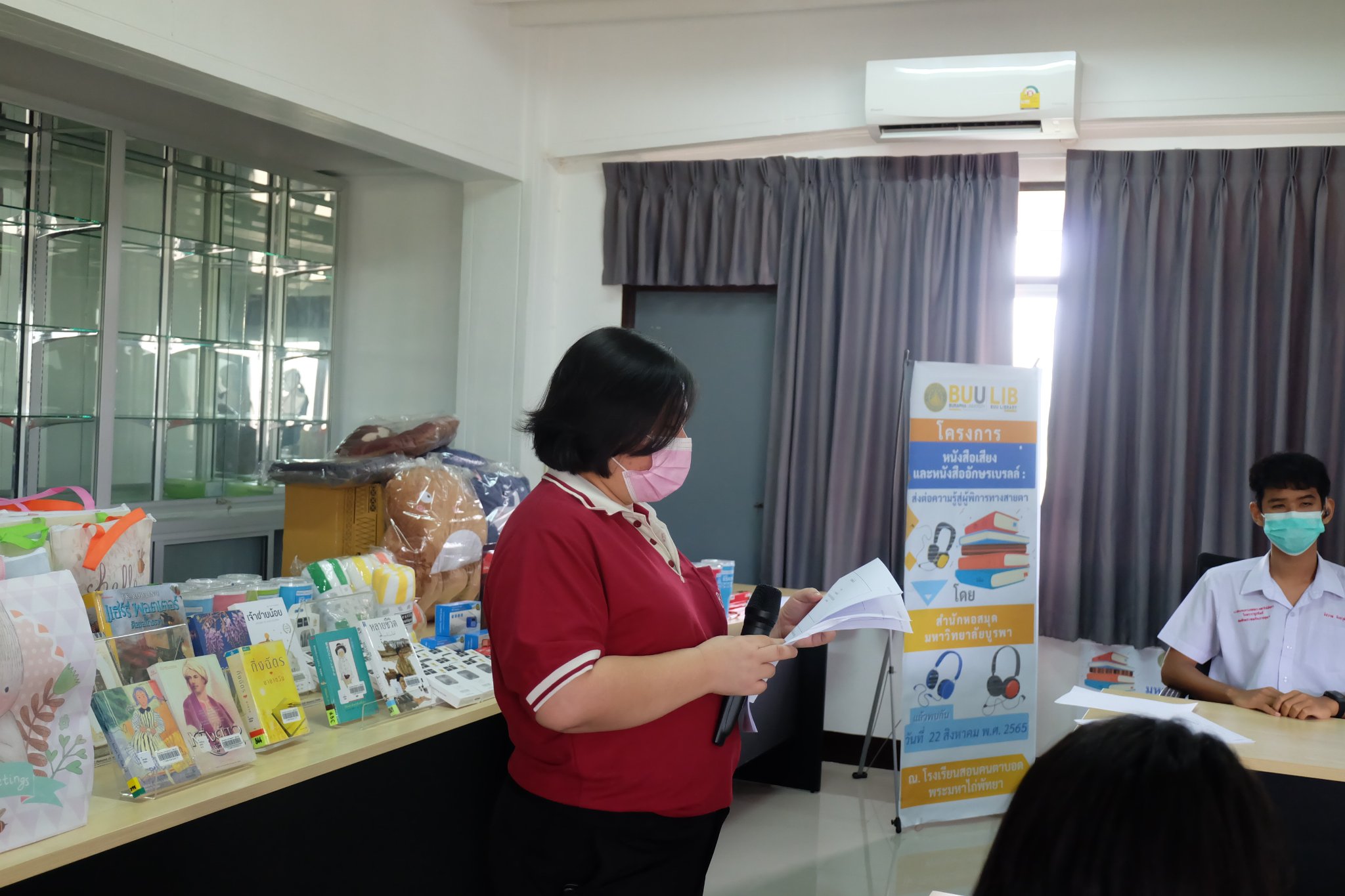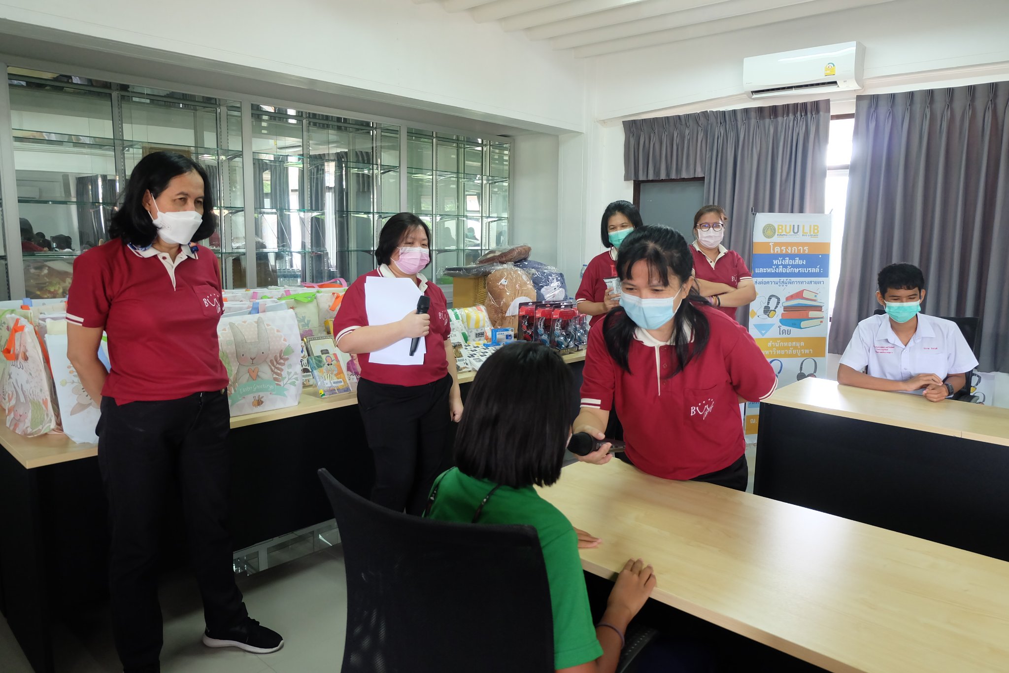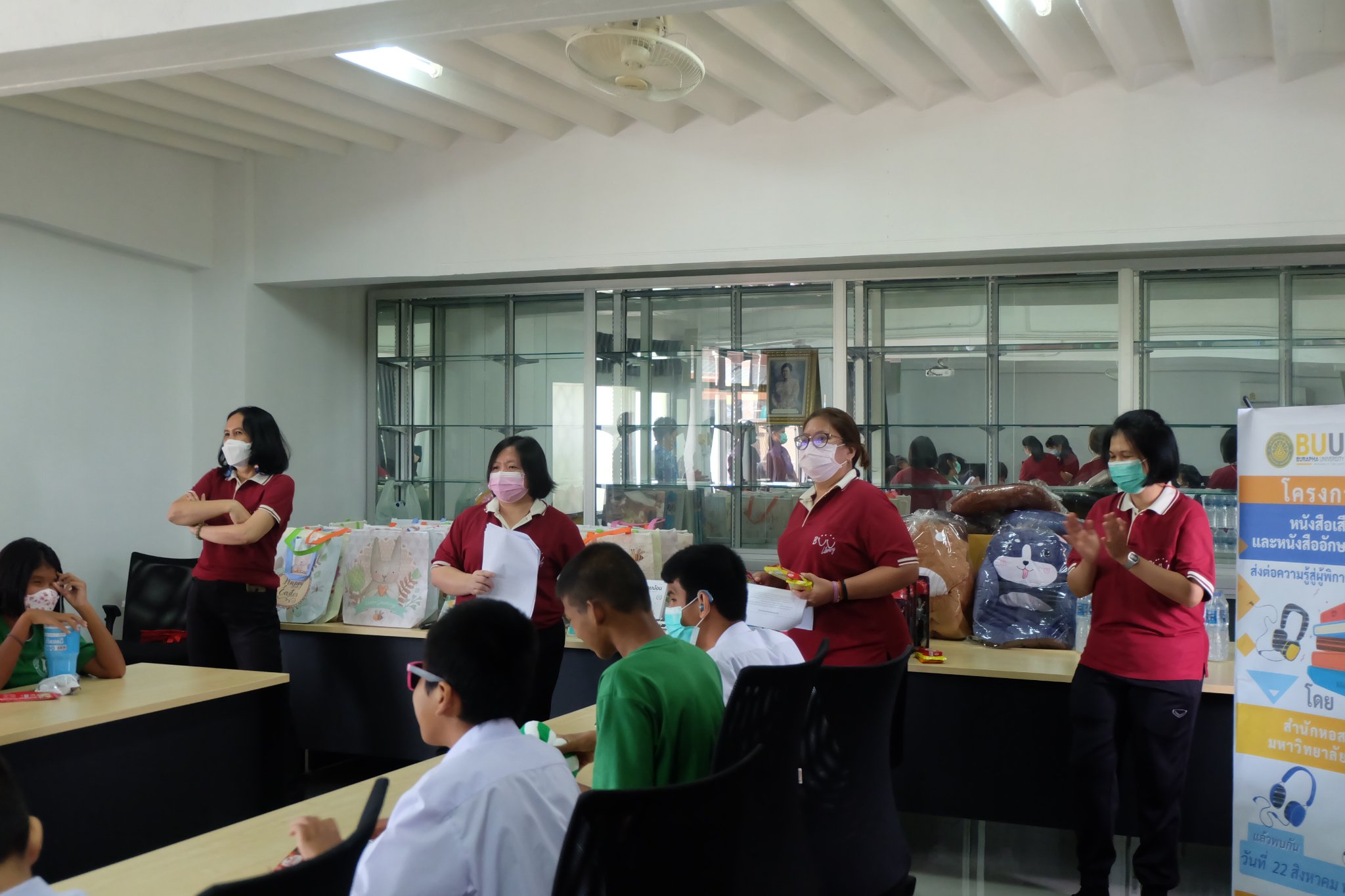 Burapha University Library donated audio, books braille books, recording and listening equipment to Choti Pittayametha Library, Pattaya Redemptorist School for The Blind which was received by Mr. Chid Suknoo, the Director of Pattaya Redemptorist School for the Blind under the Royal Patronage of HRH Princess Maha Chakri Sirindhorn in the “Audiobooks and Braille Books: Passing Knowledge to the Visually Impaired People” Project on 22 August 2022.