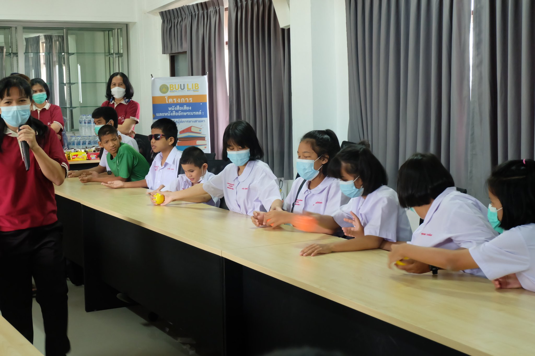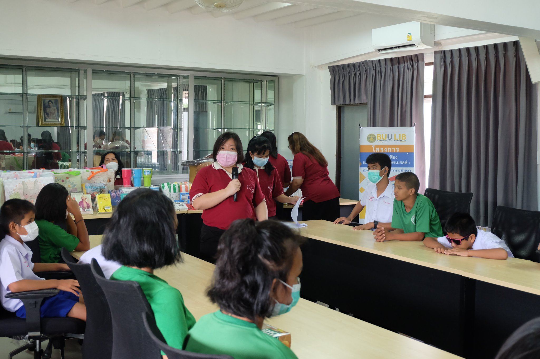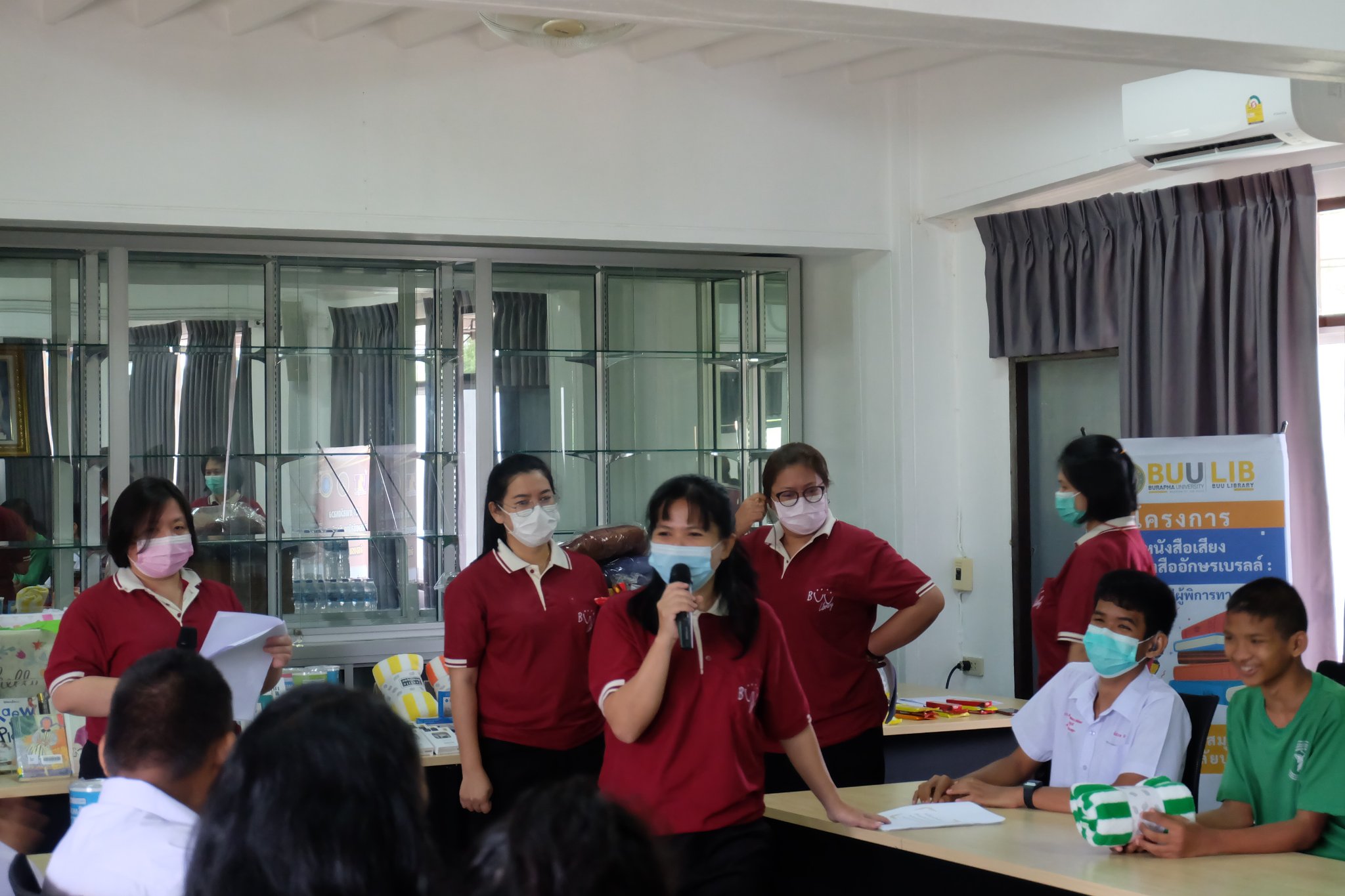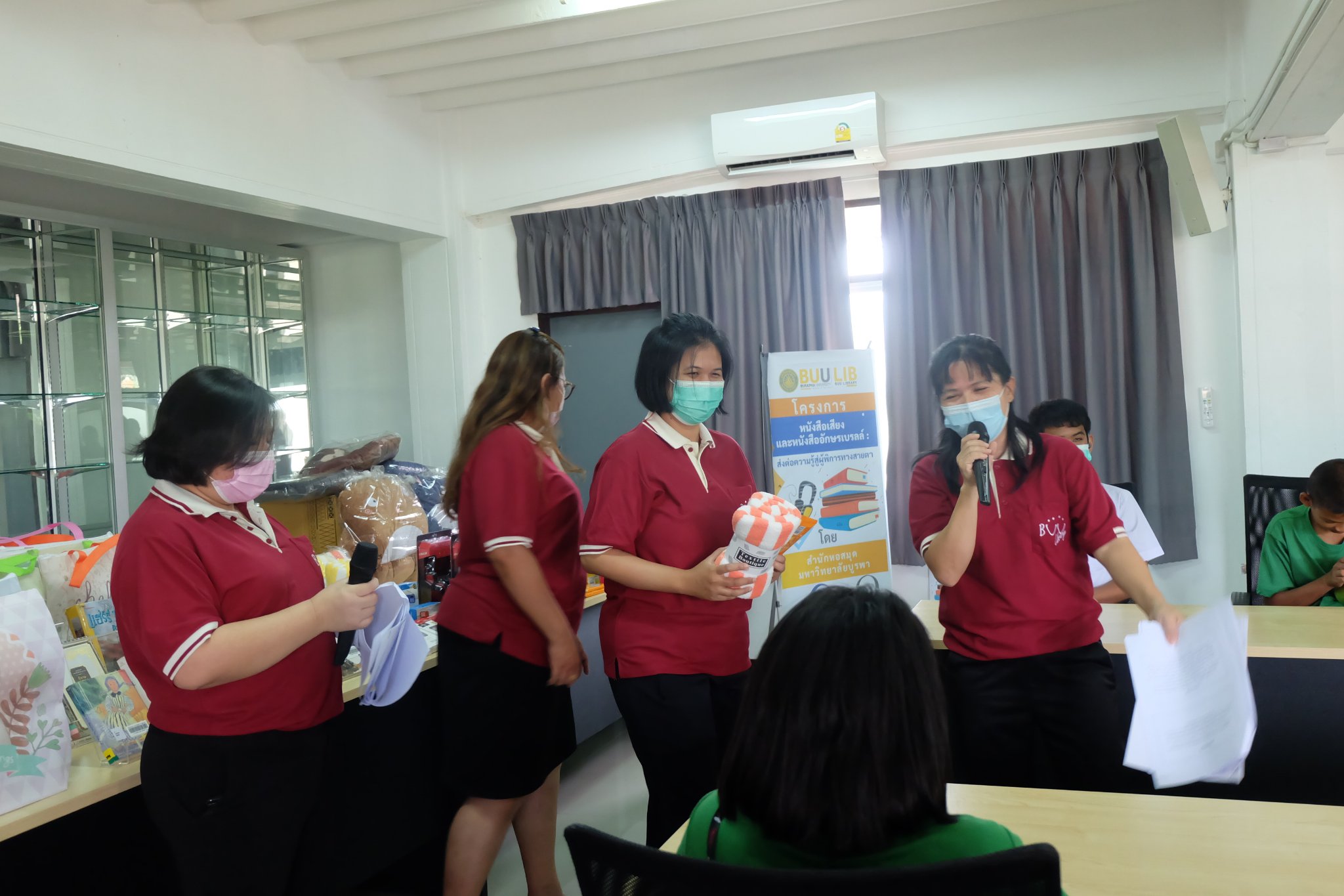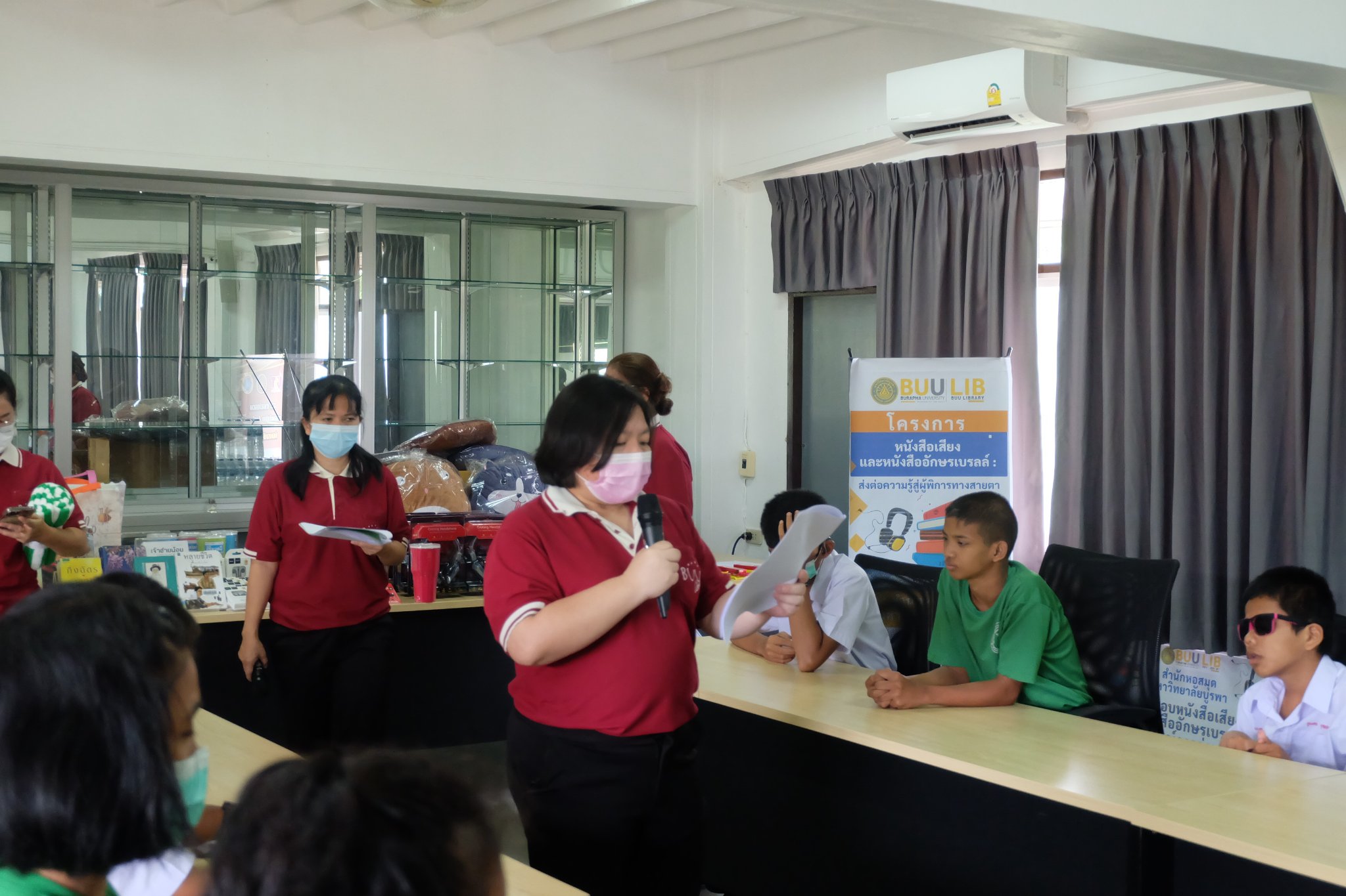 Burapha University Library donated audio, books braille books, recording and listening equipment to Choti Pittayametha Library, Pattaya Redemptorist School for The Blind which was received by Mr. Chid Suknoo, the Director of Pattaya Redemptorist School for the Blind under the Royal Patronage of HRH Princess Maha Chakri Sirindhorn in the “Audiobooks and Braille Books: Passing Knowledge to the Visually Impaired People” Project on 22 August 2022.