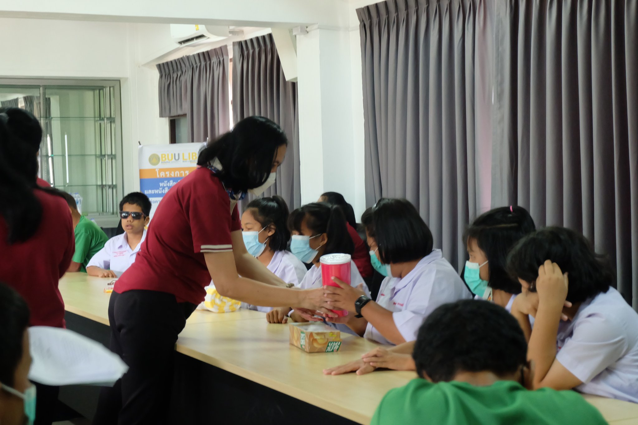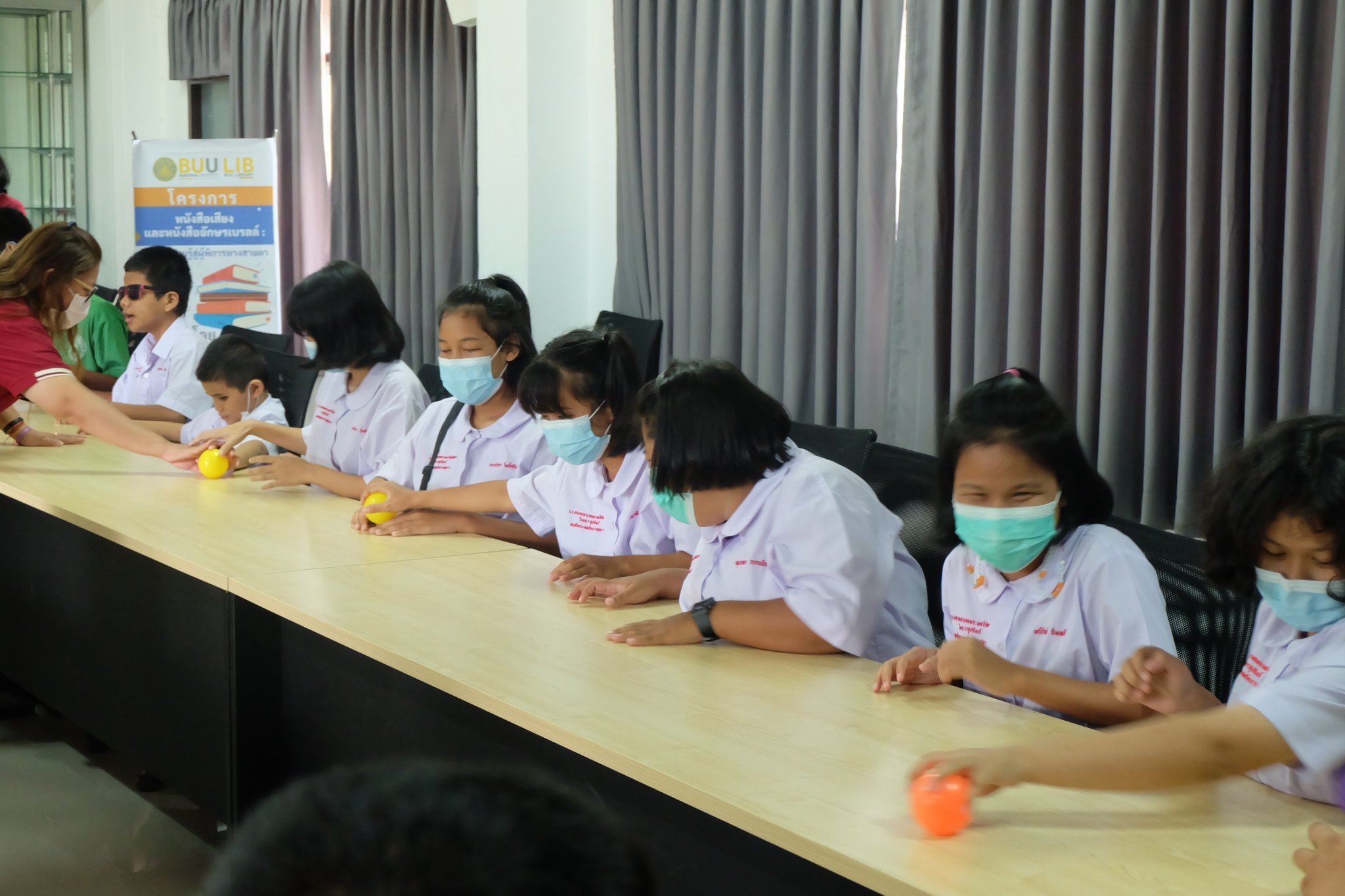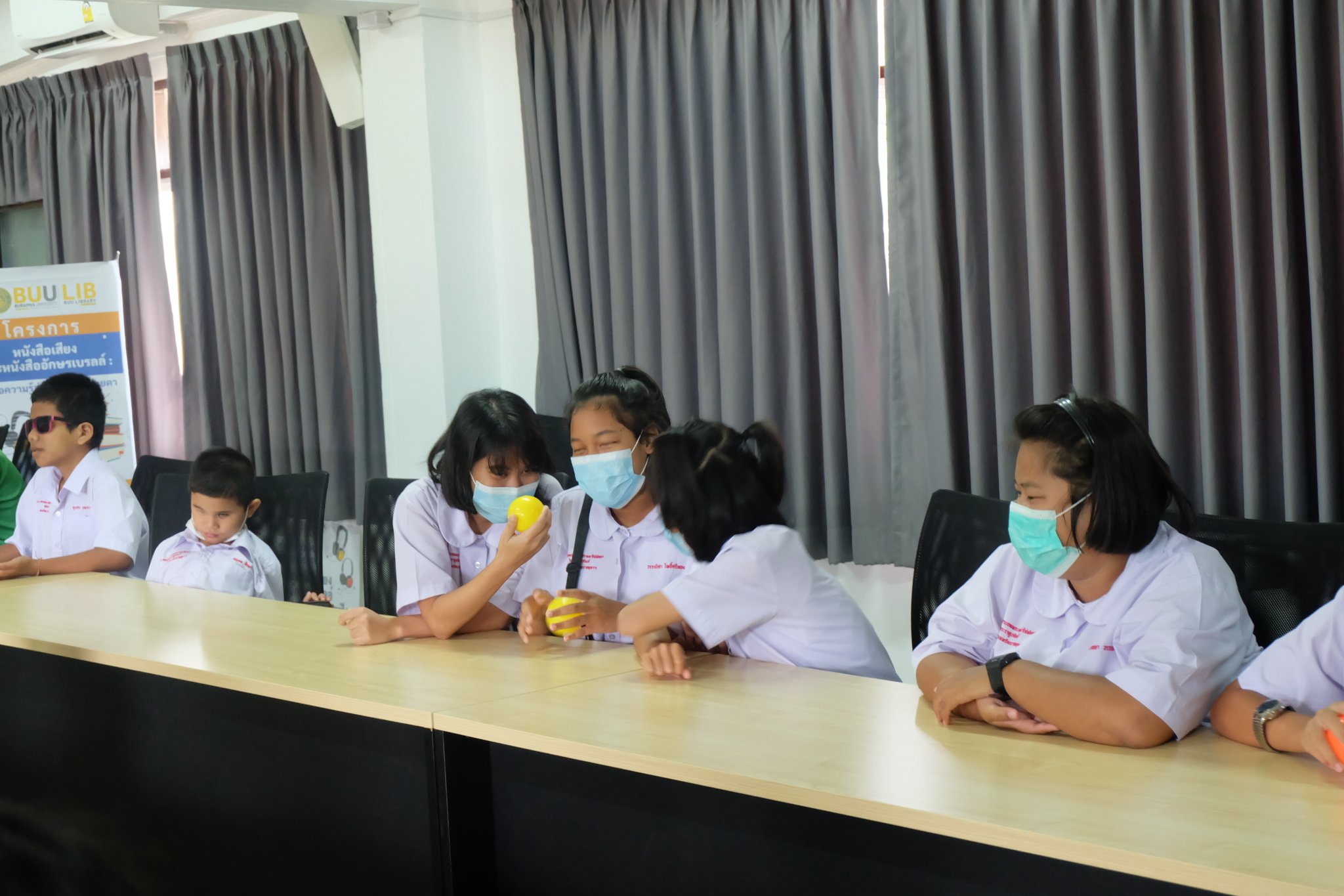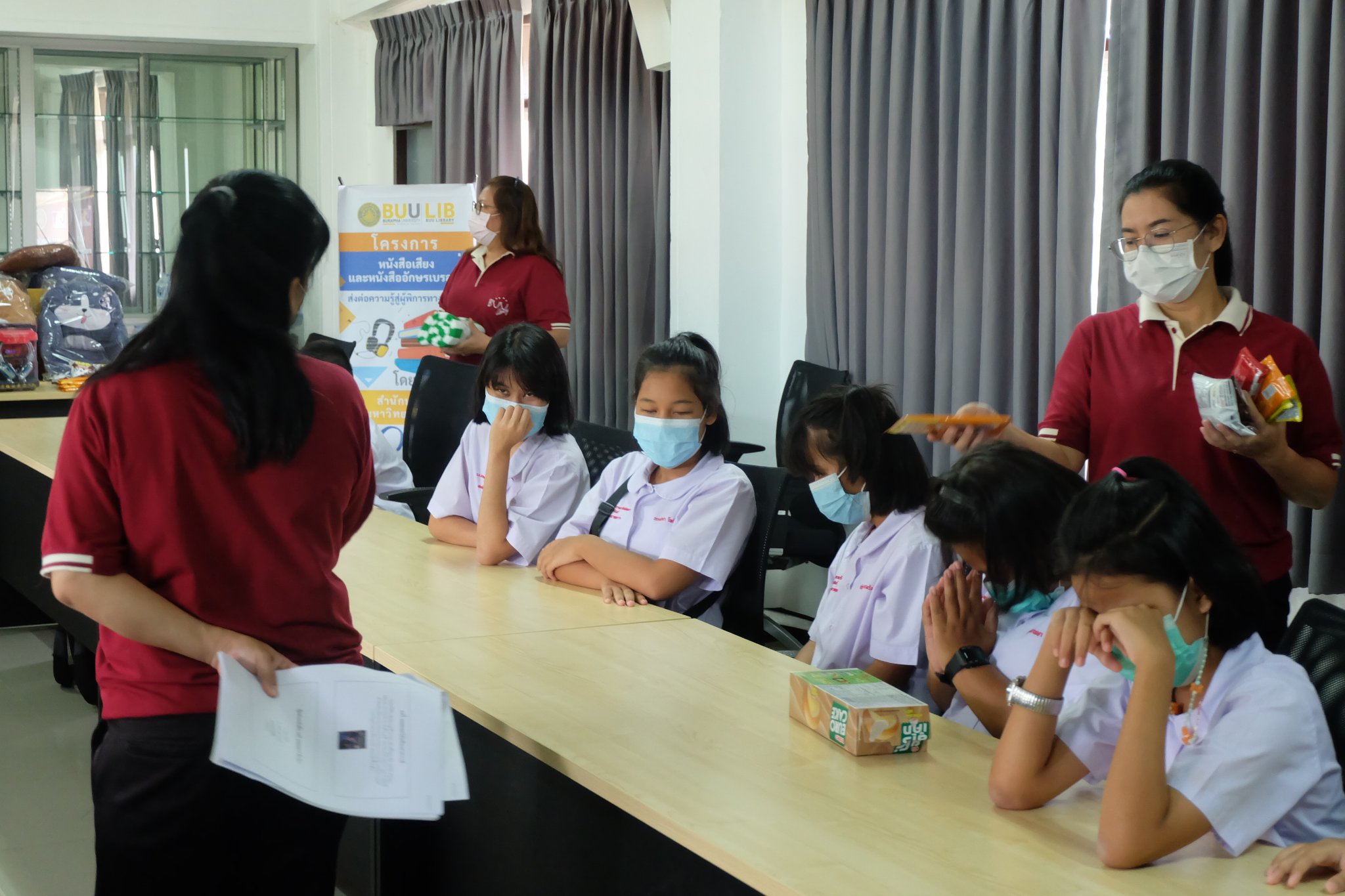Burapha University Library donated audio, books braille books, recording and listening equipment to Choti Pittayametha Library, Pattaya Redemptorist School for The Blind which was received by Mr. Chid Suknoo, the Director of Pattaya Redemptorist School for the Blind under the Royal Patronage of HRH Princess Maha Chakri Sirindhorn in the “Audiobooks and Braille Books: Passing Knowledge to the Visually Impaired People” Project on 22 August 2022.