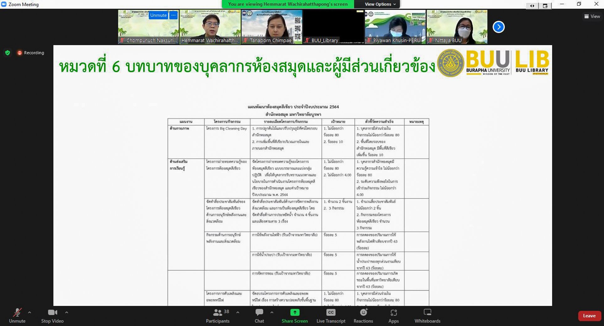 - Mrs. Piyawan Kusin, The Chief of Auditor (Vice-Chairman of Green Library and Academic Matter/ the Director of the Office of Academic Resources and Information Technology, Phetchaburi Rajabhat University)