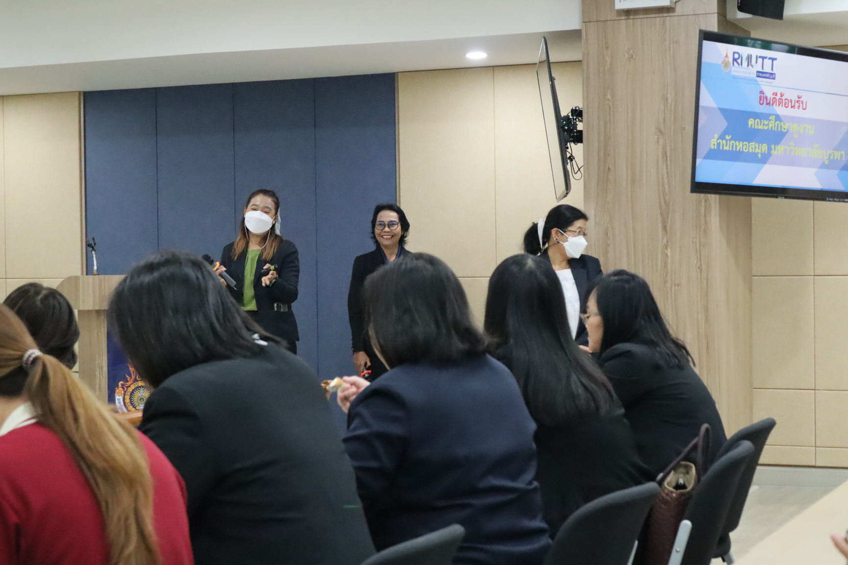 Burapha University Library Led by Ajarn Hemmarat Wachirahattapong, the Director of BUU Library along with 15 administrators and personnel paid a study visit on digital innovation and library information management system at King Mongkut’s University of Technology North Bangkok. and Library Information Management System with UHF RFID at Office of Acadamic Resource and Information Technology Rajamangala University of Technology Thanyaburi (Khlong 6) on 30 January 2023.
