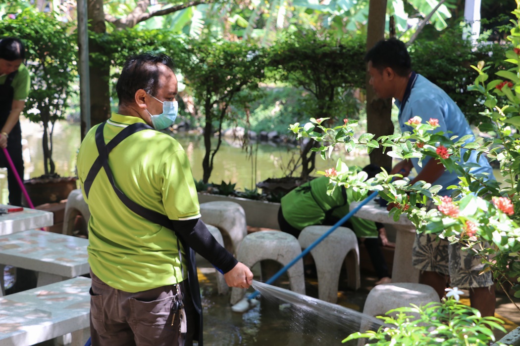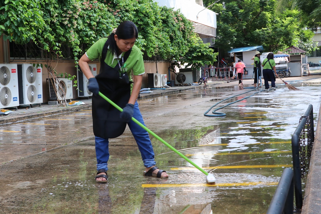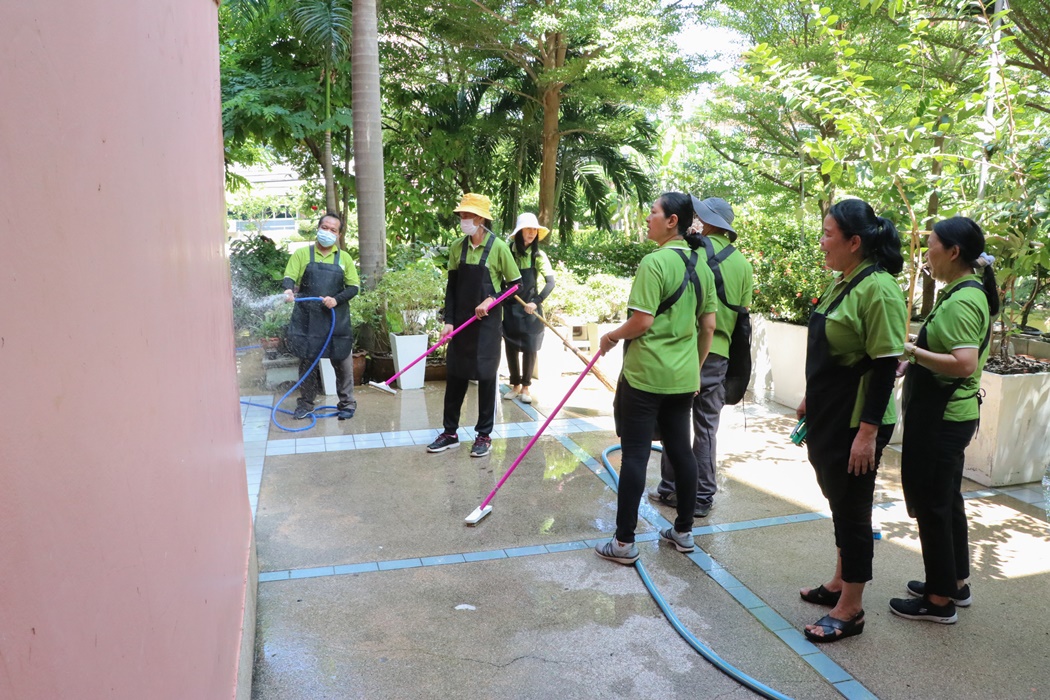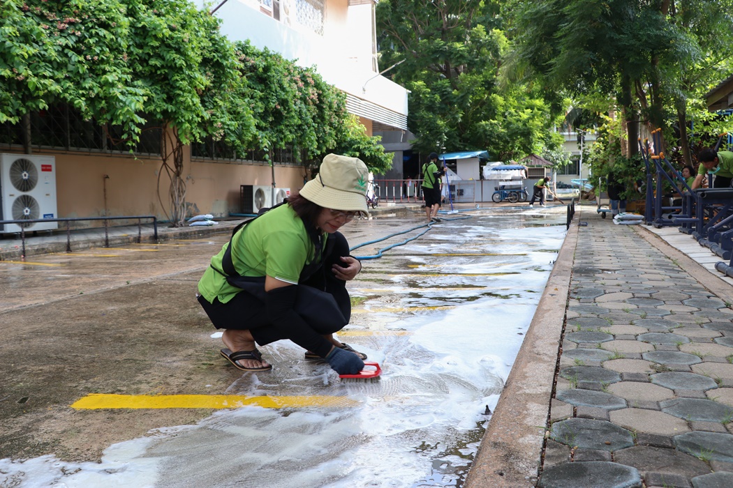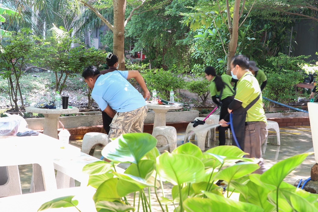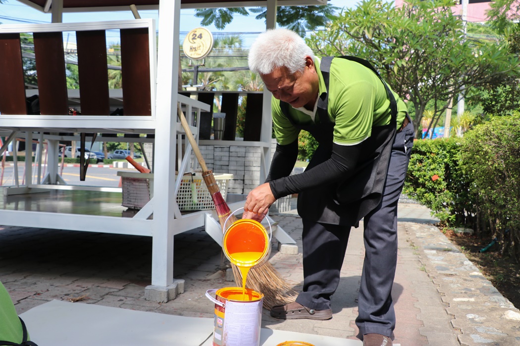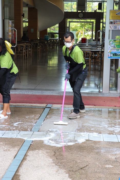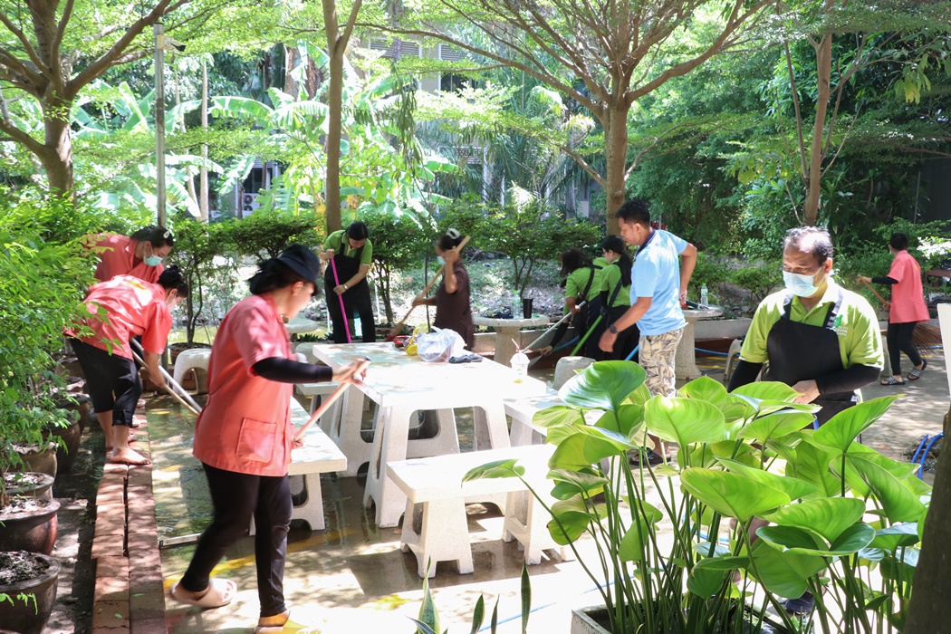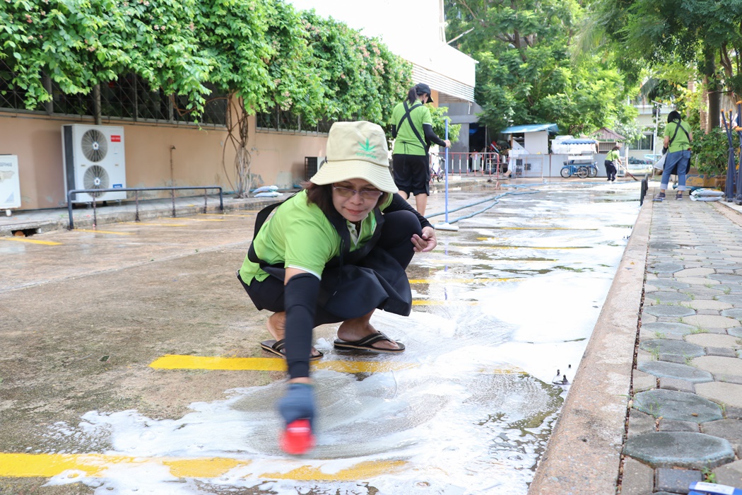 BUU Library held Big Cleaning Day project “Working Together to Conserve the Environment” by Mr. Hemmarat Wachirahattapong, the Director of BUU Library, presided over the opening speech of the project and did the activities with the library personnel in cleaning, watering, shoveling, fertilizing plants and painting the motorcycle lane area in order to improve the landscape and clean the library area. This project was held on Friday, 2 June 2023.