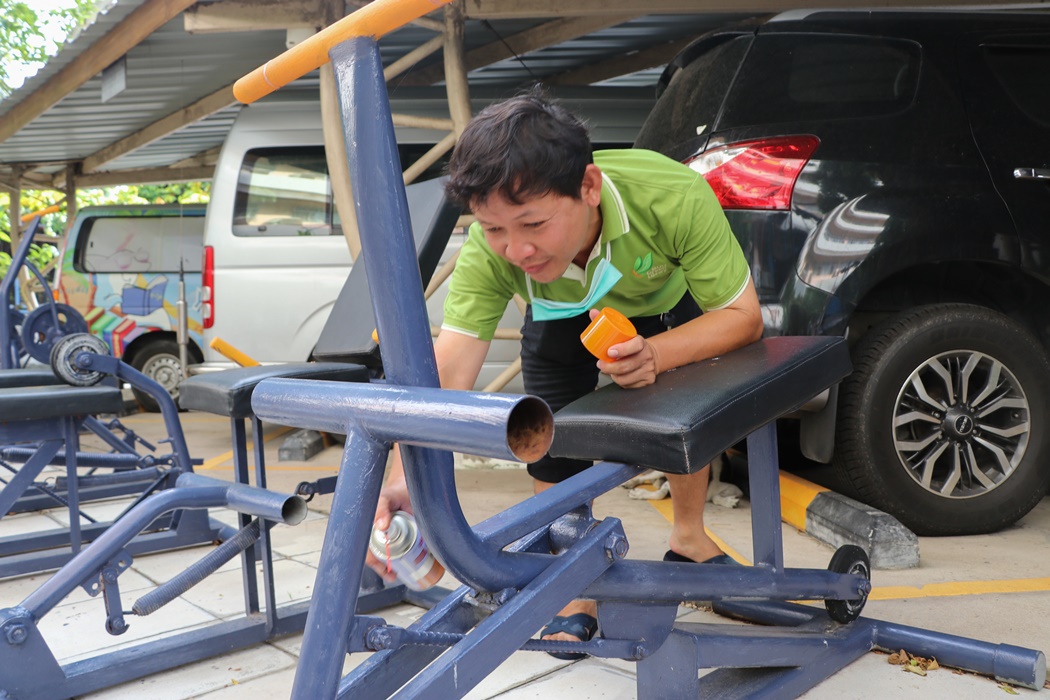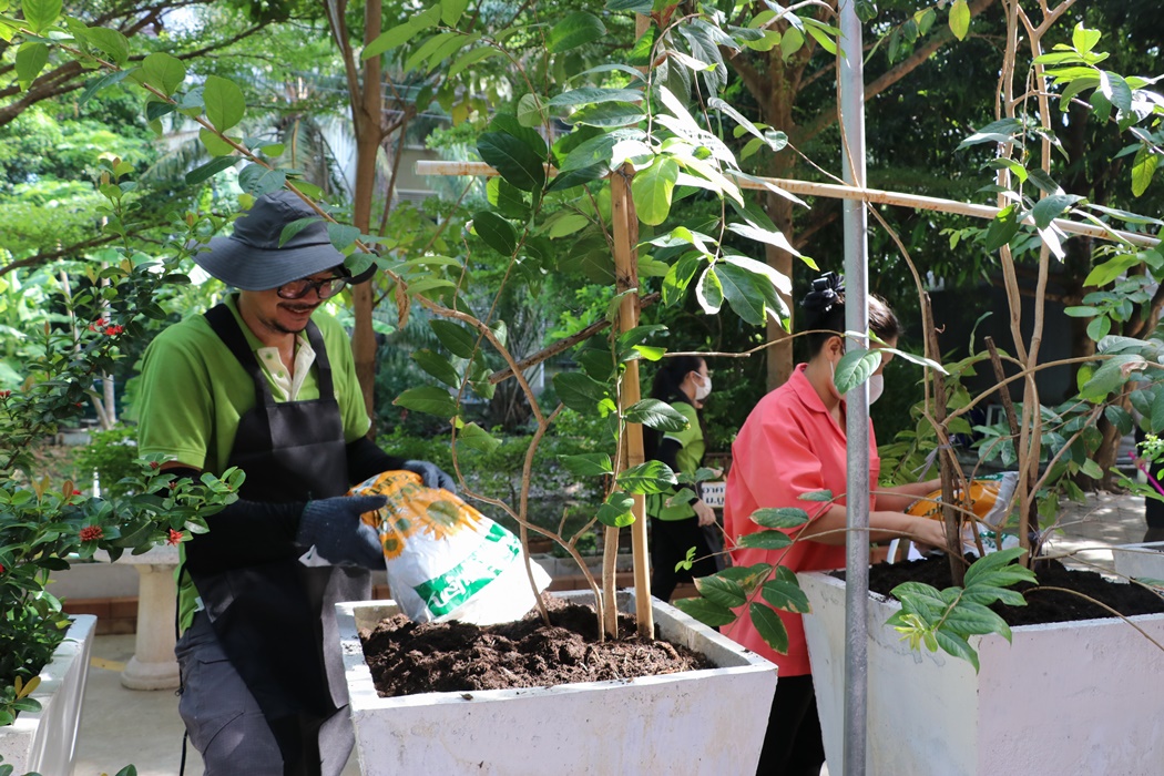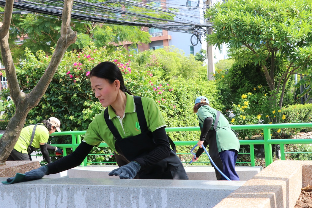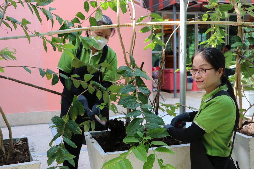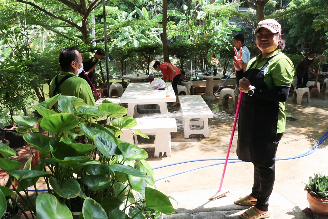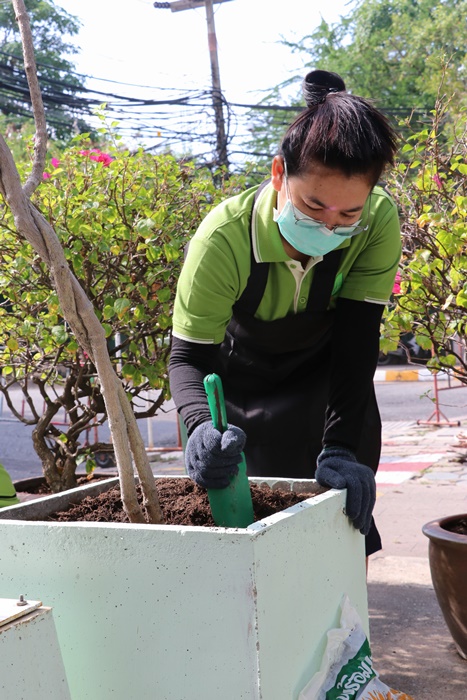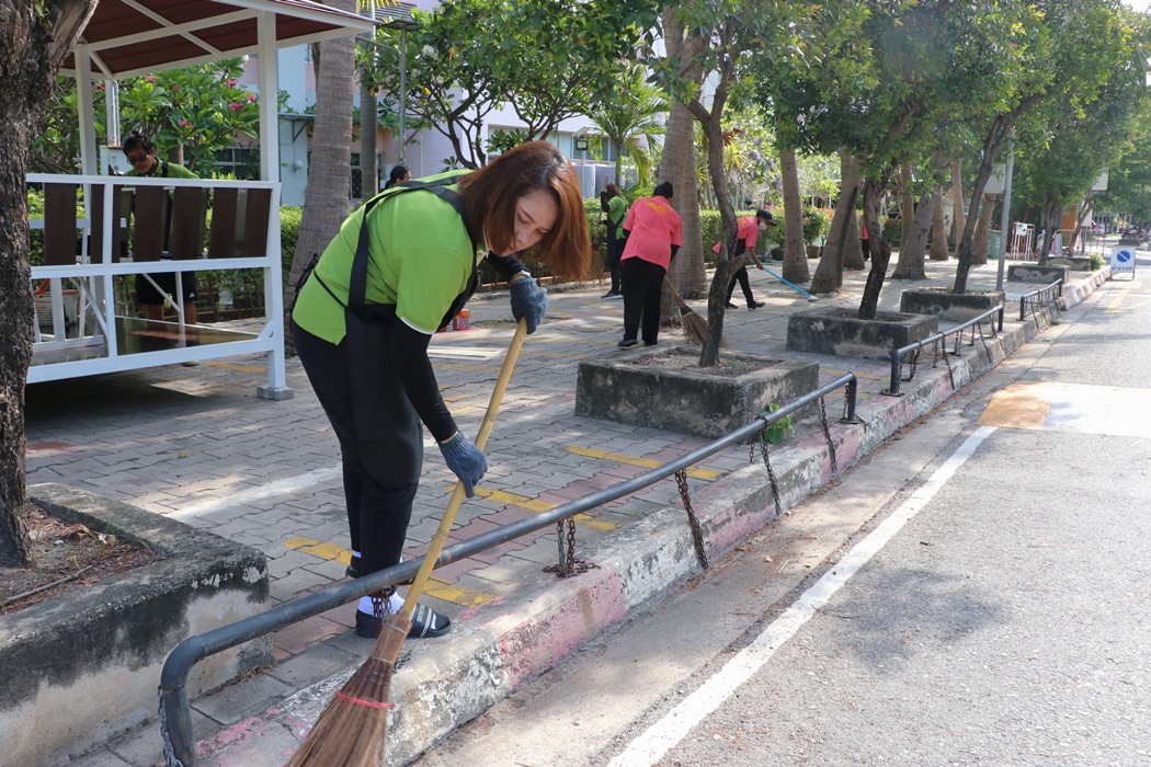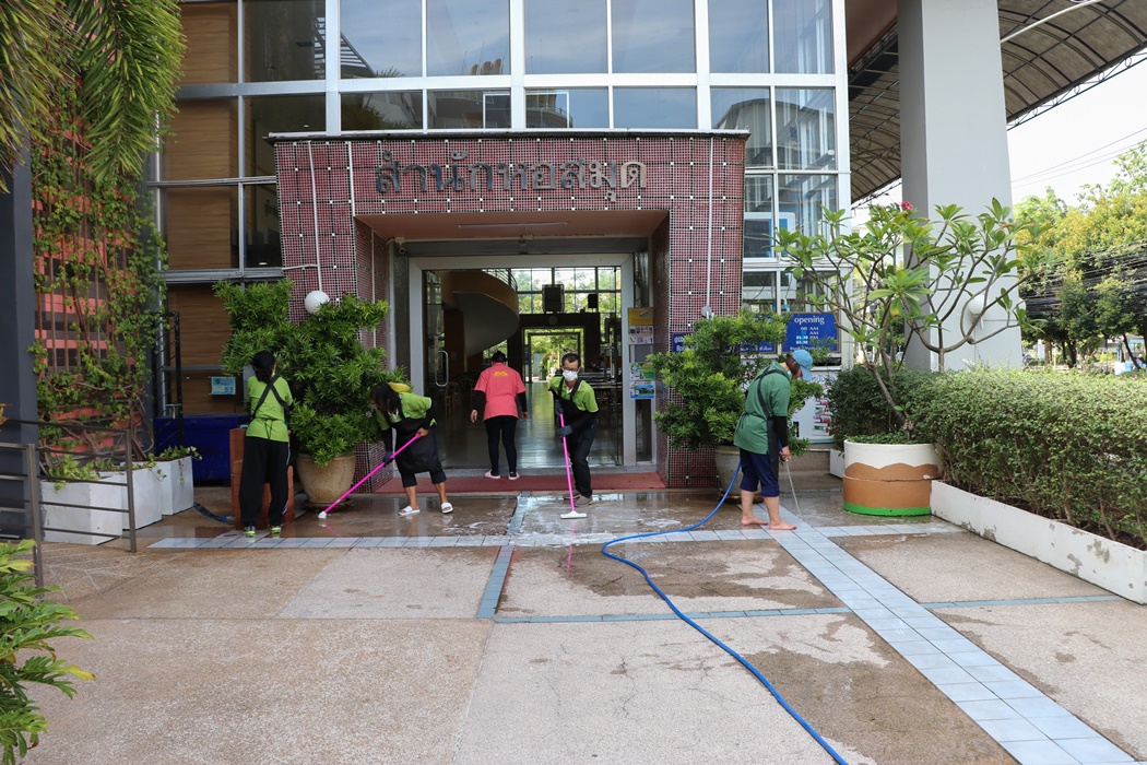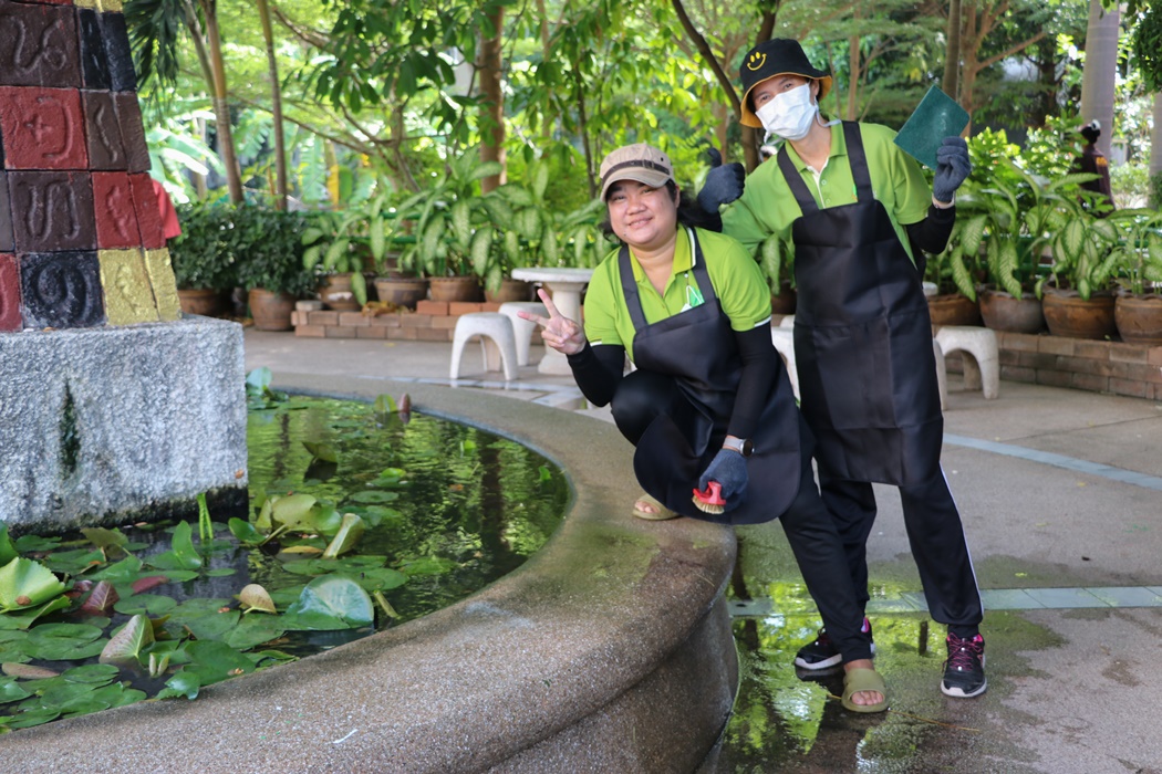 BUU Library held Big Cleaning Day project “Working Together to Conserve the Environment” by Mr. Hemmarat Wachirahattapong, the Director of BUU Library, presided over the opening speech of the project and did the activities with the library personnel in cleaning, watering, shoveling, fertilizing plants and painting the motorcycle lane area in order to improve the landscape and clean the library area. This project was held on Friday, 2 June 2023.