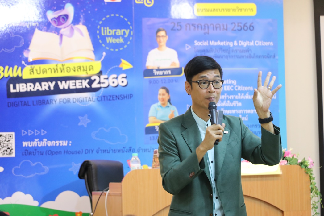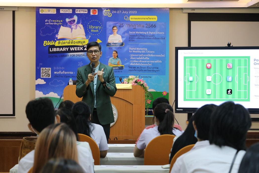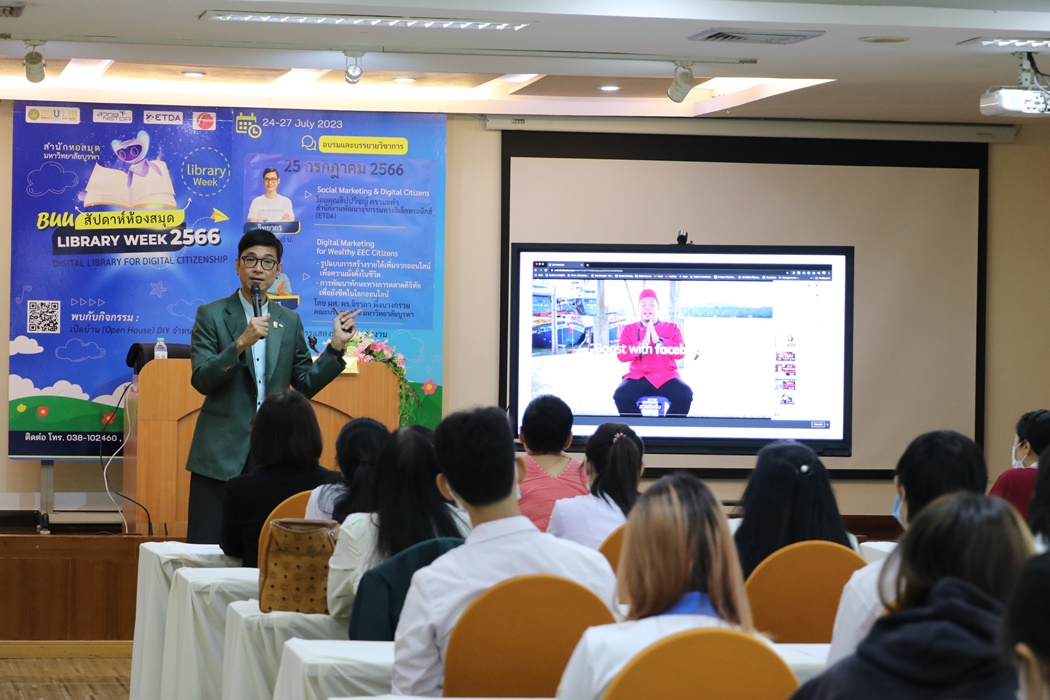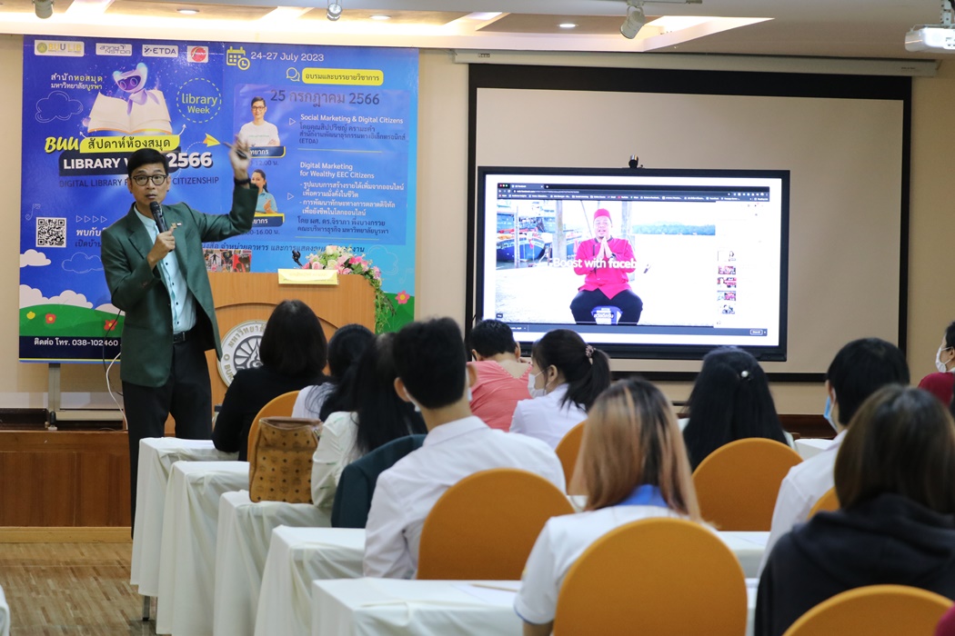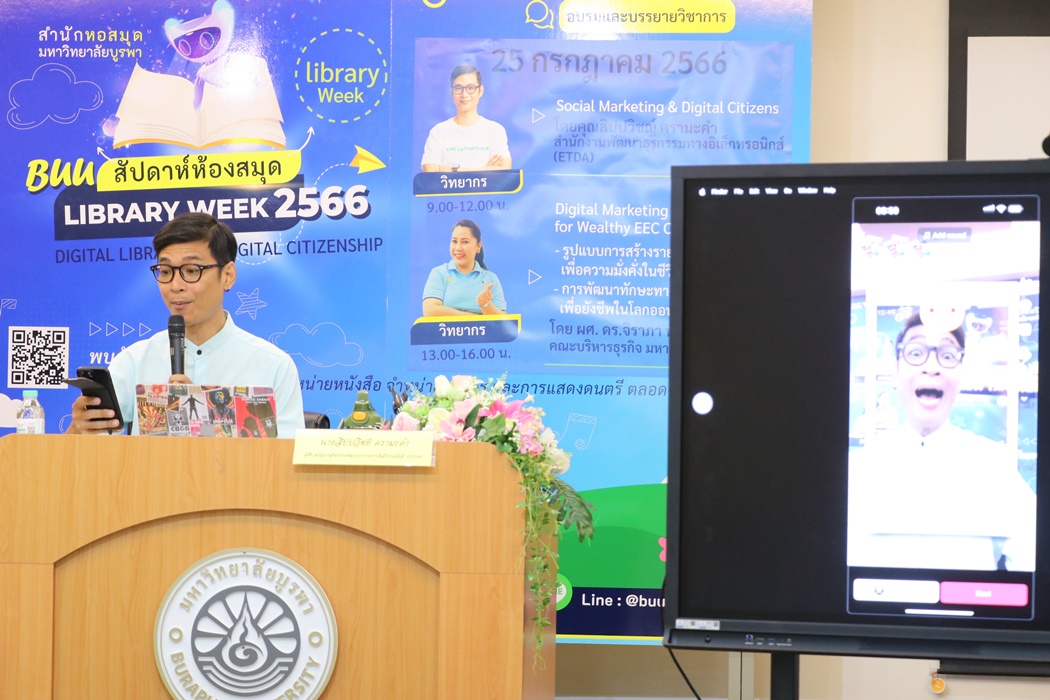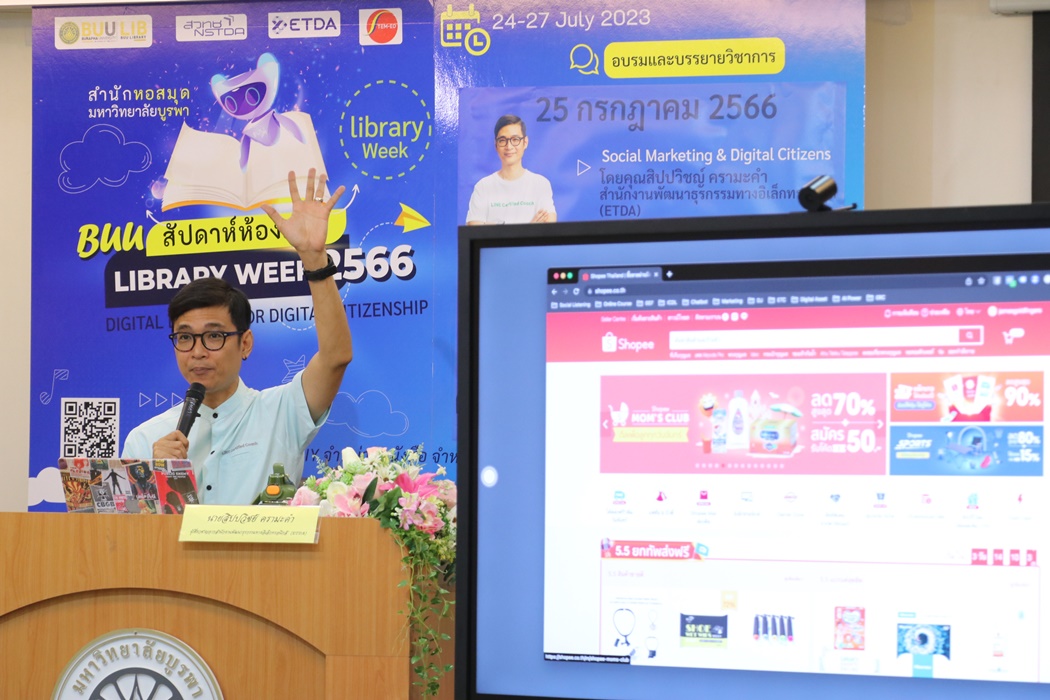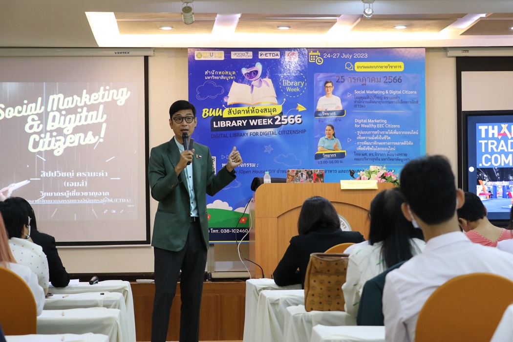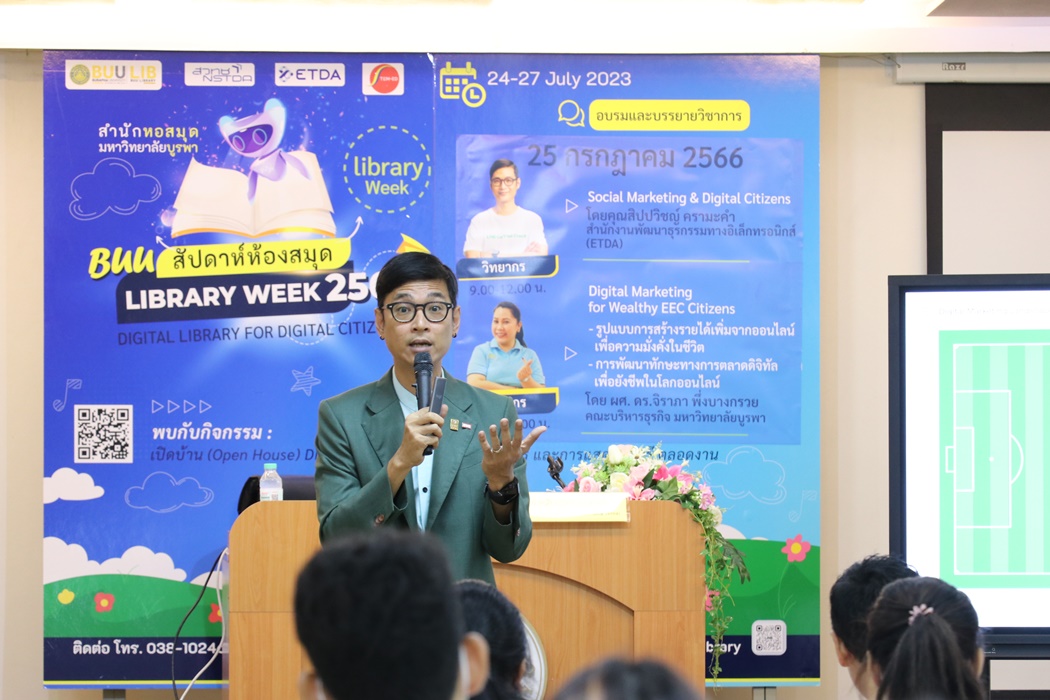 Burapha University Library held the academic lecture on Social Marketing & Digital Citizens at Library Week 2023 by the guest speaker, Mr. Sippawit Kramakam, the expert from the Electronic Transactions Development Agency (ETDA) on 25 July 2023 at 9:00 a.m. – 12:00 p.m. at the meeting room 201 on the 2nd floor of the library.