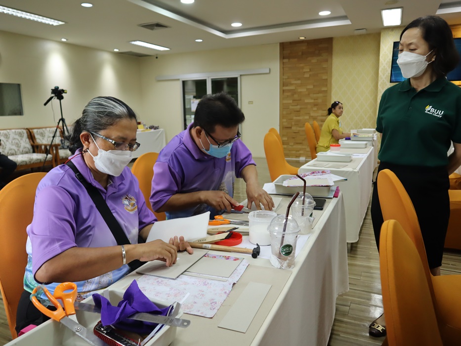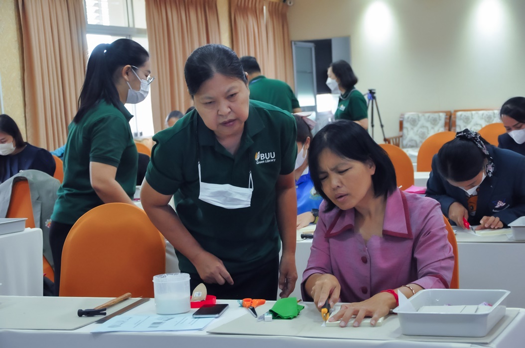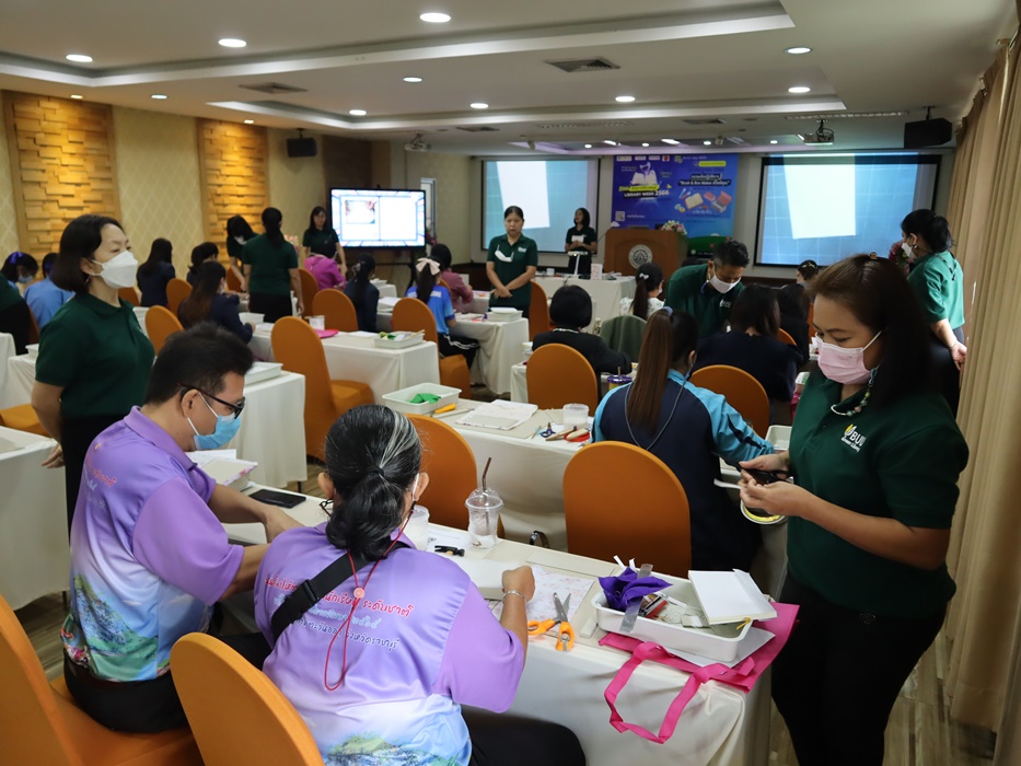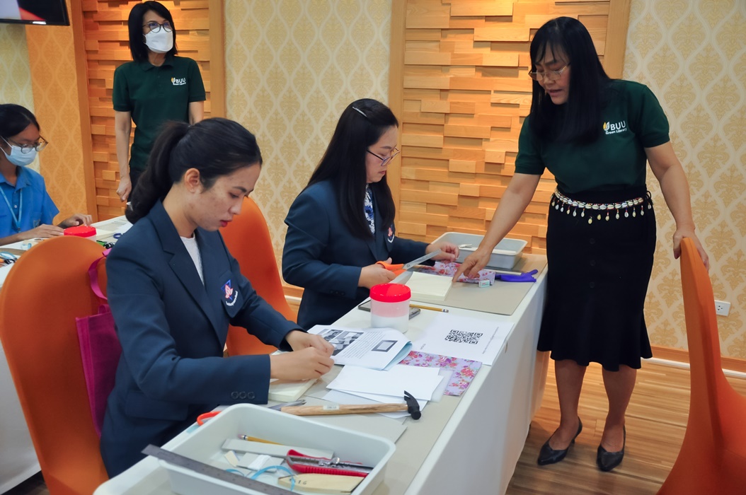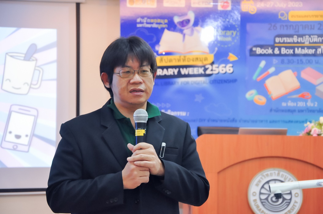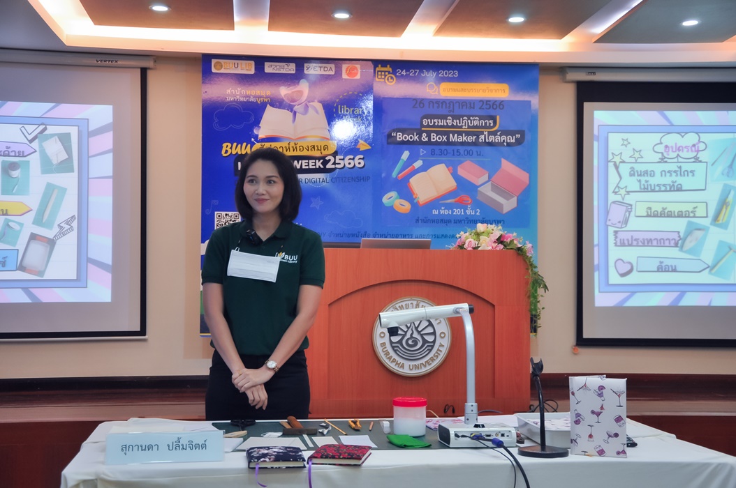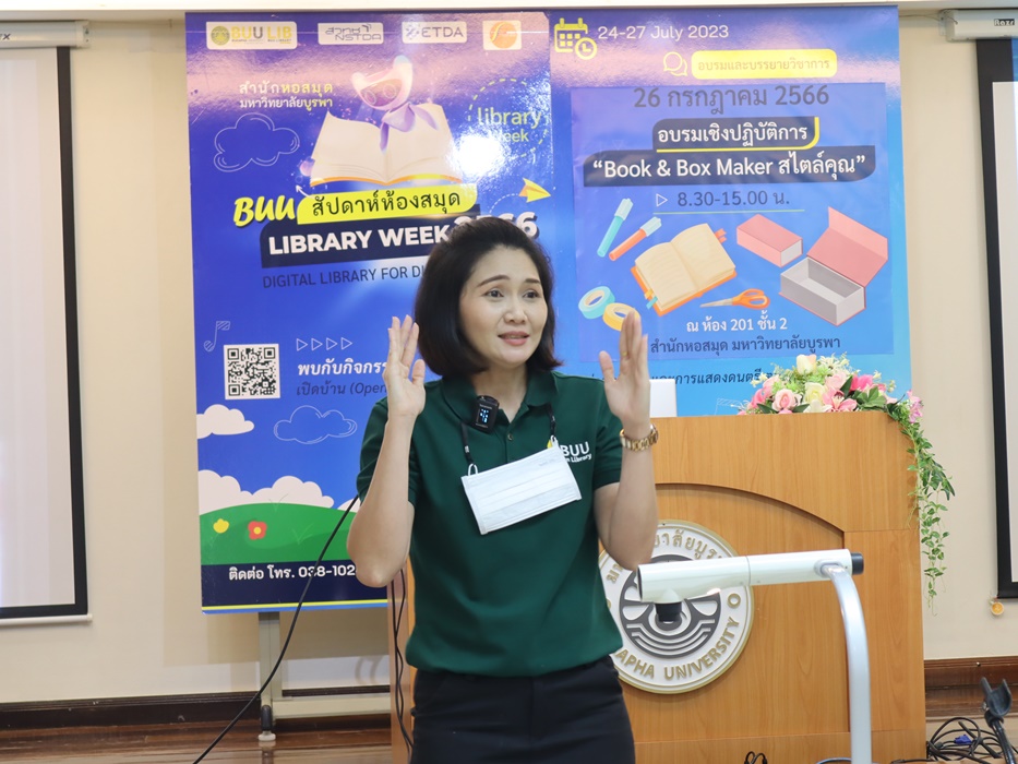 Burapha University Library led by Hemmarat Wachirahatthaphong, the Director of the library, delivered an opening speech of the workshop on “Book & Box Maker in Your Style” at Library Week 2023 on 26 July 2023 from 9:00 a.m. – 3:00 p.m. at the meeting room 201 on the 2nd floor of the library.