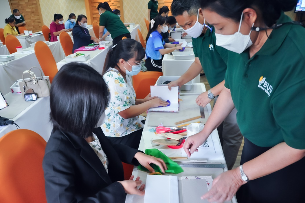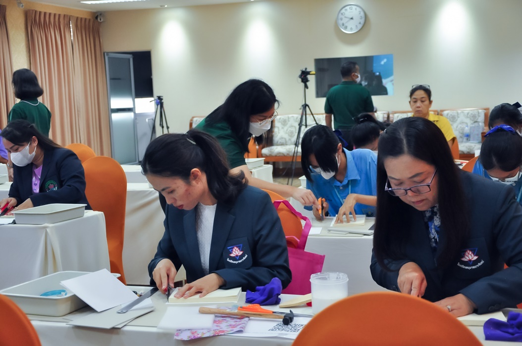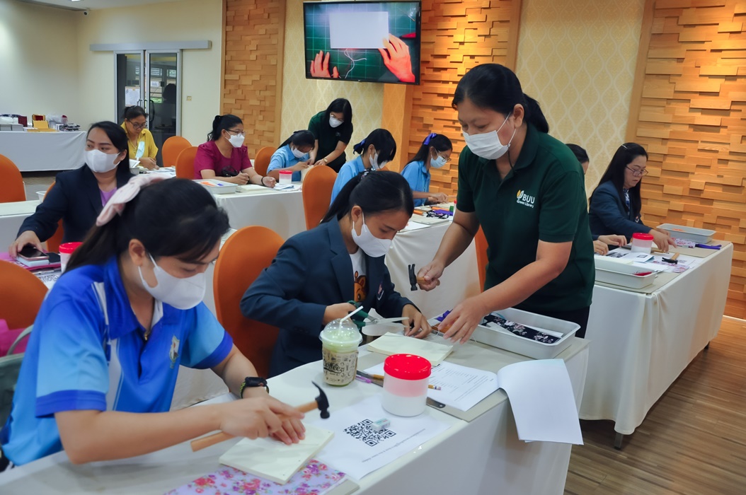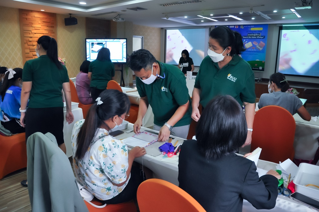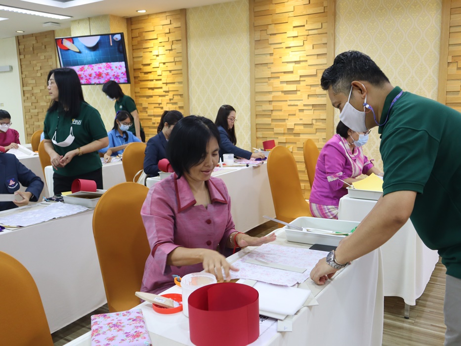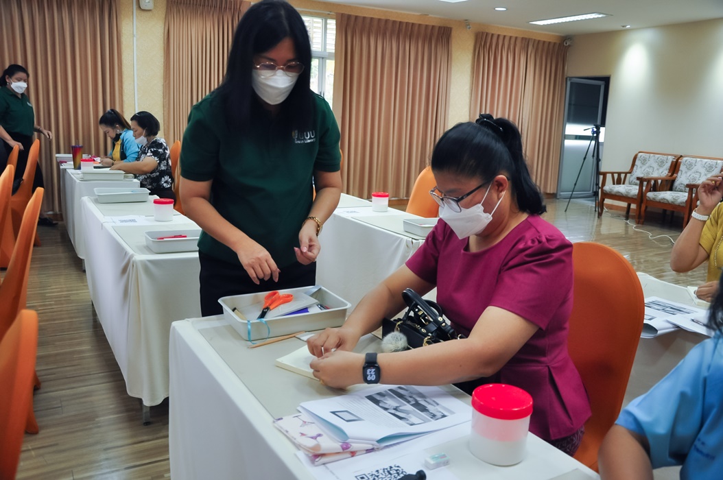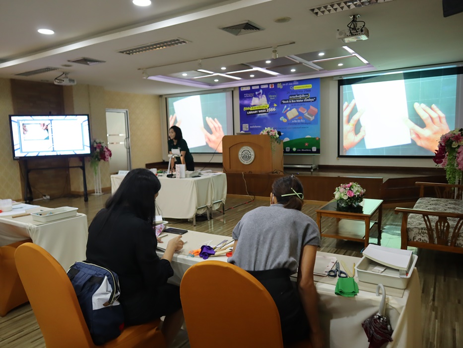 Burapha University Library led by Hemmarat Wachirahatthaphong, the Director of the library, delivered an opening speech of the workshop on “Book & Box Maker in Your Style” at Library Week 2023 on 26 July 2023 from 9:00 a.m. – 3:00 p.m. at the meeting room 201 on the 2nd floor of the library.
