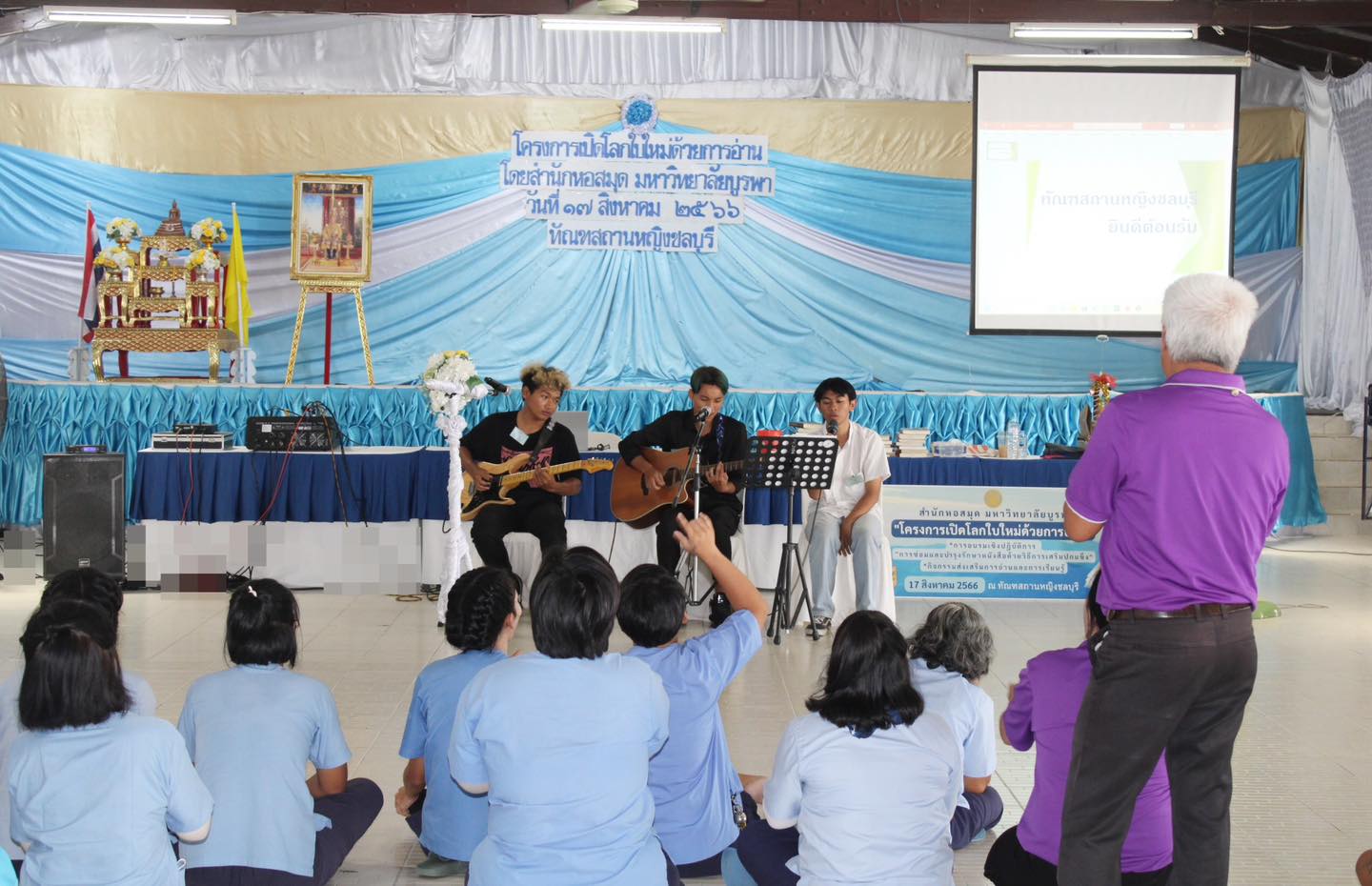 BUU Library held the opening the New World through Reading Project at Chonburi Women’s Correctional Institution which there were many activities: maintaining books by stiffening, creating a knowledge banner about 10 career trends in 2023, performing music by students from the Faculty of Music and Performing Art, and promoting reading for prisoners on 17 August 2023.