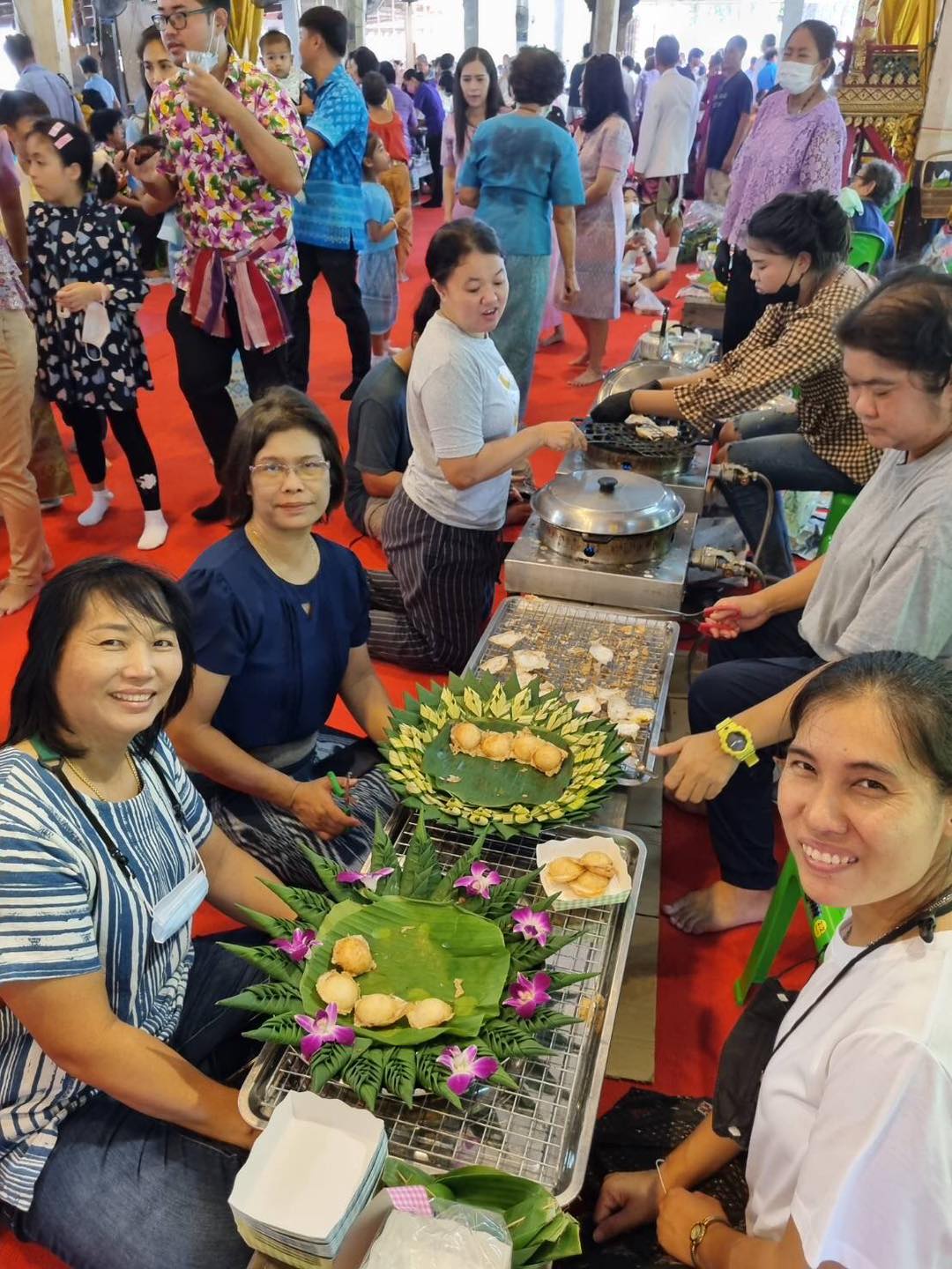 Burapha University Library’s personnel participated in “Wat Bot Khanom Krok Alms-Giving Tradition,” which is a tradition that has been around for more than 100 years and was caused by the gathering of villagers who made merit together during Buddhist Lent by making flour and Khanom Krok together to feed the monks on 24 September 2023, at Wat Bot, Phanat Nikhom District, Chonburi Province.