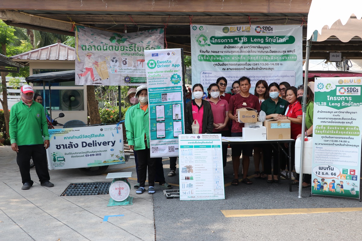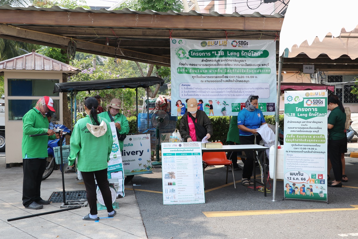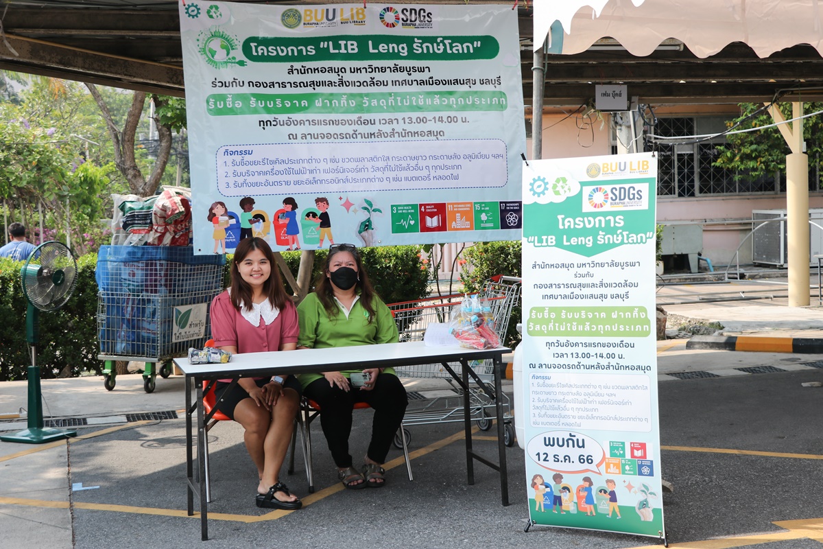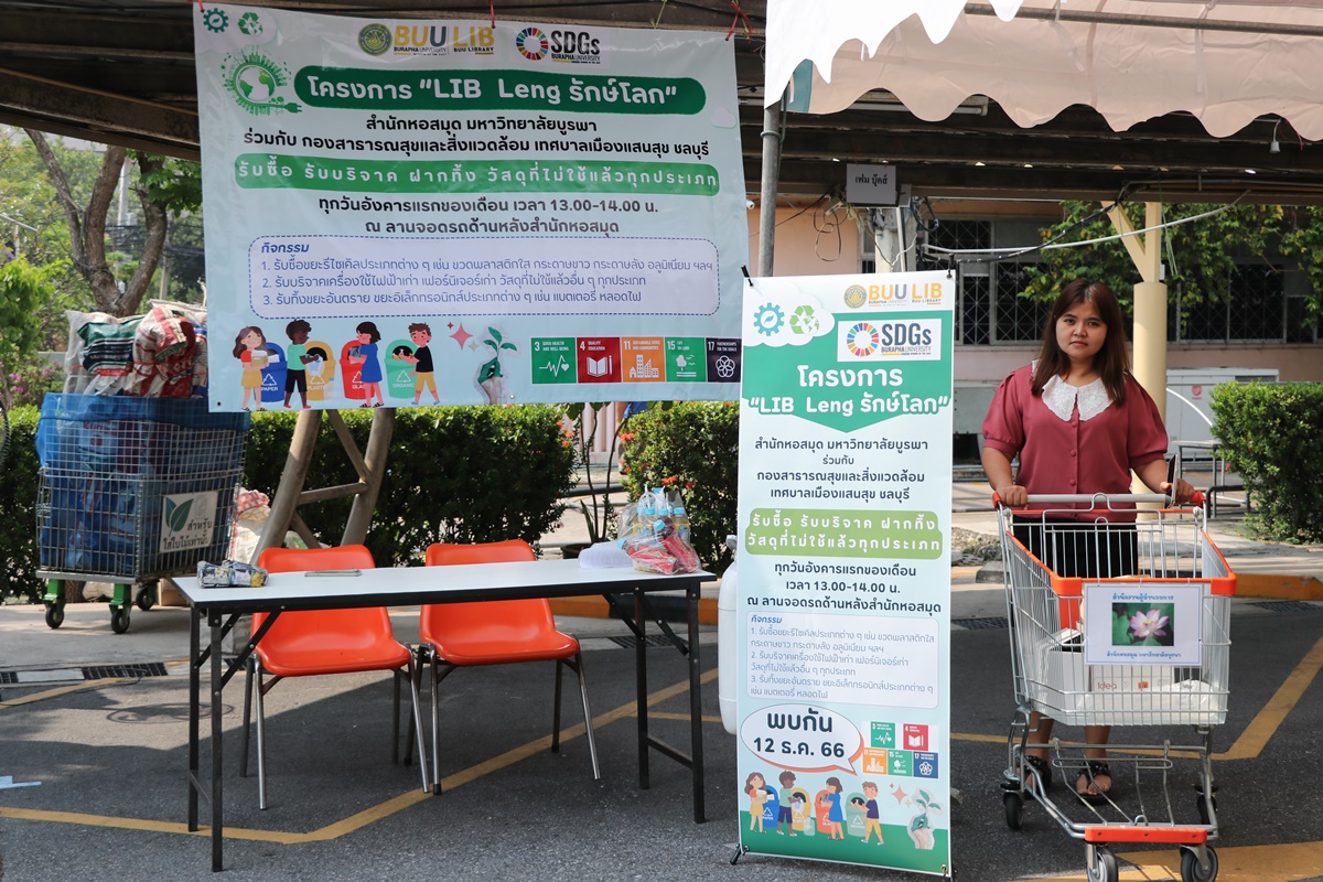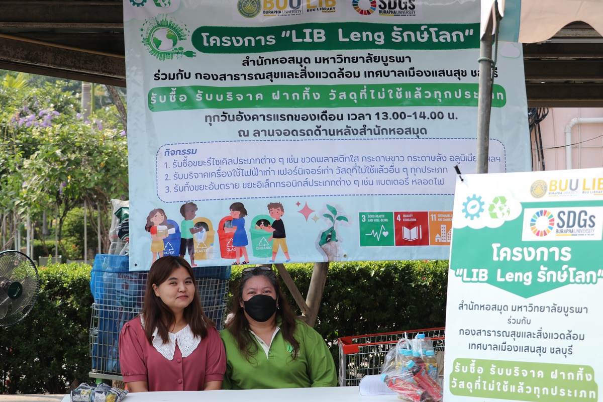 Burapha University Library together with Public Health and Environment Division, Saen Suk Municipality, Chonburi, held the “Lib Leng Save the World” Project by bringing a sidecar to buy various types of recycled waste and accepting donations of old electrical appliances, furniture, unused materials and accepting deposits of hazardous waste in all types of electronic waste. This activity is held every first Tuesday of each month from 1:00 p.m. – 2:00 p.m., starting 12 December 2023 at the parking lot back to the library.