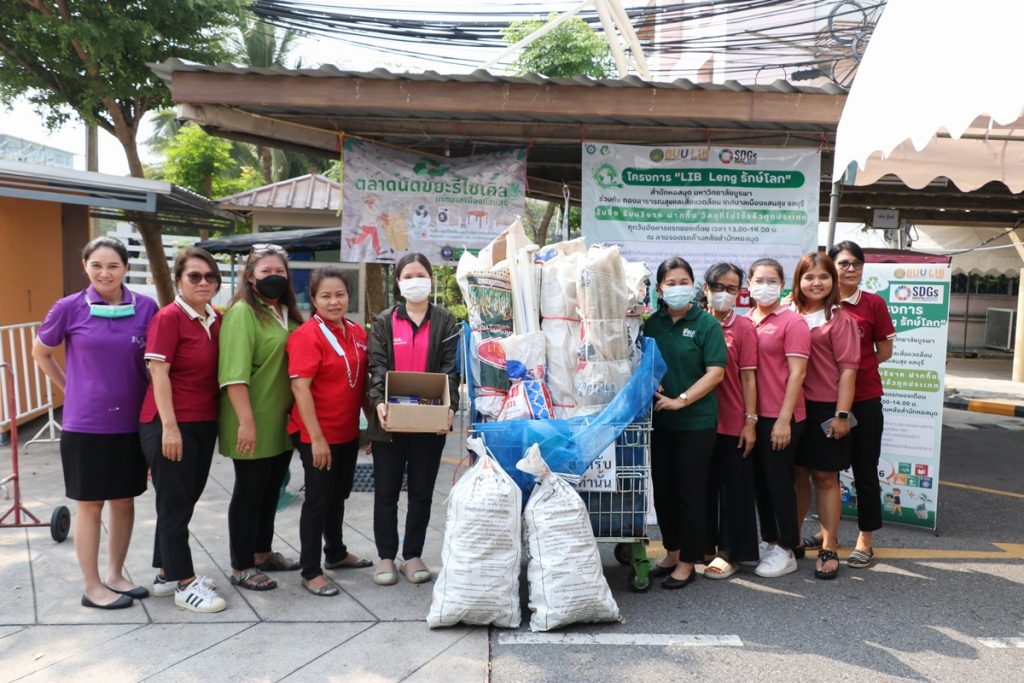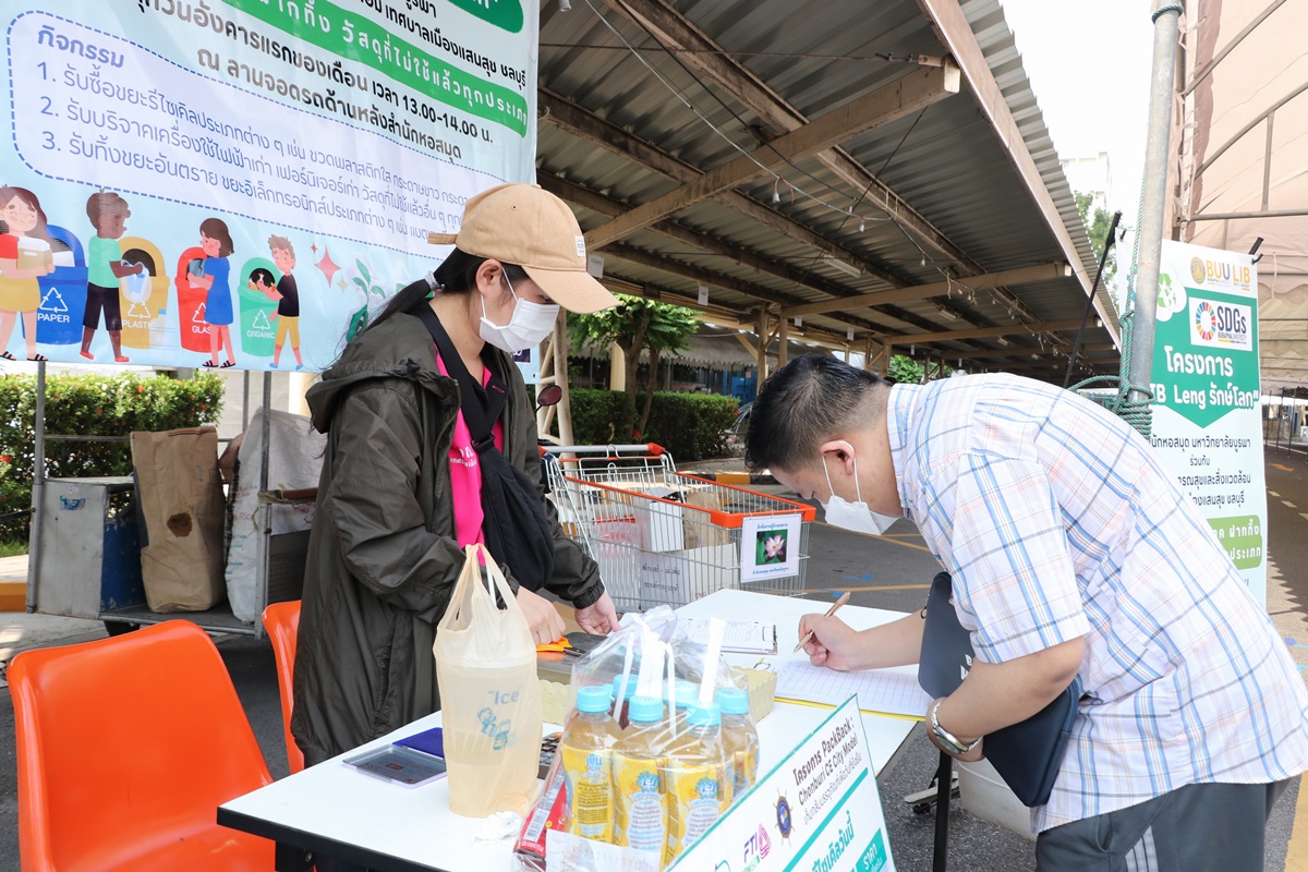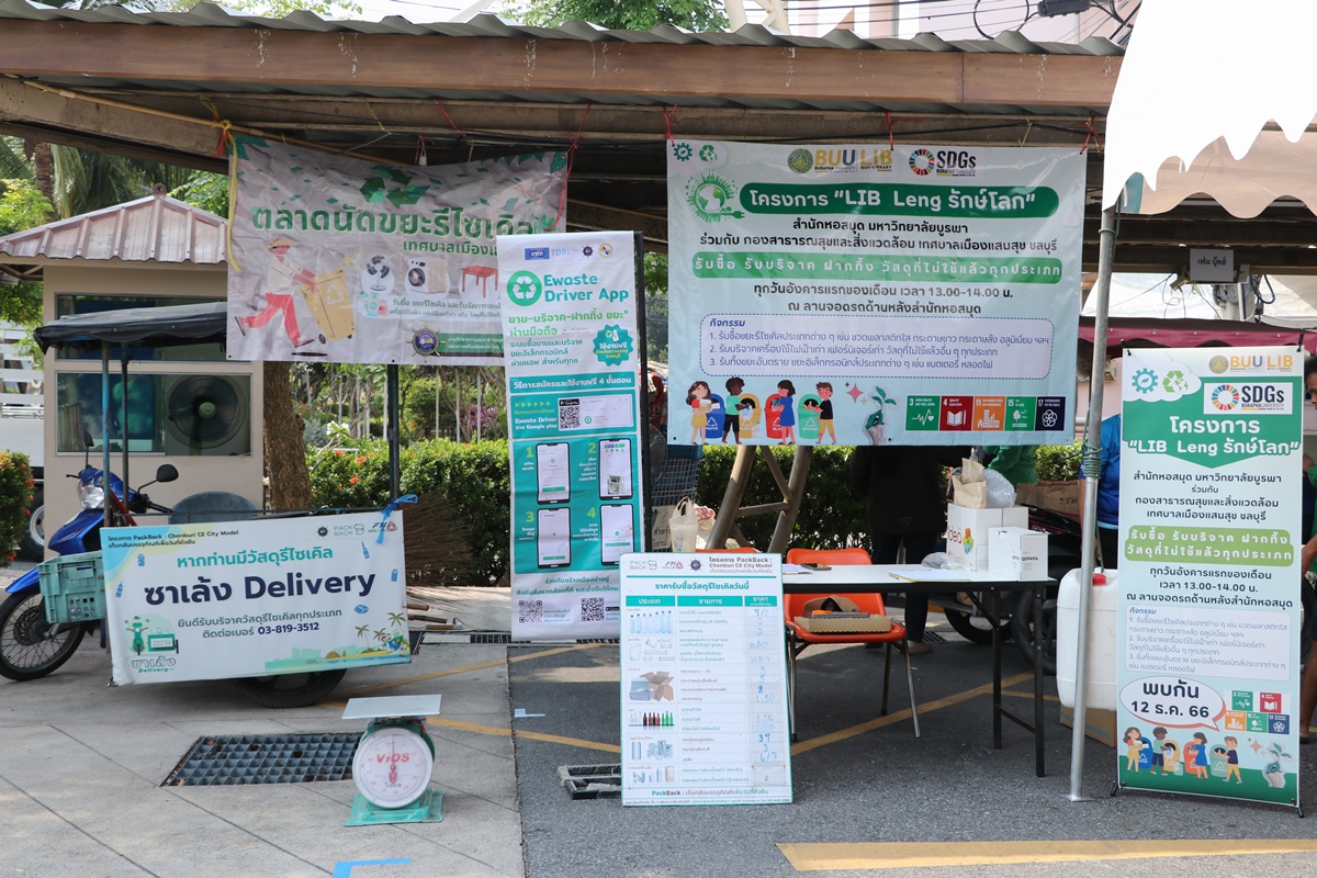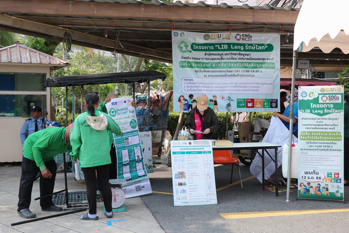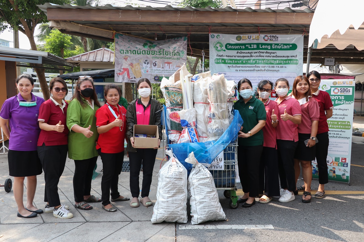 Burapha University Library together with Public Health and Environment Division, Saen Suk Municipality, Chonburi, held the “Lib Leng Save the World” Project by bringing a sidecar to buy various types of recycled waste and accepting donations of old electrical appliances, furniture, unused materials and accepting deposits of hazardous waste in all types of electronic waste. This activity is held every first Tuesday of each month from 1:00 p.m. – 2:00 p.m., starting 12 December 2023 at the parking lot back to the library.