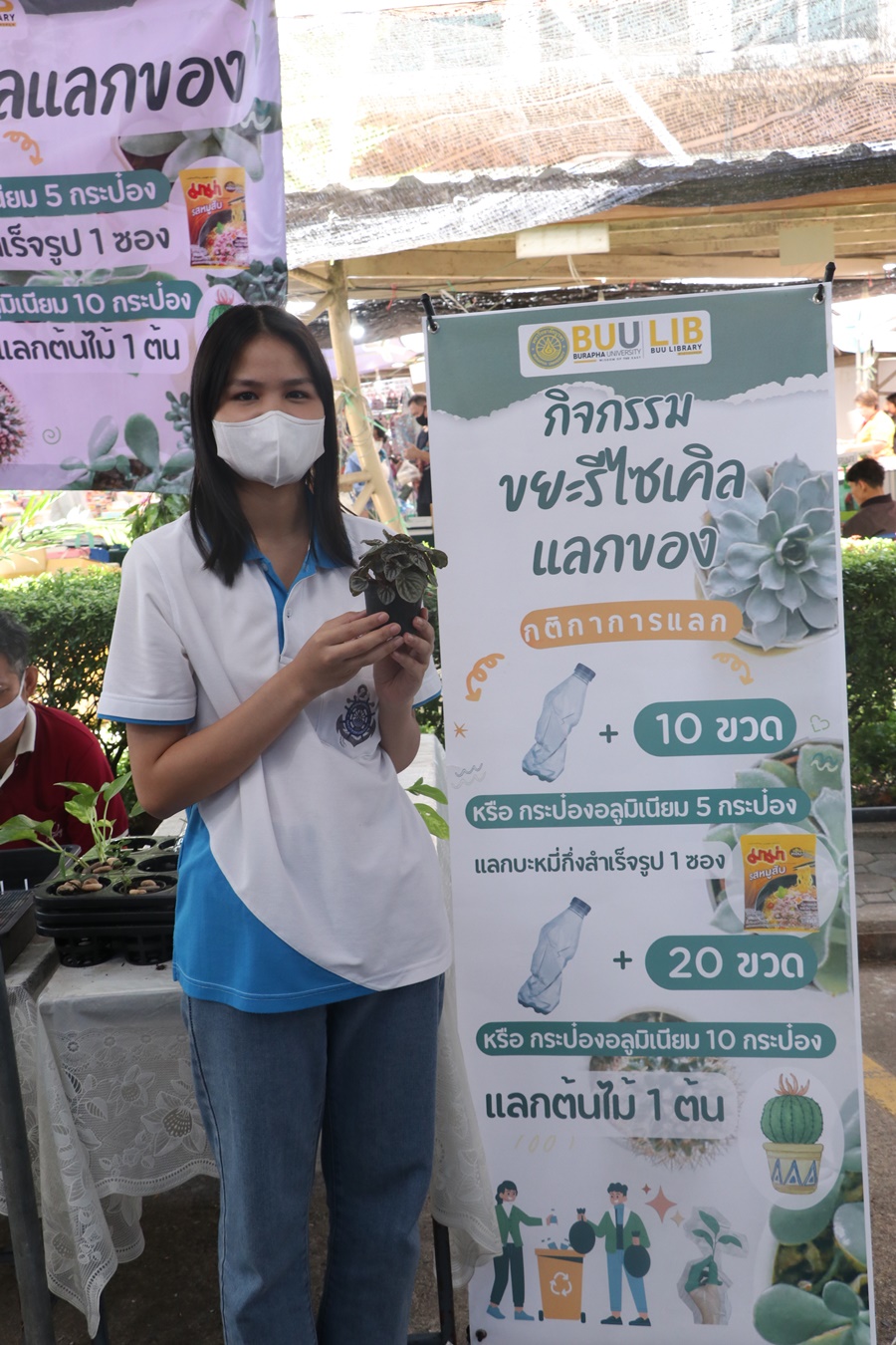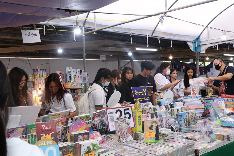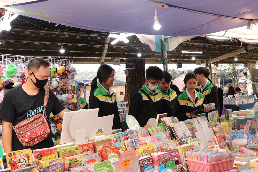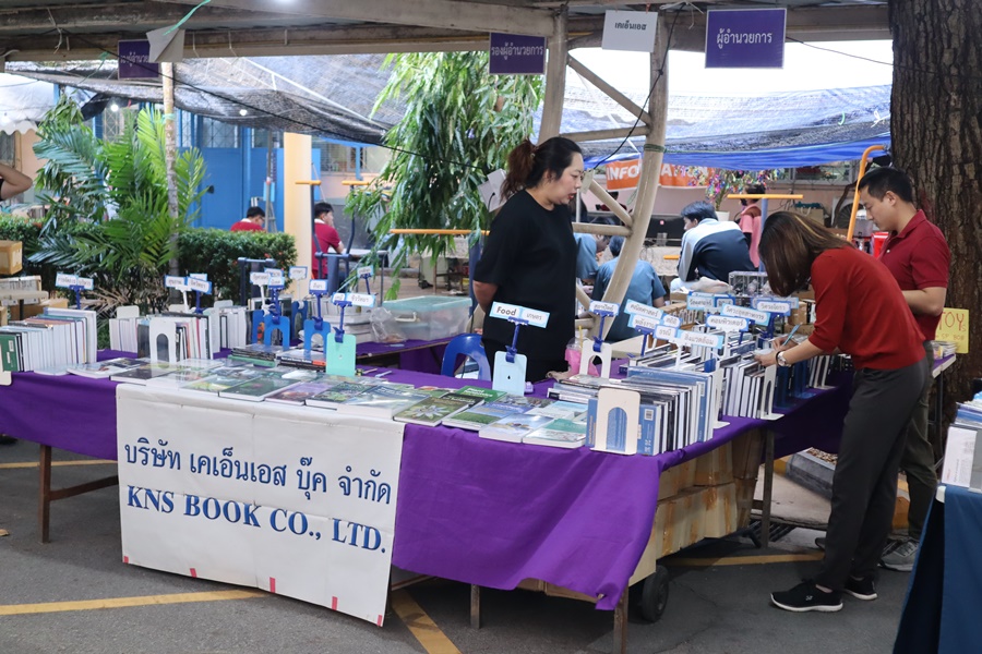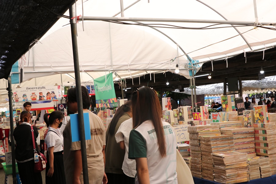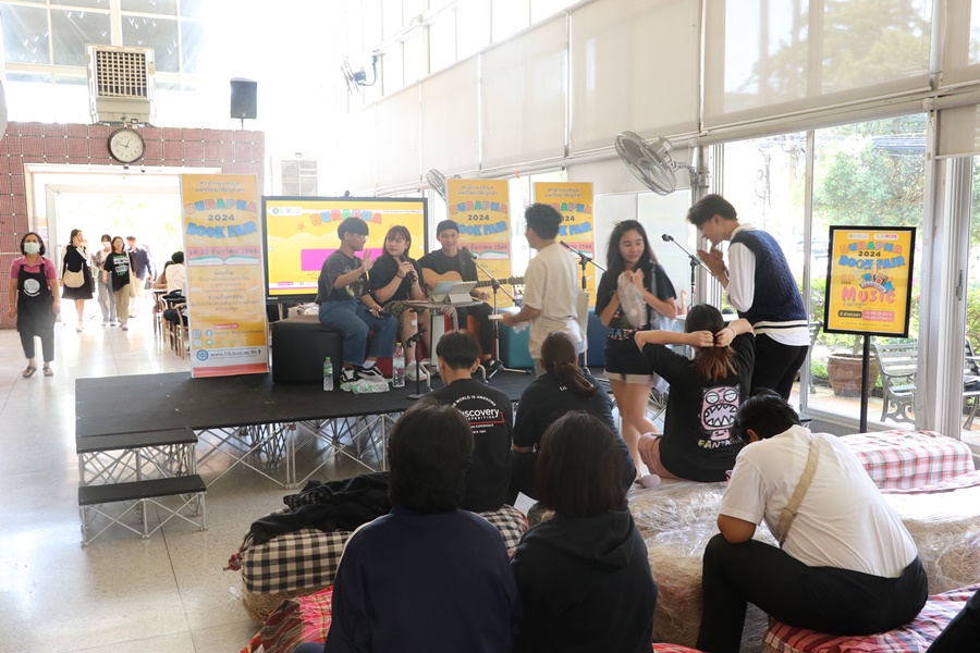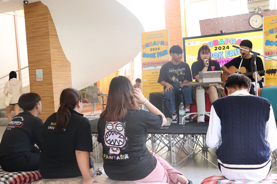 Burapha University Library held Burapha Book Fair for the annual year 2024 which included many bookstores for instructors, staff, students, and general public so that they could buy books at the fair. In addition, there were various activities at the event such as student’s musical performances from Faculty of Music and Performing Art, Phanat Nikhom Joke Guessing Game, recycled waste exchanging activity by bringing the receipt to participate in prize drawing activity and food selling, etc. between 18-21 December 2023 at Burapha University Library.