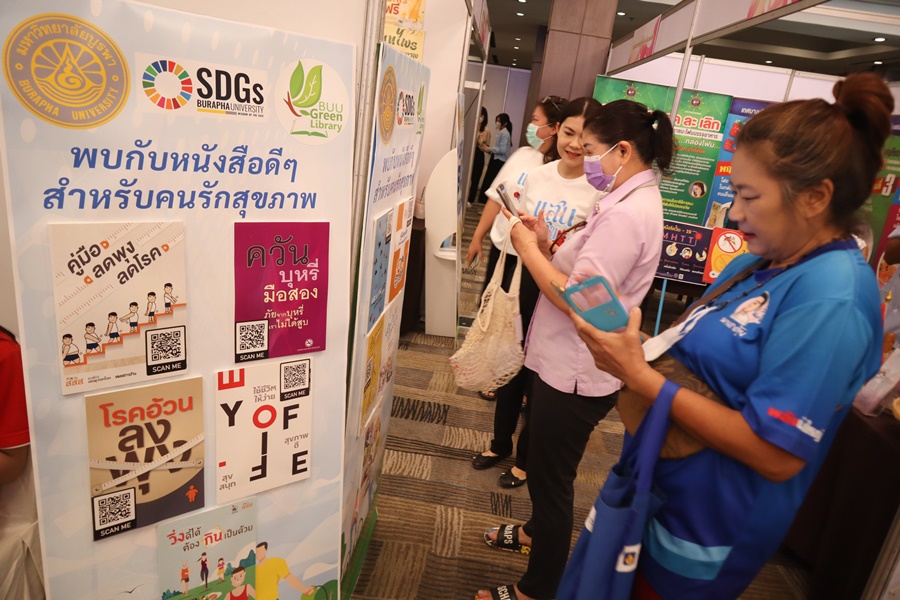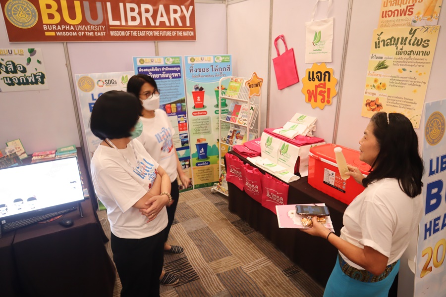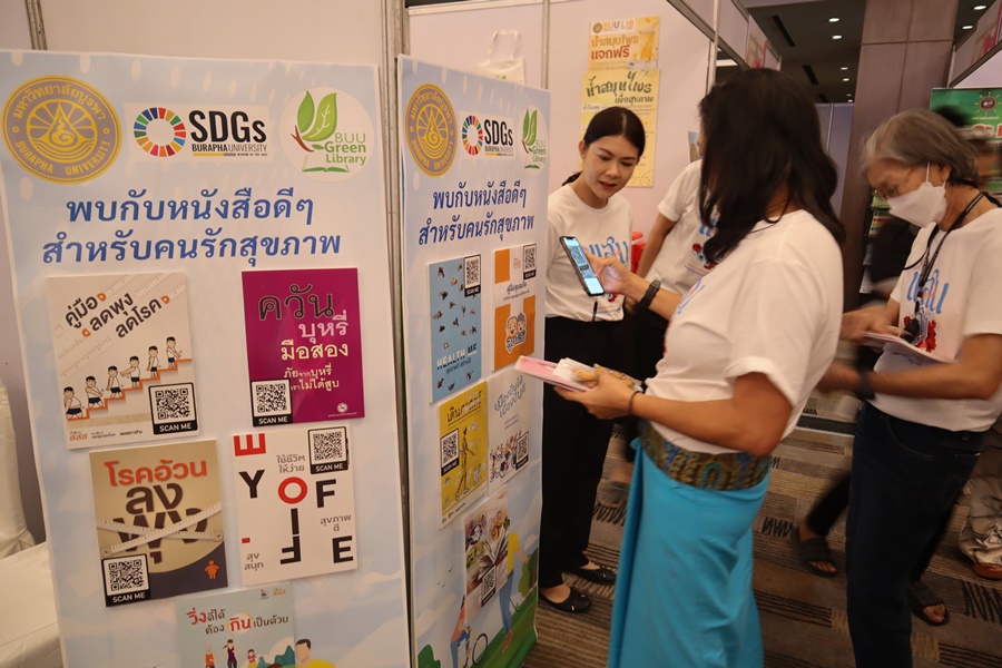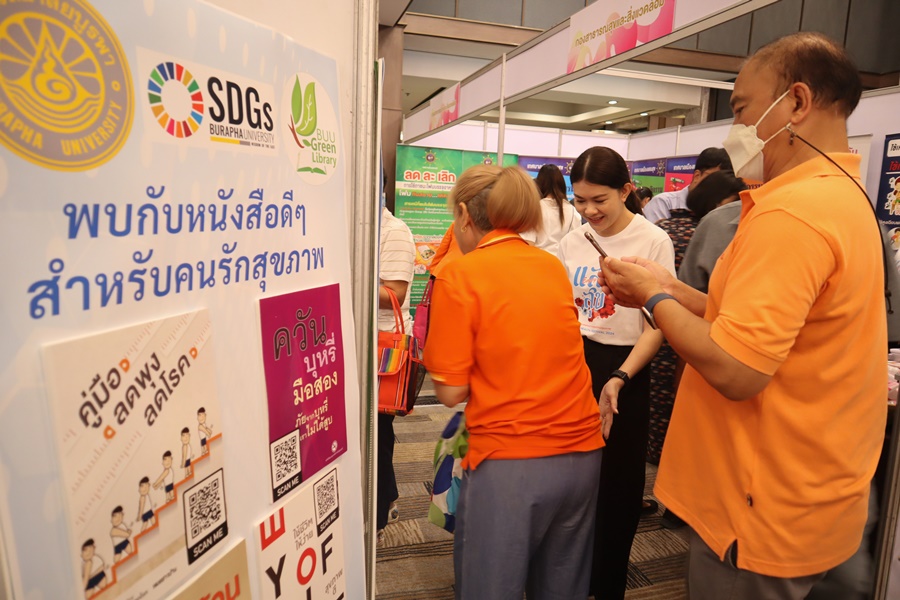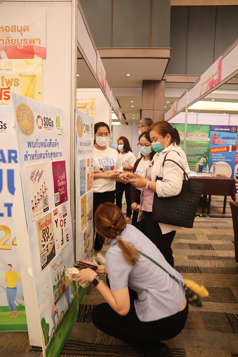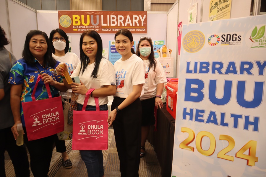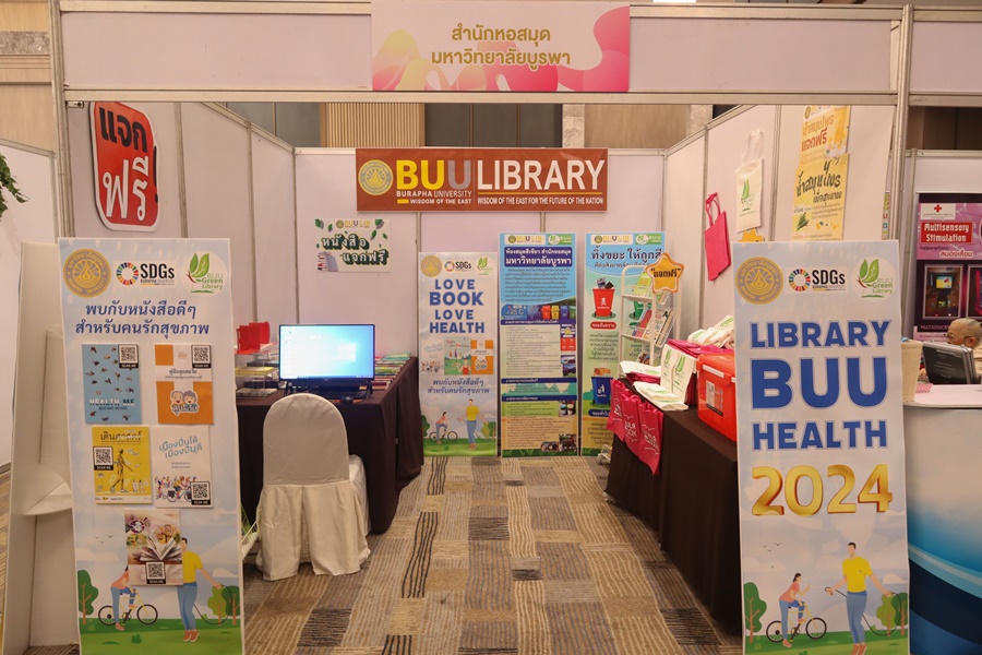 Burapha University Library participated in academic exhibition and held reading promotion activity at “Bangsaen Health Festival” in the annual year 2024 held by Saensuk Municipality in order to encourage people of all age groups to be aware of the importance of maintaining health, promote public participation to improve people’s quality of life and lead to the development of Saensuk City into a livable city and people have sustainably good health. This event was held on 18 – 19 January 2024 at the Pacific Room of The Tide Resort Hotel, Chonburi Province.
