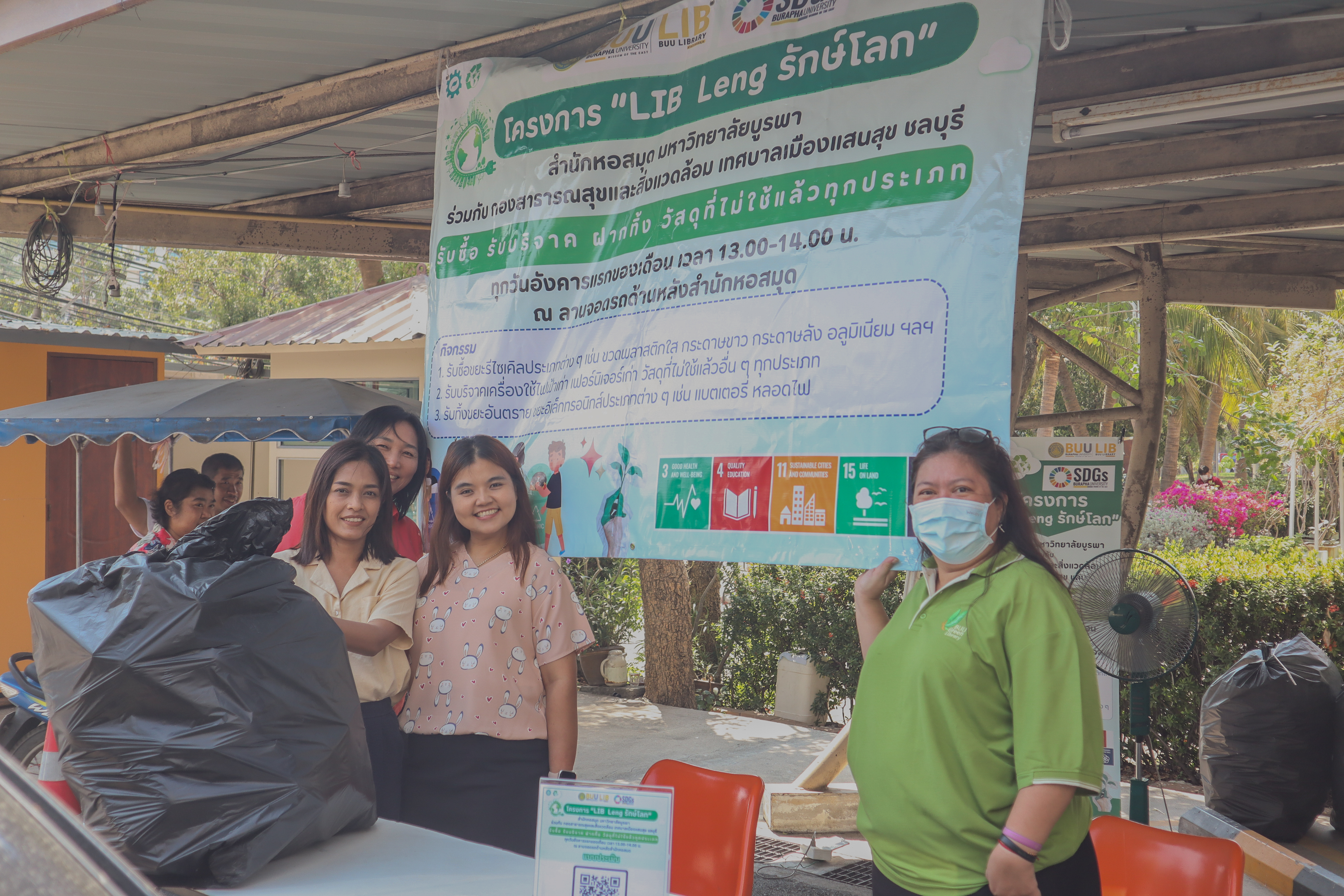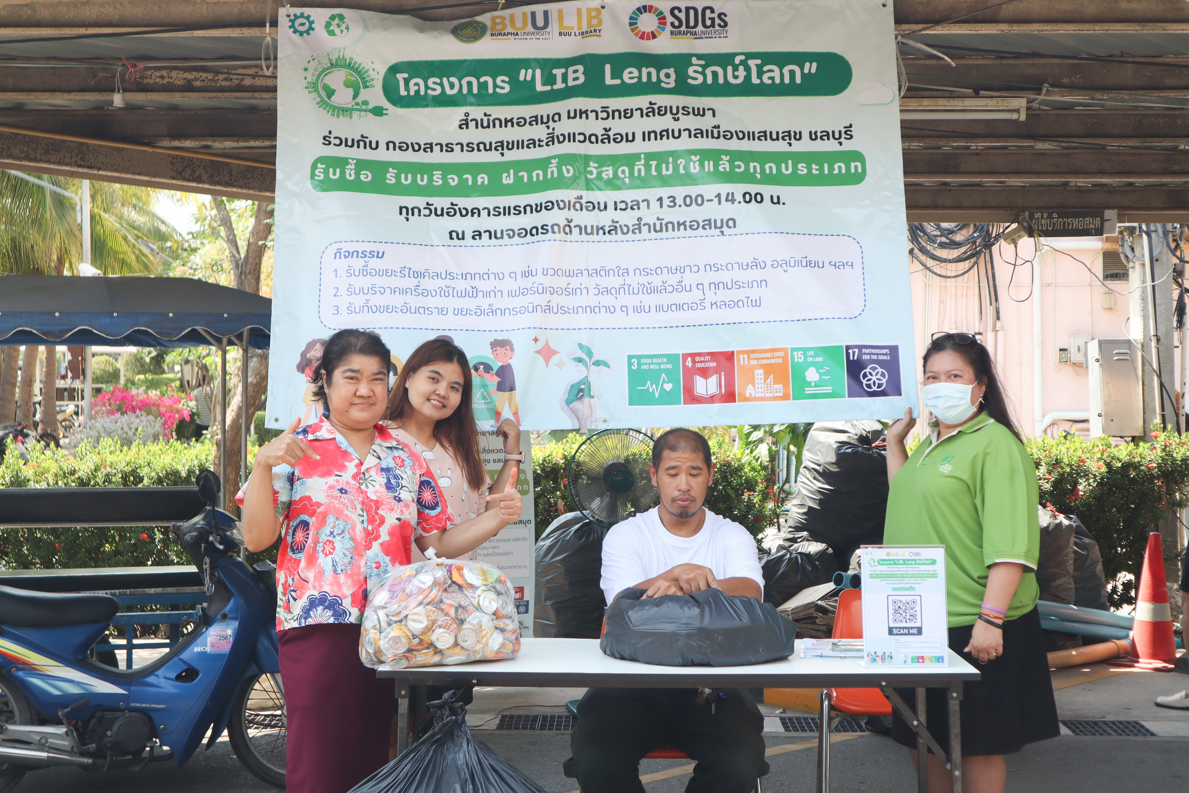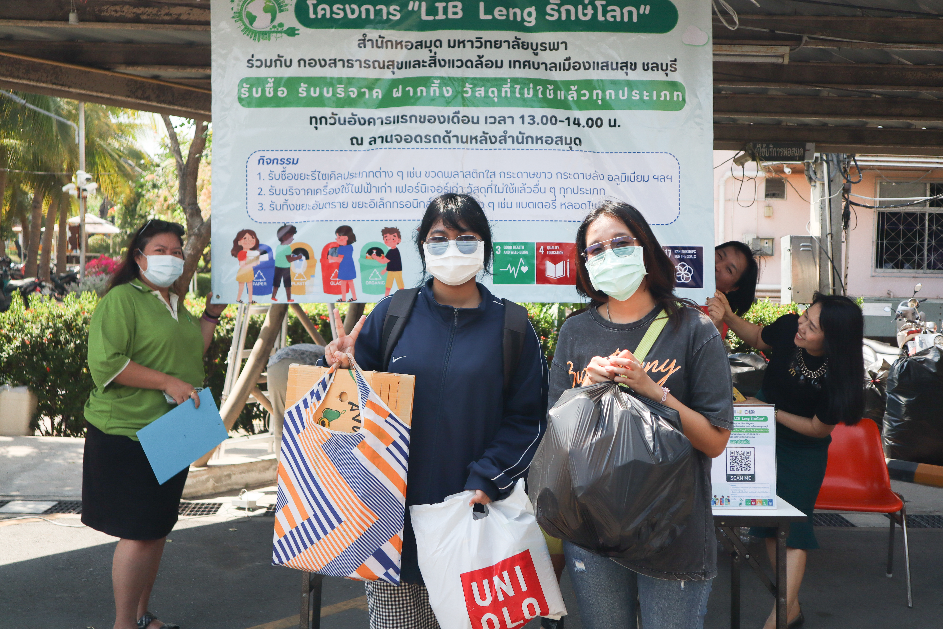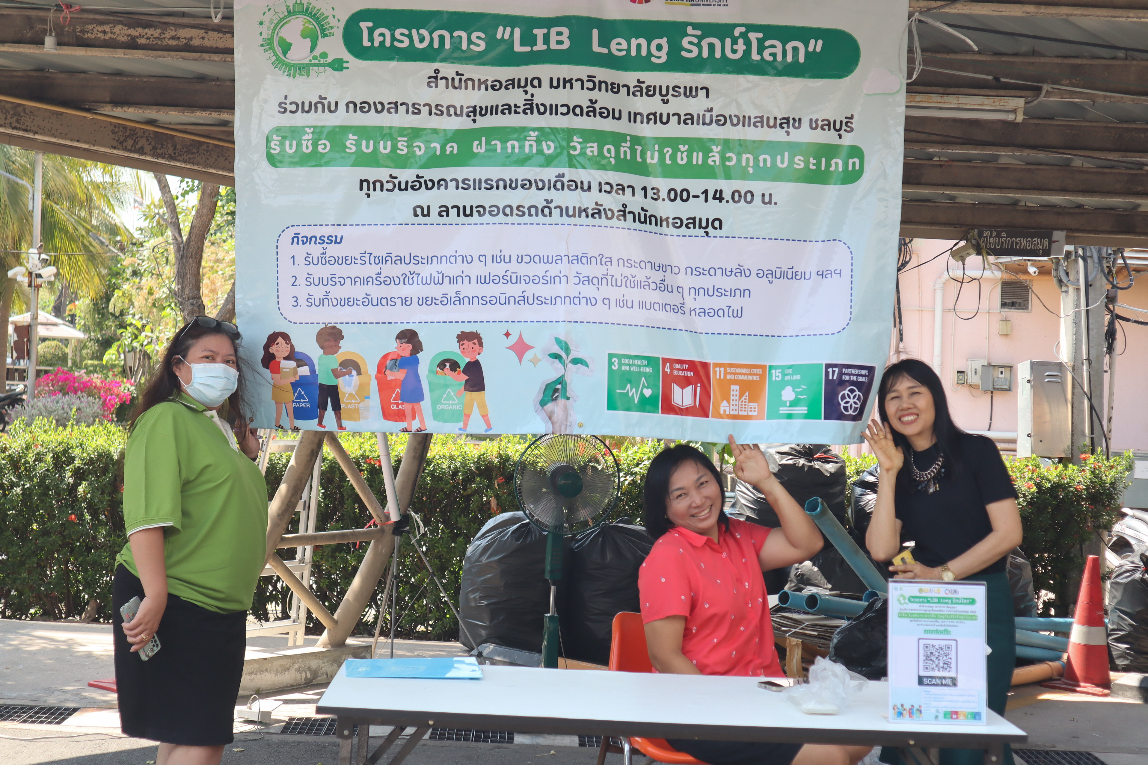 Burapha University Library together with Public Health and Environment Division, Saen Suk Municipality, Chonburi, held the “Lib Leng Save the World” Project by bringing a sidecar to buy various types of recycled waste and accepting donations of old electrical appliances, furniture, unused materials and accepting deposits of hazardous waste in all types of electronic waste. This activity will be held every first Tuesday of each month from 1:00 p.m. – 2:00 p.m. at the parking lot back to the library.