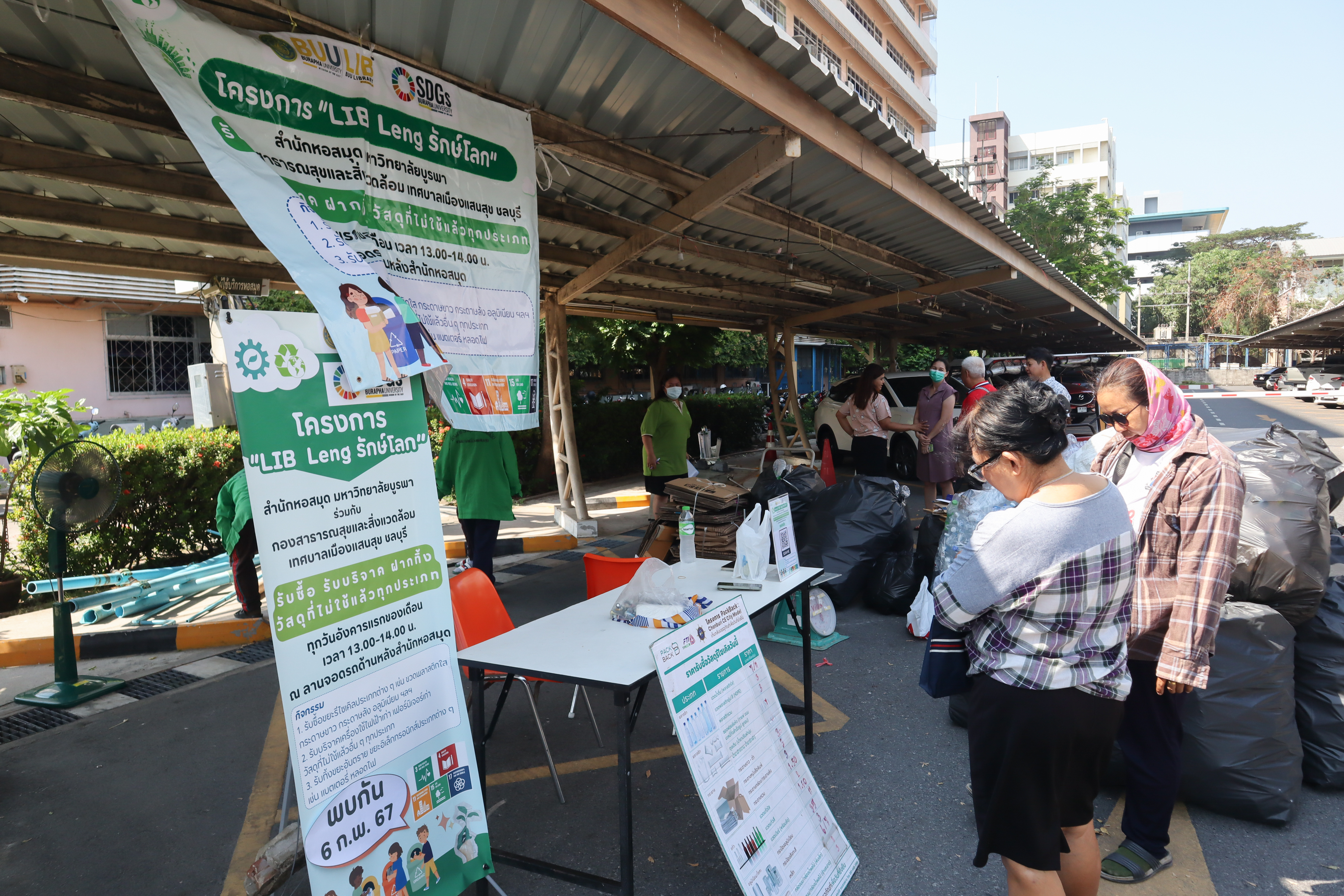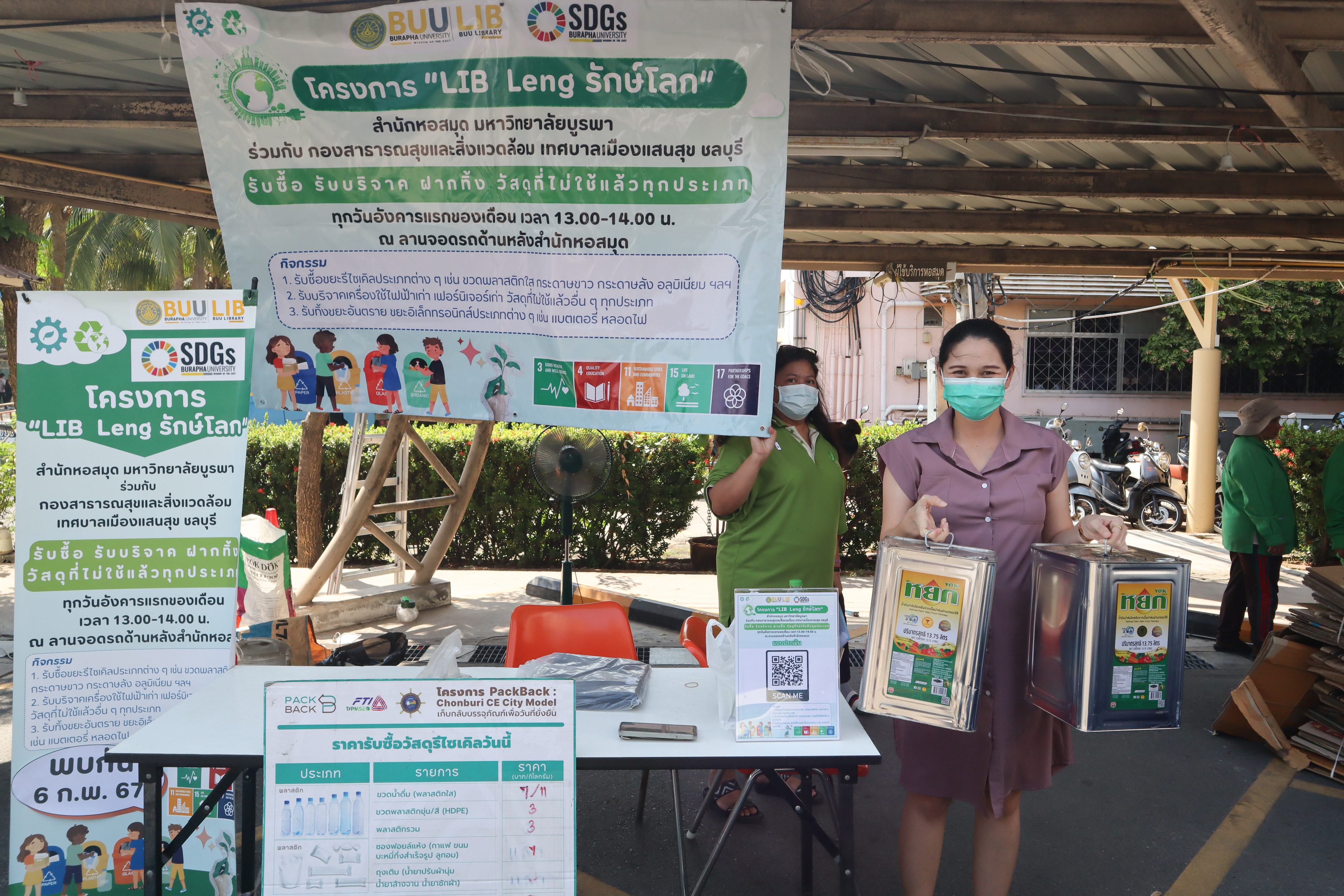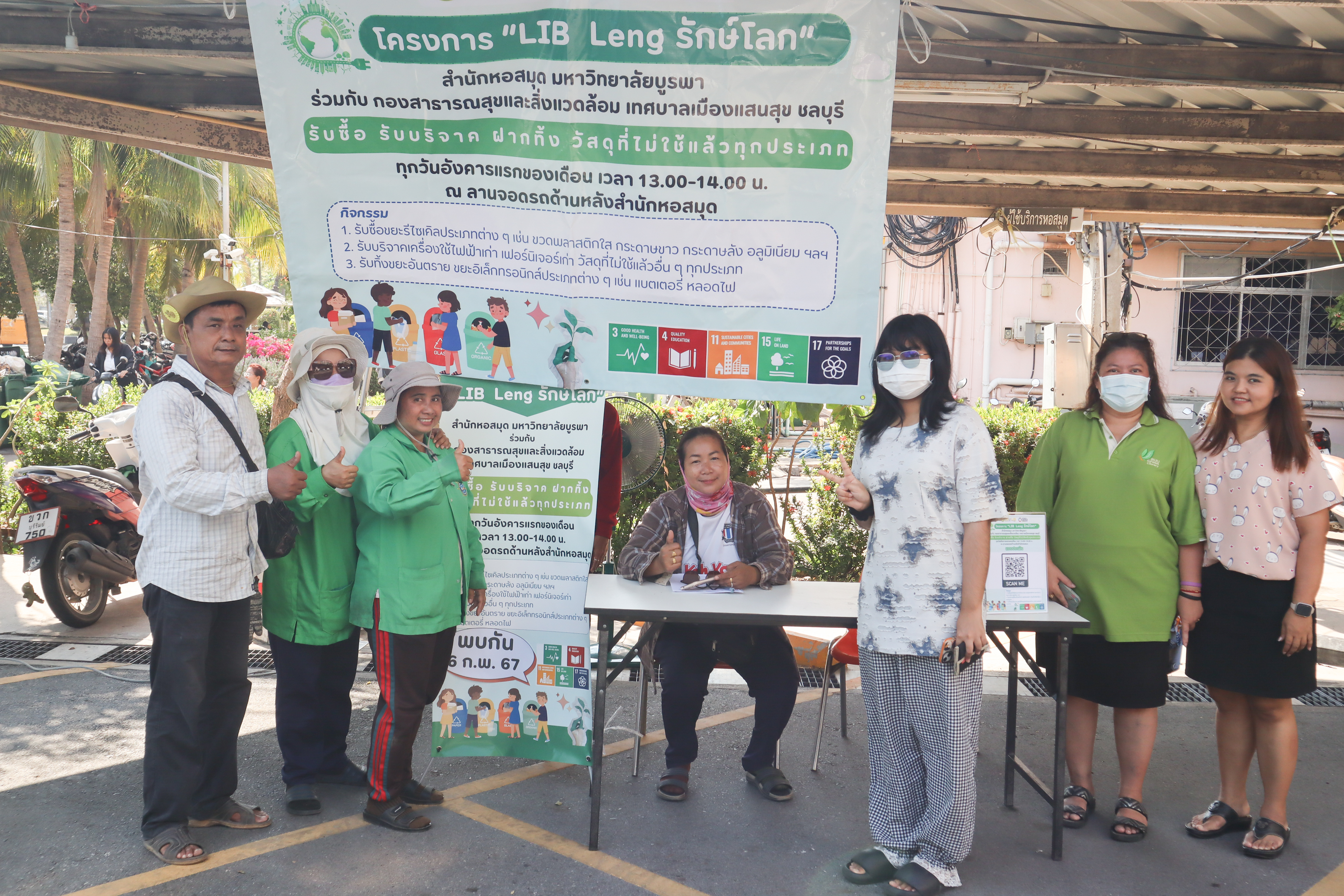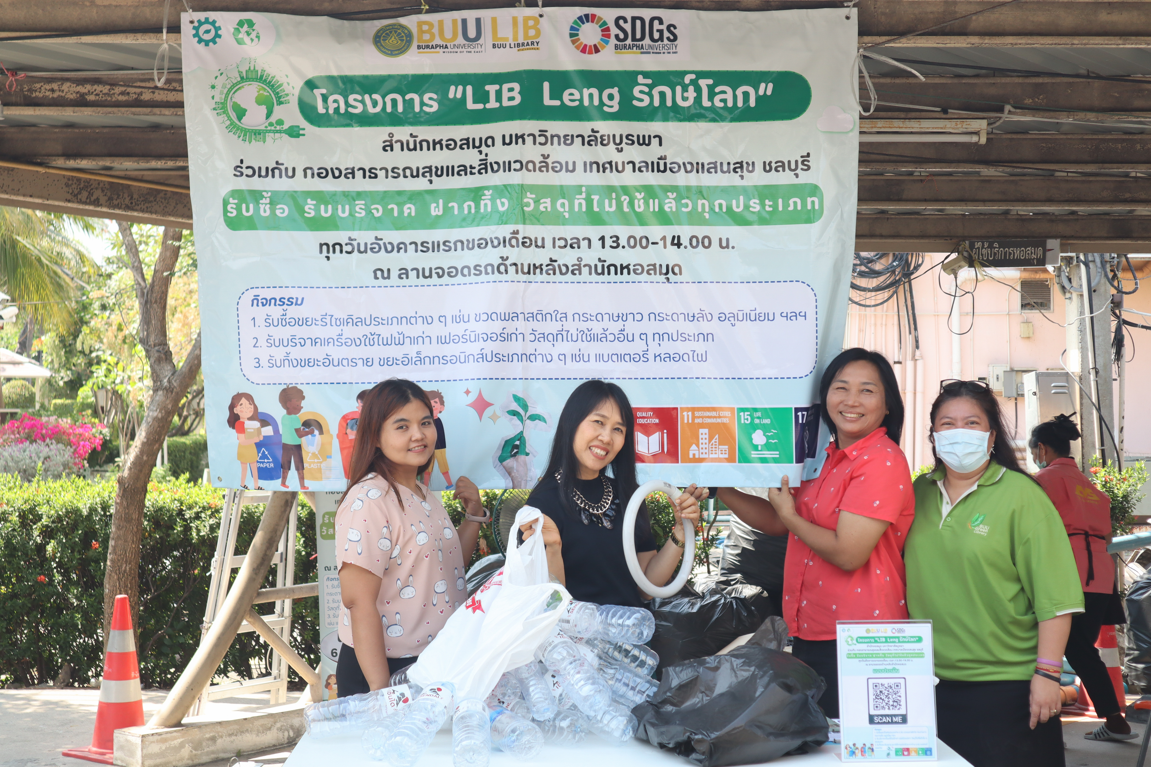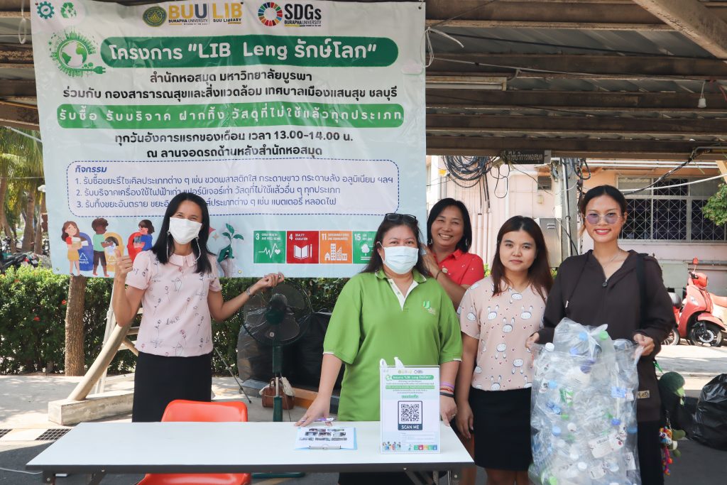 Burapha University Library together with Public Health and Environment Division, Saen Suk Municipality, Chonburi, held the “Lib Leng Save the World” Project by bringing a sidecar to buy various types of recycled waste and accepting donations of old electrical appliances, furniture, unused materials and accepting deposits of hazardous waste in all types of electronic waste. This activity will be held every first Tuesday of each month from 1:00 p.m. – 2:00 p.m. at the parking lot back to the library.