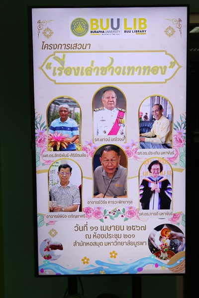 Burapha University Library, led by Mr. Hemmarat Wachirahatthapong, the Director of BUU Library, inaugurated the “Tao Thong Stories” Project. This project held in collaboration with the Student Affairs Division, aims to collect historical information, documents, and evidence related to the history and prestige of Burapha University. The knowledge and data gathered will be published in Burapha University Archives for future generations to study and research. The speakers included alumni and senior faculty members as follows: