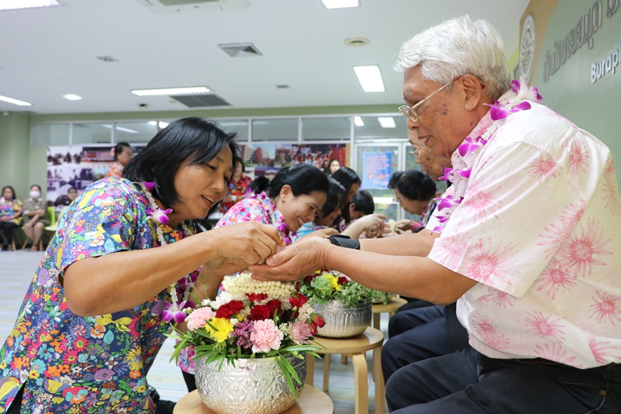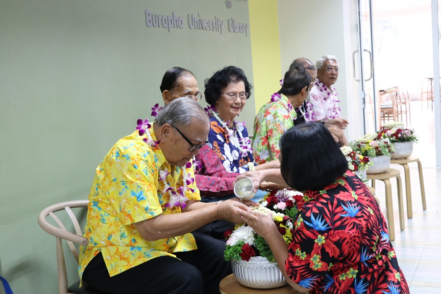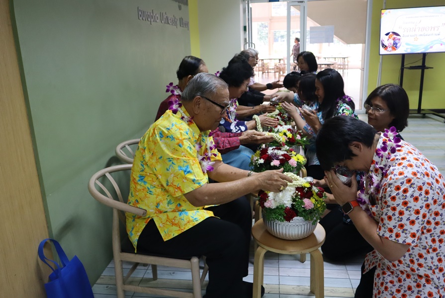 Additionally, library staff held a water-pouring ceremony and sought blessings for good fortune on Songkran Day or Thai New Year Day on 11 April 2024.