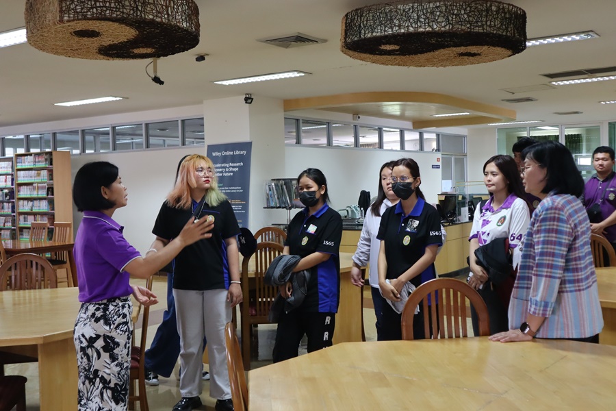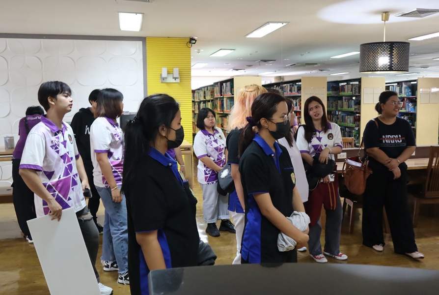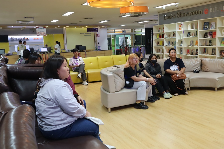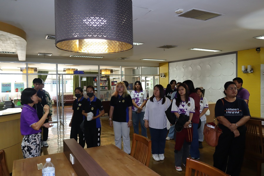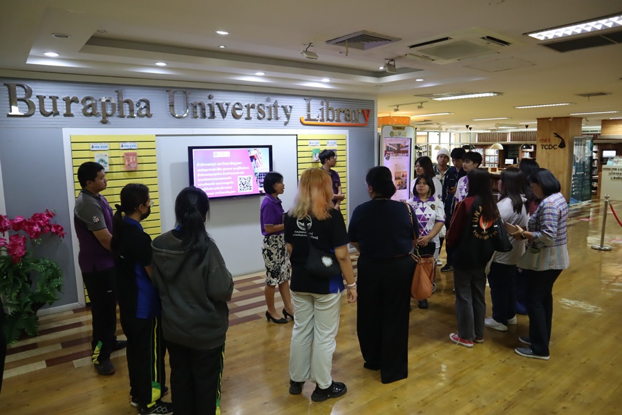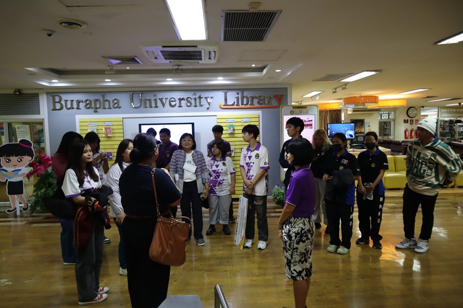 Burapha University Library welcomed the faculty members and third-year students from the Information Science and Library Science Major, Faculty of Humanities and Social Sciences, Nakhon Ratchasima Rajabhat University, who visited for a study tour. This visit aimed to provide the students with knowledge and hands-on experience to prepare them for future professional work.