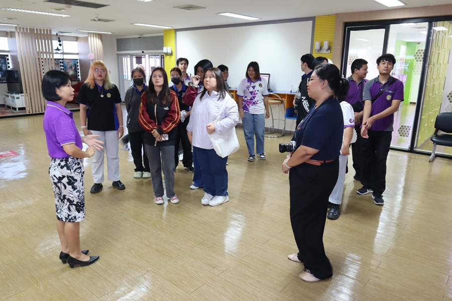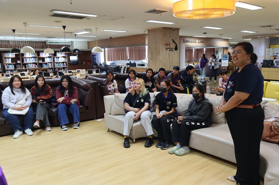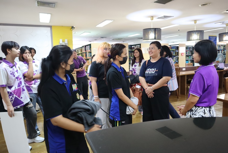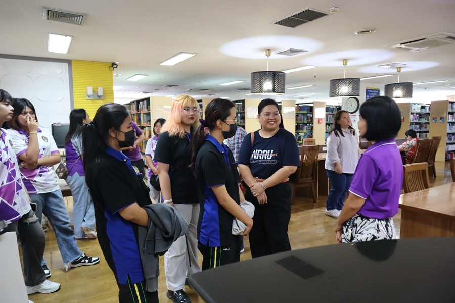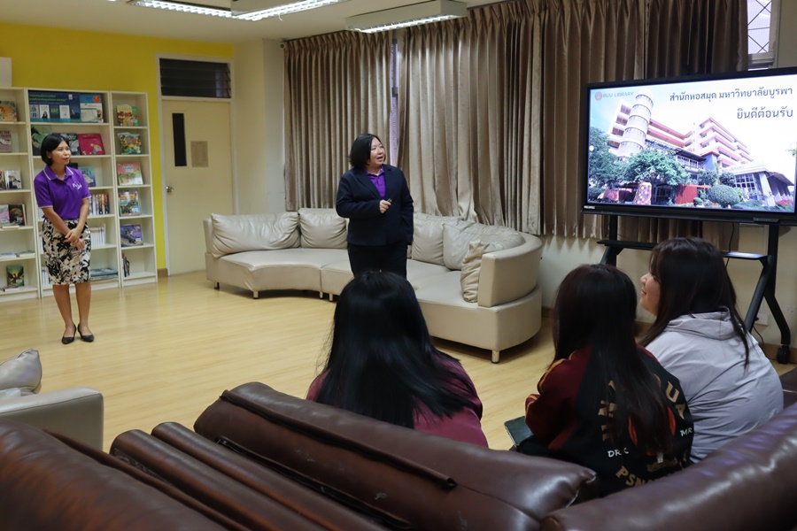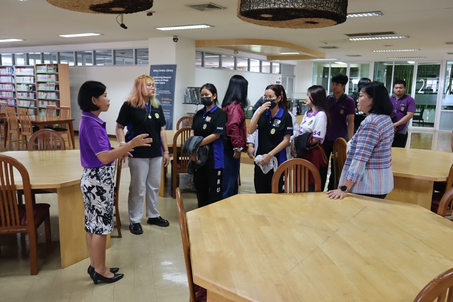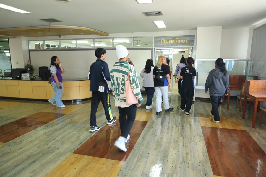 Burapha University Library welcomed the faculty members and third-year students from the Information Science and Library Science Major, Faculty of Humanities and Social Sciences, Nakhon Ratchasima Rajabhat University, who visited for a study tour. This visit aimed to provide the students with knowledge and hands-on experience to prepare them for future professional work.
