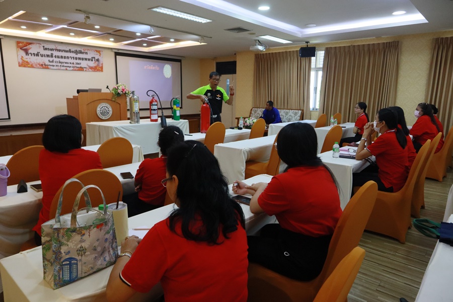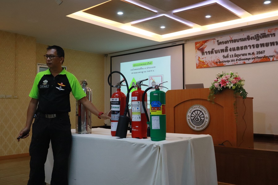 Burapha University Library, led by Mr. Hemarat Wachirahatphong, the Director of BUU Library, gave an opening speech for the training workshop on firefighting and fire evacuation to prepare for fire incidents and fire prevention skills. Lectures, demonstrations, and practical training were provided to library personnel on 13 June 2024.