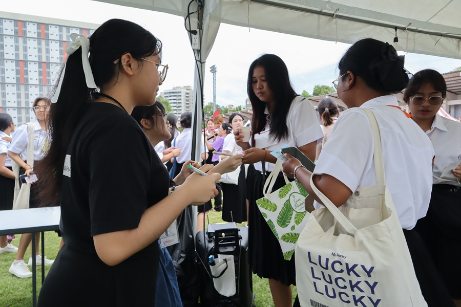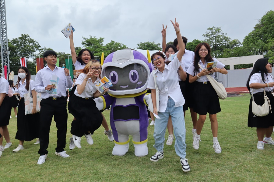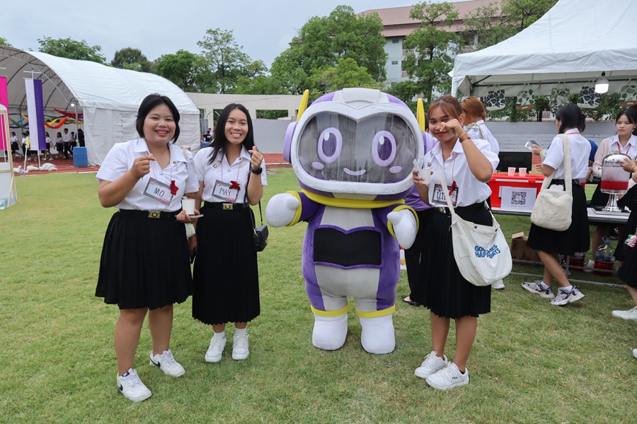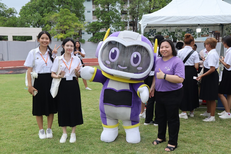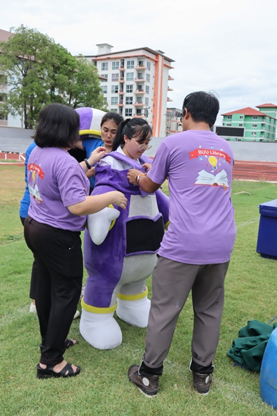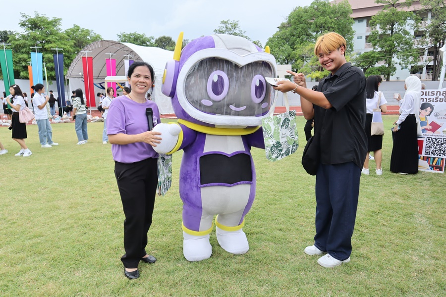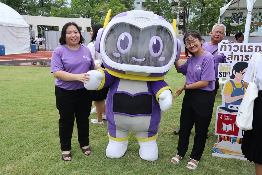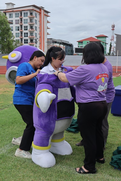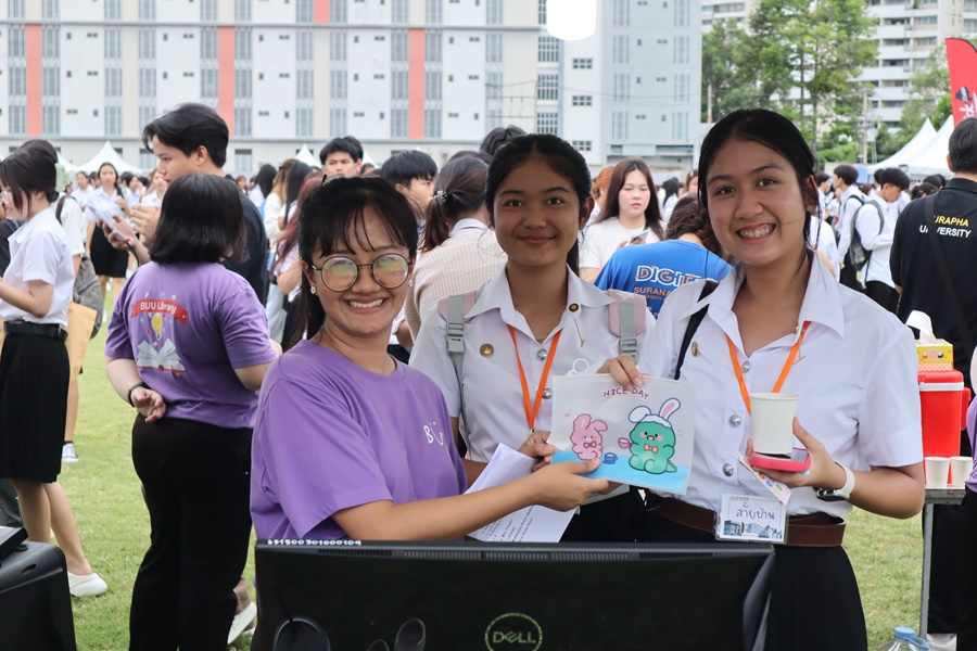 Burapha University Library held the “Library Meets Friends” project, featuring a variety of engaging activities. These included taking photos with the library mascot “Nong Mee Dee” and posting them on Facebook, a book title guessing game, a jigsaw puzzle challenge, and free refreshing drinks for new students.