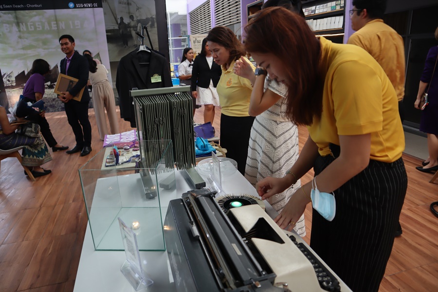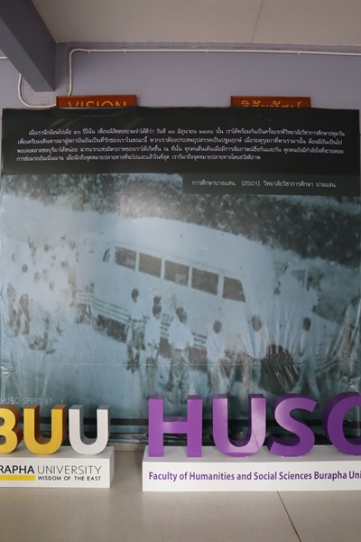 BUU Library participated in the event “Glimpses of the Past, Tales of HUSO,” organized by the Faculty of Humanities and Social Sciences, Burapha University. The event was honored by the presence of Assoc. Prof. Dr. Watcharin Kasalak, Acting President of Burapha University, who presided over the opening ceremony together with the Chairman of the University Council, Assoc. Prof. Dr. Sumon Sakonlaya, university executives, faculty leaders, senior professors, current faculty members, support staff, alumni, and current students. The event featured guided exhibitions of photographs, everyday items, traditional clothing, and various memorabilia, offering a nostalgic look back at the history and development of the Faculty of Humanities and Social Sciences, which is approaching its seventh decade. Attendees also viewed vintage photographs and learned stories from the past of Bangsaen, Chonburi Province, presented by the owner of the Facebook page “Song Adet Mueang Chon” (Mr. Withan Muangseenoon) and the Sriracha Lovers Club. The event took place on 8 July 2024.