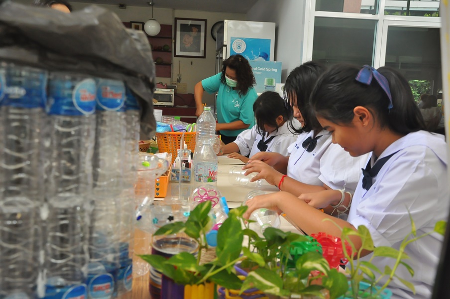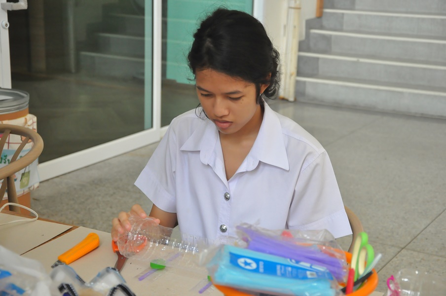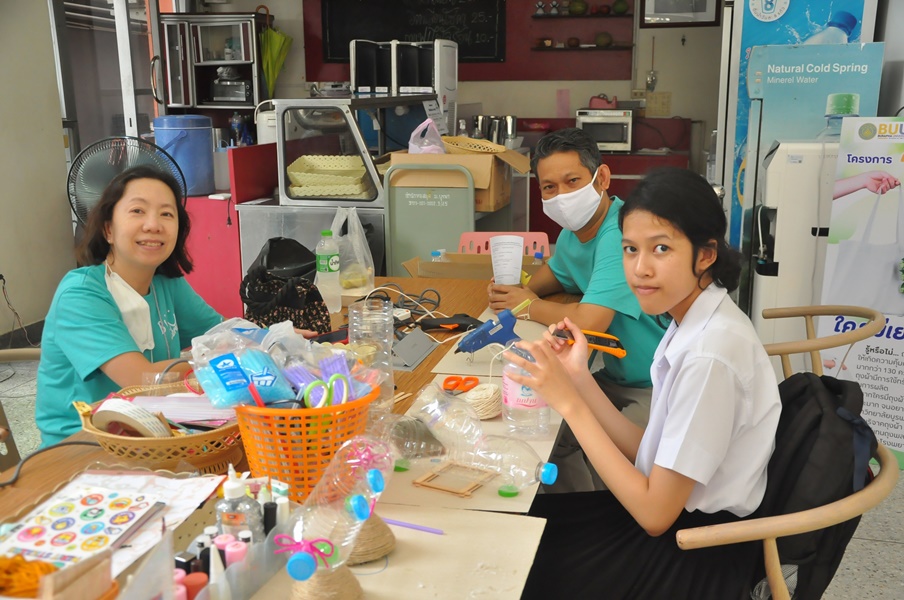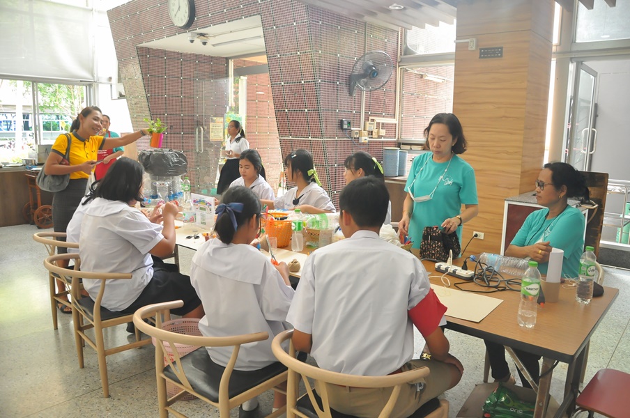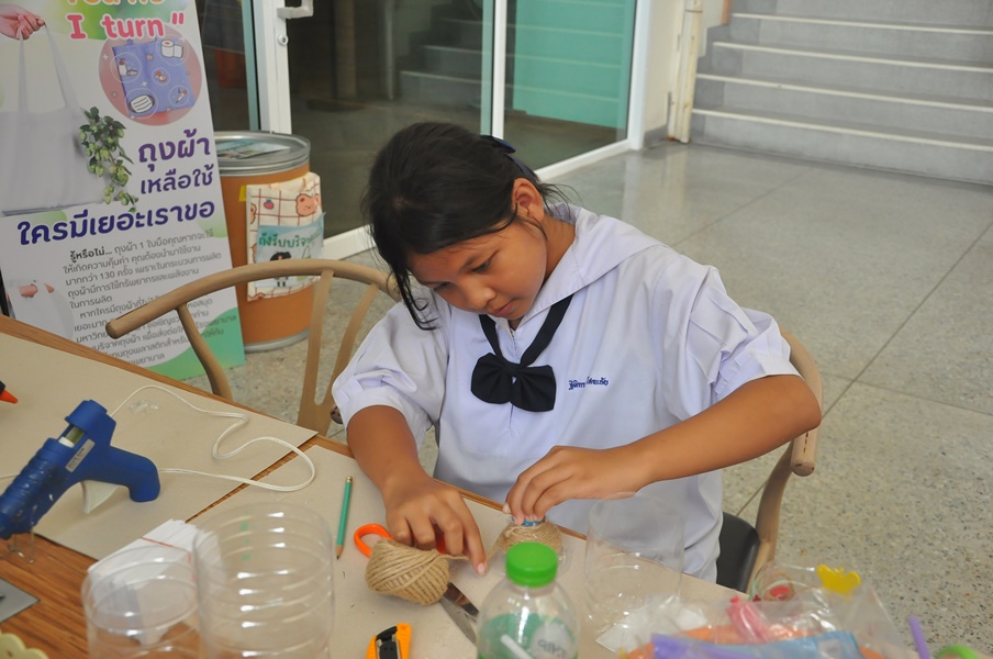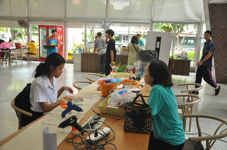 Burapha University Library organized a DIY craft-making activity using recycled materials. This event was part of Green Library during Library Week 2024. The activity aimed to encourage creative reuse of waste materials by transforming water bottles into artistic and practical items. Participants completed their projects on-site and were able to take their beautiful creations home. The event was held on 17 July 2024 at the common learning hall on the 1st floor of the library.