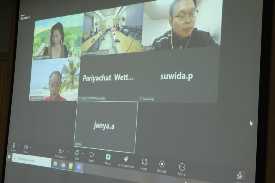 Burapha University Library led by Lec. Hemmarat Wachirahatthapong, the Director of the library, along with the executive team including Asst. Prof. Dr. Srihathai Wells, a faculty member of the Faculty of Humanities and Social Sciences, Burapha University, participated in an online meeting with the executives and staff of the Library of the Princess Maha Chakri Sirindhorn Anthropology Centre (Public Organization). The meeting was held to discuss collaborative activities following the signing of the Memorandum of Understanding (MoU). The session took place on January 29, 2025, in the meeting room 707 of the library.