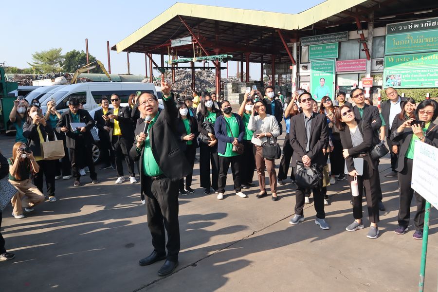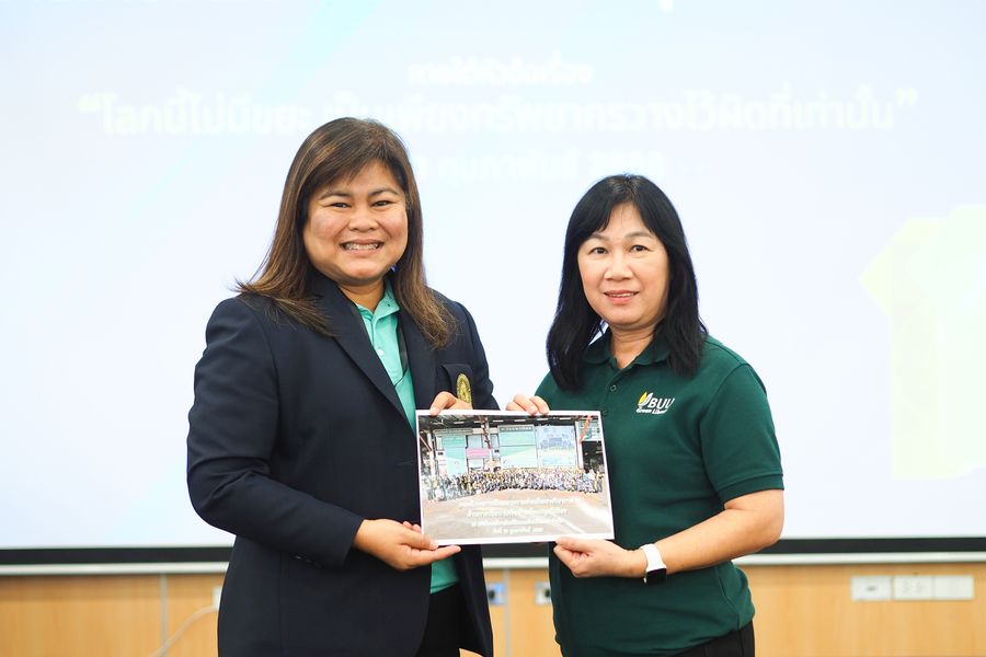 Personnel from BUU Library participated in the Academic Collaboration Seminar on Green Library Network Development, which included a lecture titled “There Is No Waste in This World—Only Resources Placed in the Wrong Location.” The seminar was held at the Office of Academic Resources and Information Technology, Pibulsongkram Rajabhat University. Participants also took part in a field study at a model temple for waste management, “Waste for Merit,” led by Phra Phawanawachiracharn, the abbot of Wat Wang Hin, Mueang District, Phitsanulok Province. The program took place on February 10-11, 2025.