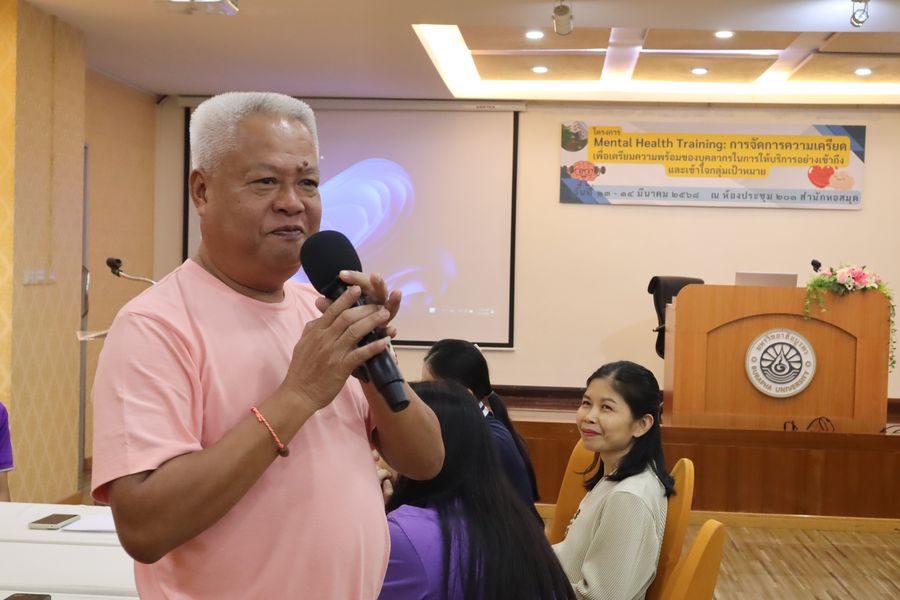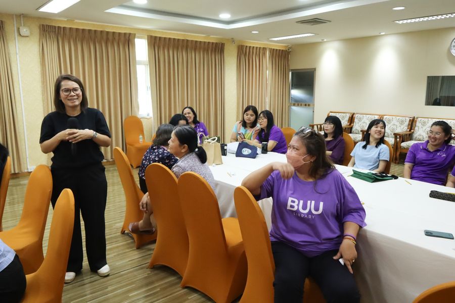 Burapha University Library led by Mr. Hemmarat Wachirahattapong, the Director of BUU Library, participated in the Simple Happiness Activity: Appreciating Yourself and Your Colleagues. This activity was part of the Mental Health Training: Stress Management to Prepare Staff for Accessible and Understanding Services for Target Groups project. It took place on March 14, 2025, at the meeting room 201 on the 2nd floor of the library.
