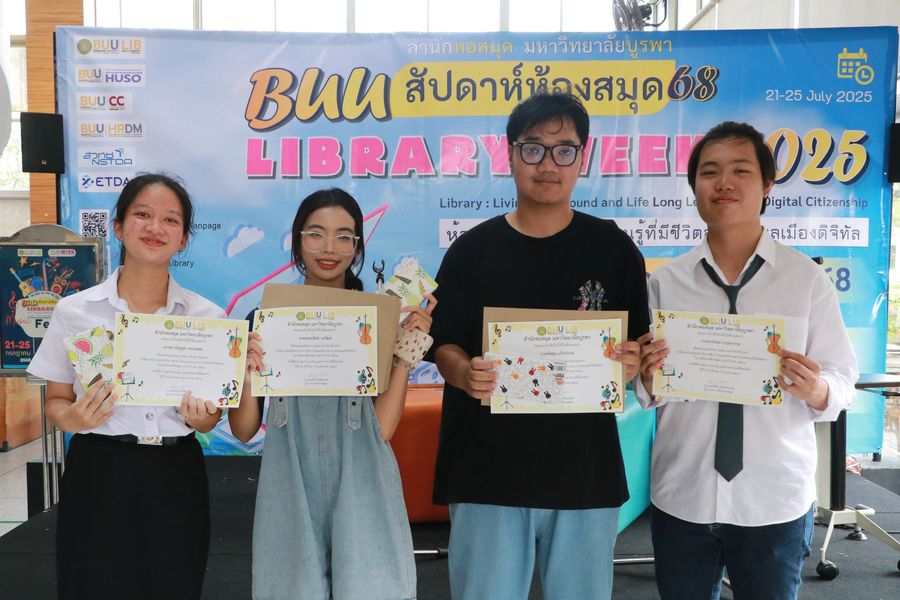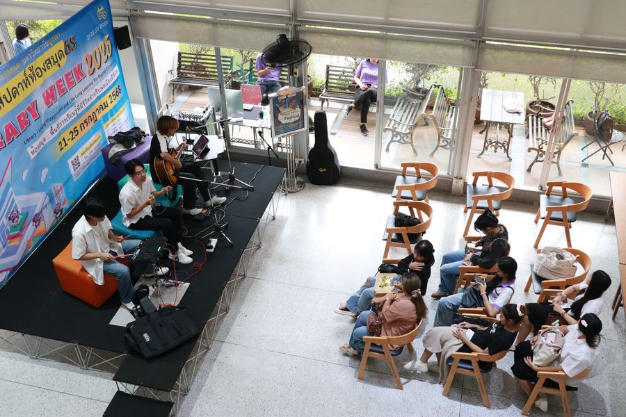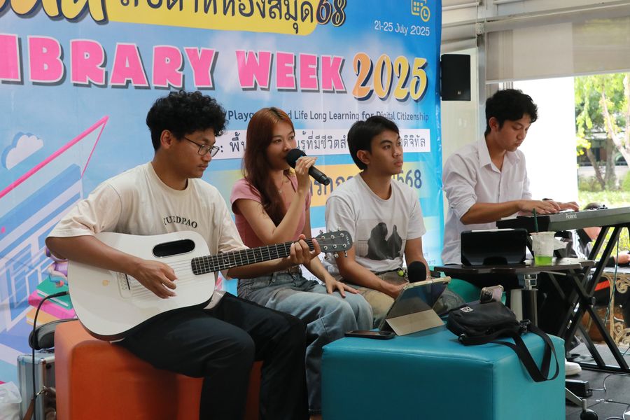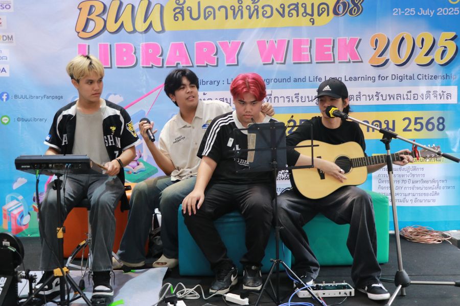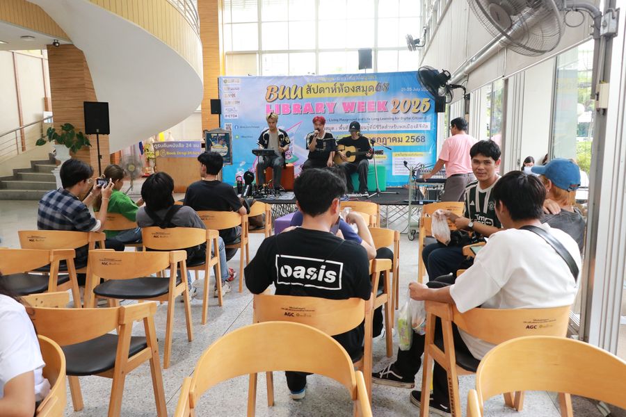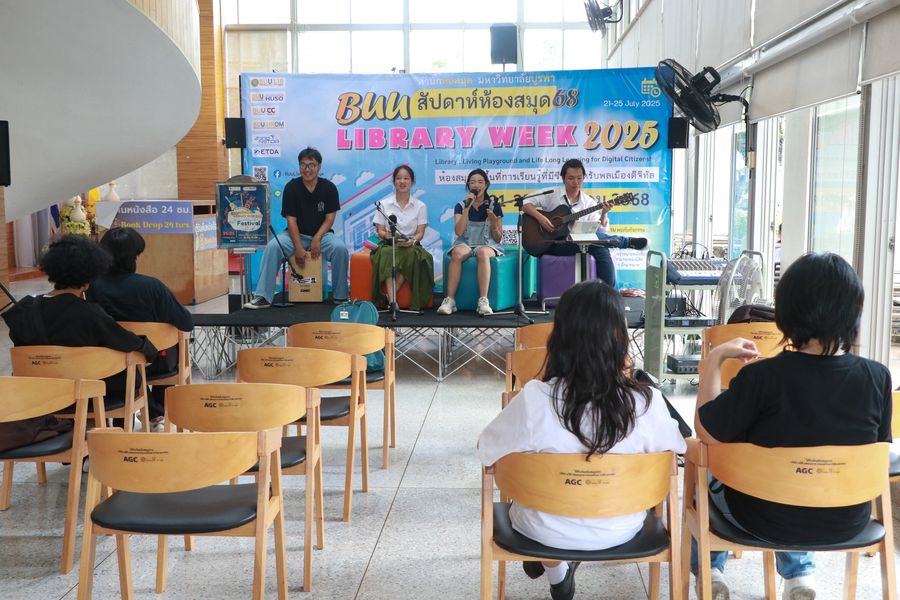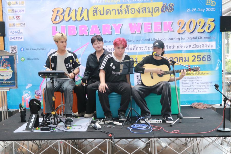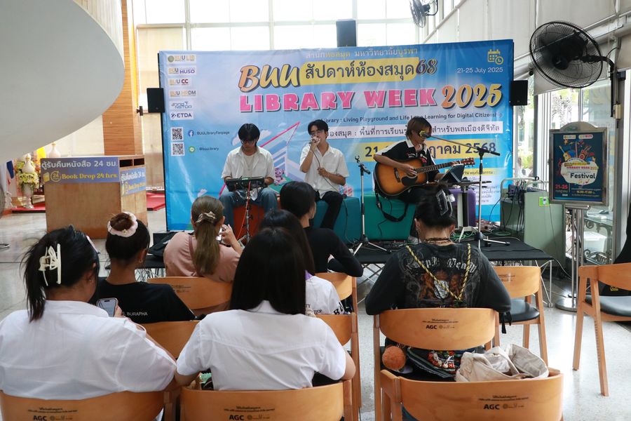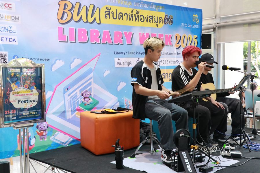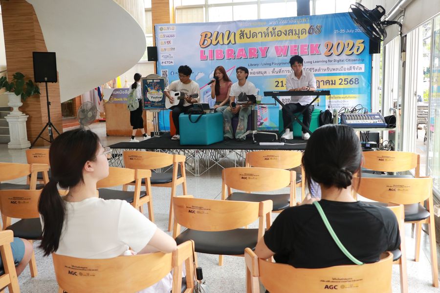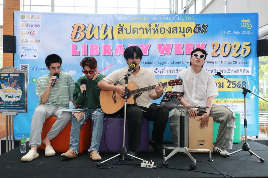 Burapha University Library held a music performance by students from the Faculty of Music and Performing Arts, Burapha University, as part of Library Week 2025. The performances were held on the 1st floor of the library from July 21 to 25, 2025.
