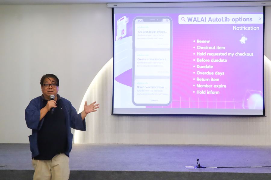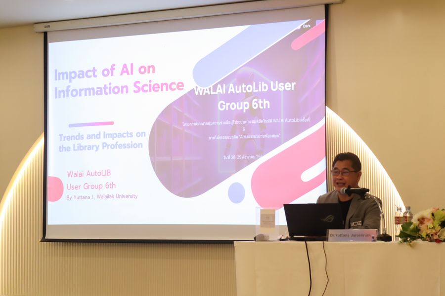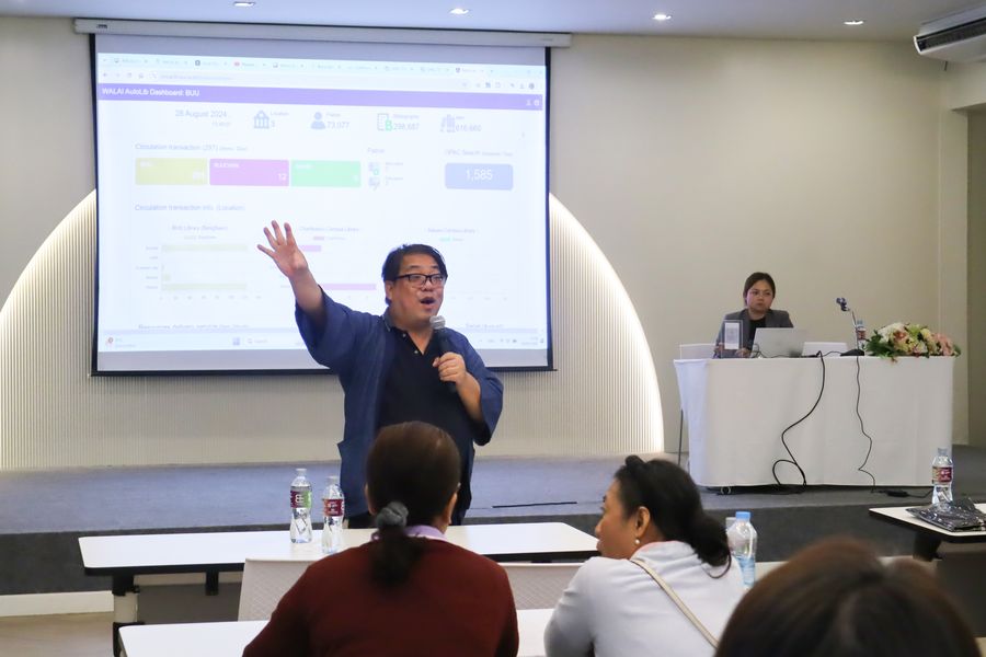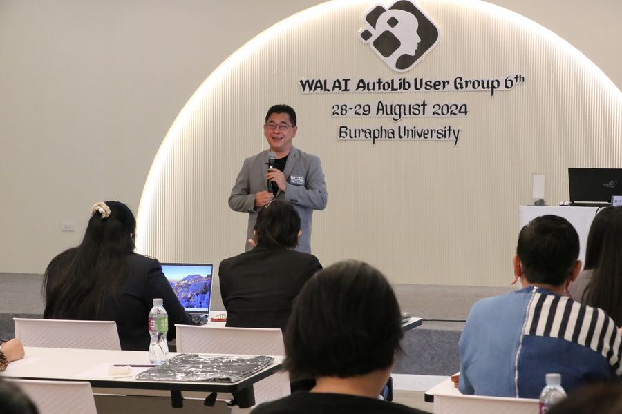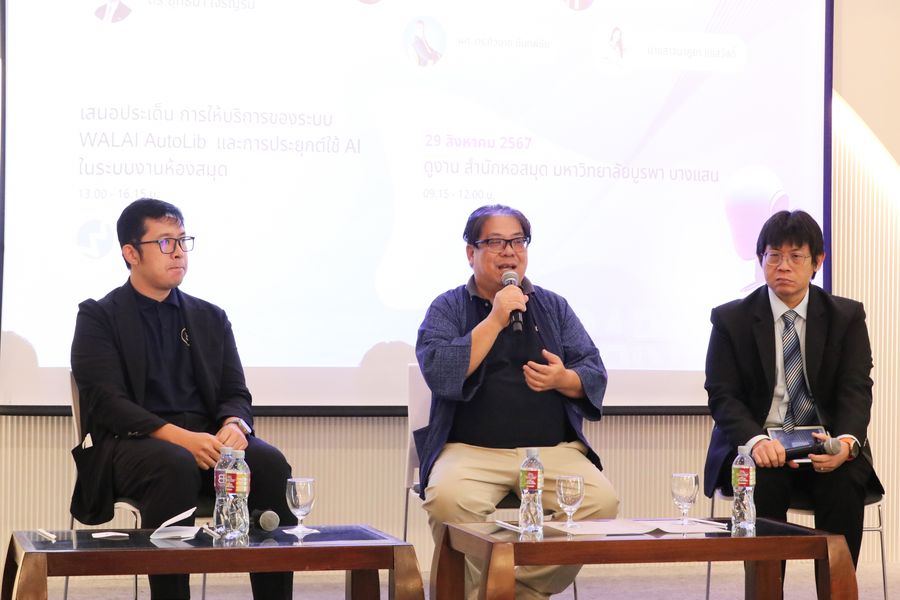 Burapha University Library, represented by Mr. Hemmarat Wachirahatthaphong, the Director of the Library, participated in the 6th WALAI AutoLib Users’ Group Seminar under the theme “AI and Library Systems”. The seminar featured a keynote lecture on “AI Technology and the Information Science Profession” delivered by Dr. Yutthana Charoenruen, along with a panel discussion on “AI Technology and Libraries: Opportunities or Threats” by Asst. Prof. Hemarat Wachirahatthaphong, Dr. Theeradech Manakun, and Assoc. Prof. Dr. Siwanat Nantaphichai.The event was held on August 28, 2024, at Bangsaen Heritage Hotel, Chonburi Province.