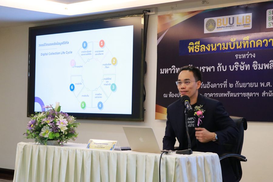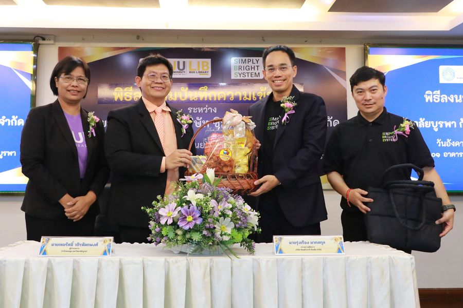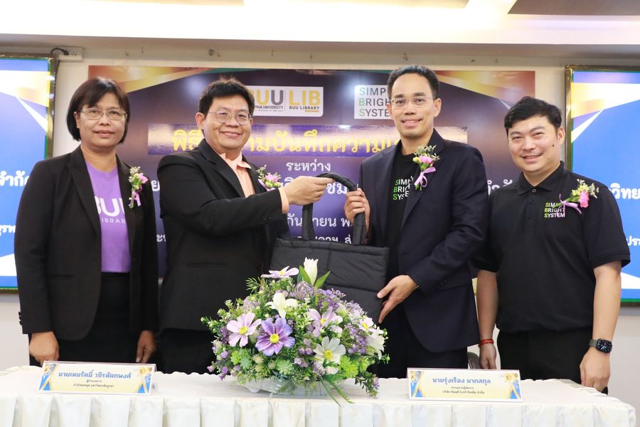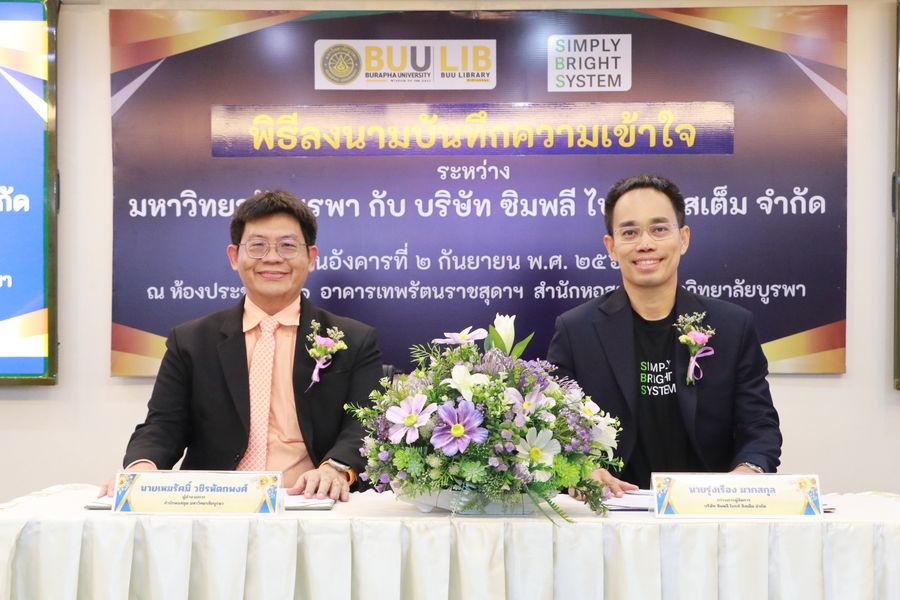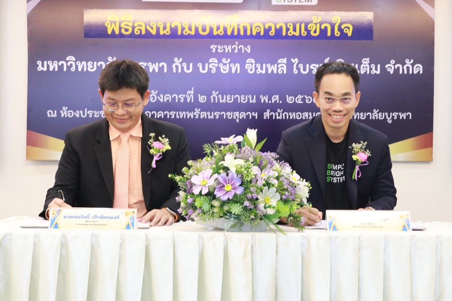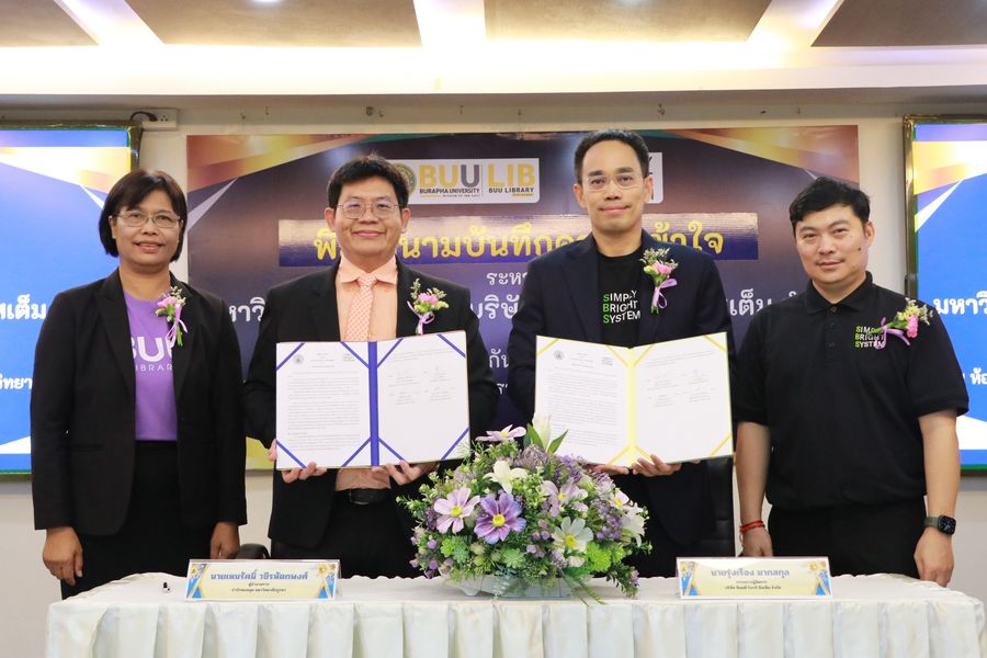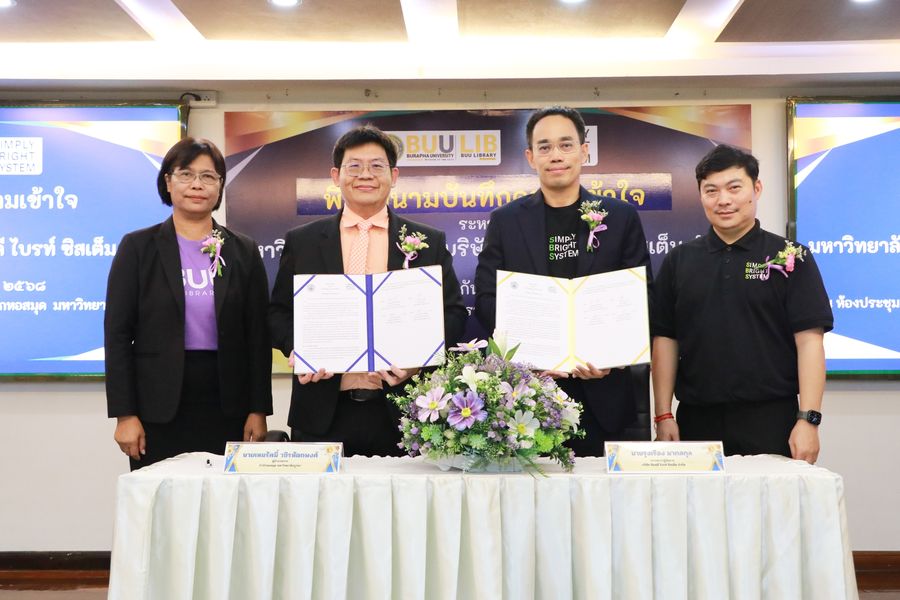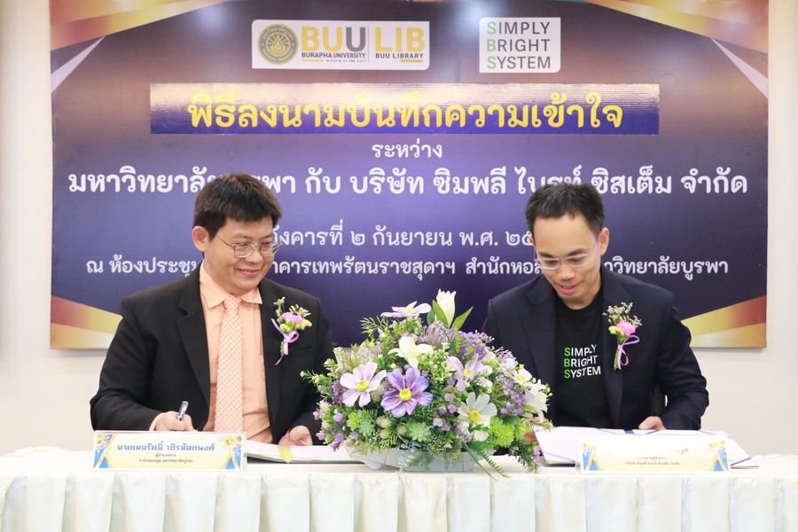 Burapha University Library held a signing ceremony for a Memorandum of Understanding (MOU) between Burapha University Library and Simply Bright System Co., Ltd.