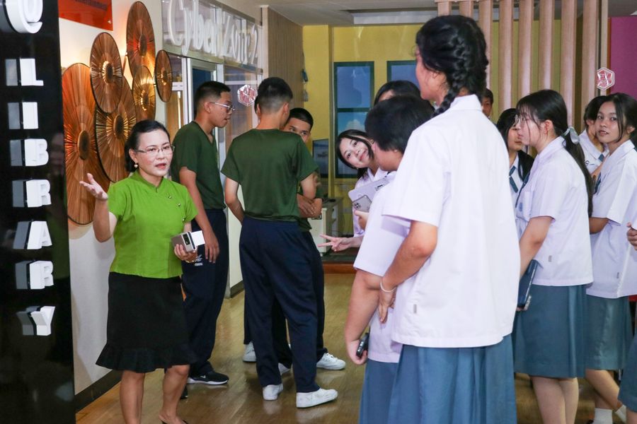 และนวัตกรรม โรงเรียนสาธิต “พิบูลบำเพ็ญ” ที่นำนักเรียนมาเยี่ยมชมสำนักหอสมุด ในโครงการปฐมนิเทศการใช้ห้องสมุด ระหว่างวันที่ 30 มิถุนายน – 4 กรกฎาคม พ.ศ. 2568 โดยมีบรรณารักษ์และนักเอกสารสนเทศให้การต้อนรับและนำชมห้องสมุด เพื่อให้นักเรียนมีความรู้ ความเข้าใจ