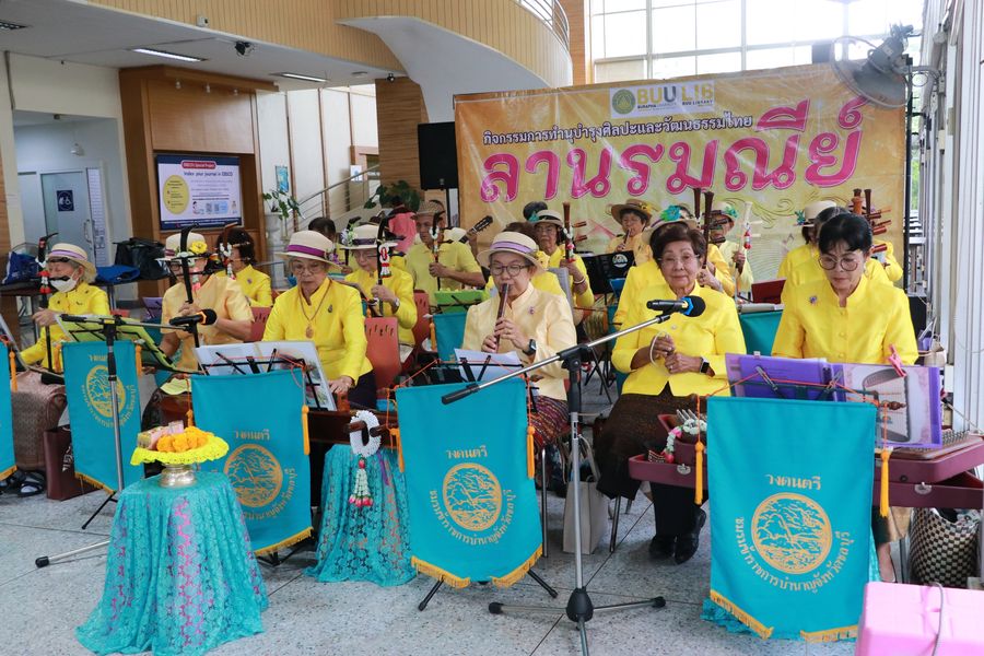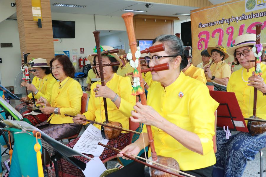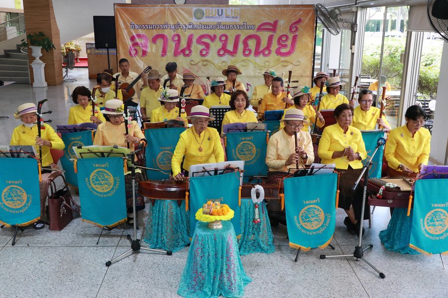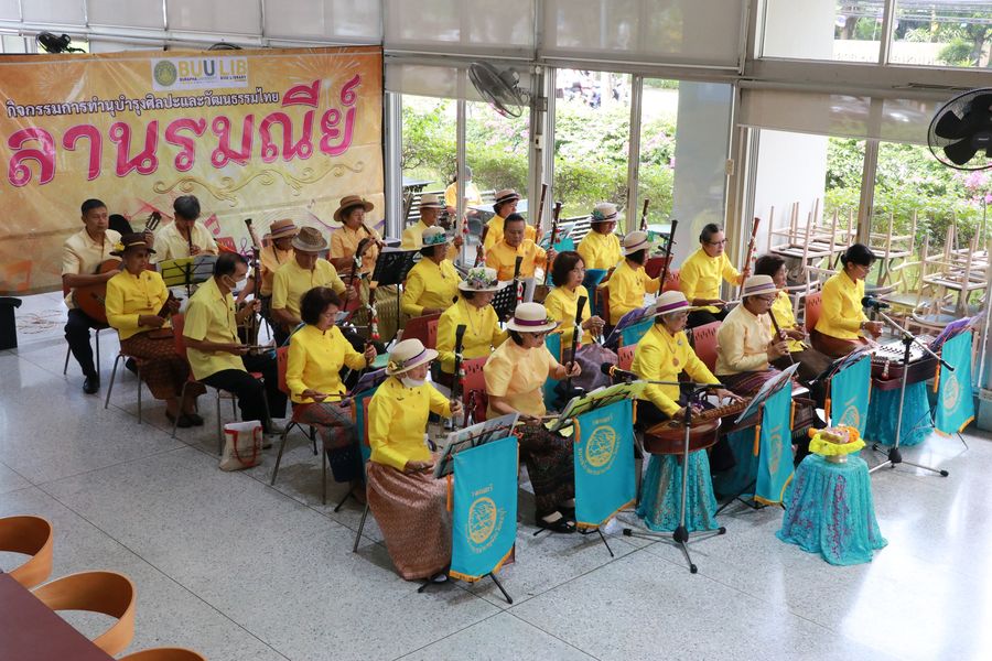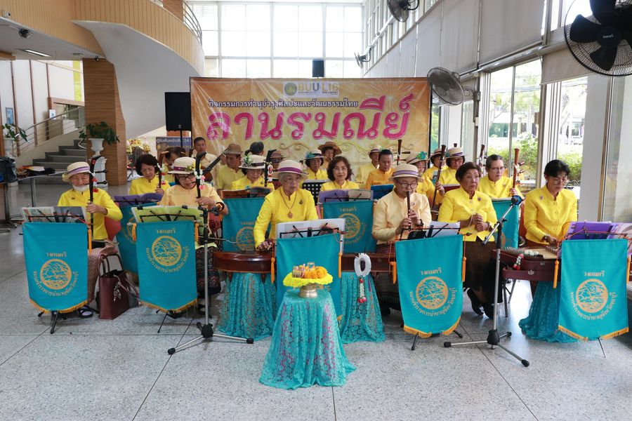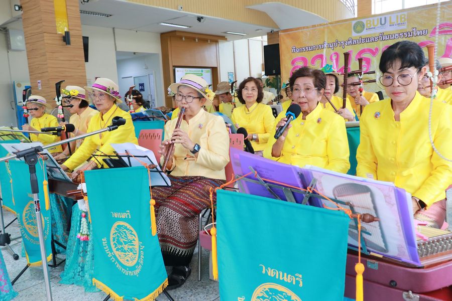 สำนักหอสมุด จัดโครงการทำนุบำรุงศิลปะกับการบรรเลงและขับร้องดนตรีไทย โดยชมรมข้าราชการบำนาญจังหวัดชลบุรี ครั้งที่ 10/2568 เมื่อวันที่ 29 กรกฎาคม 2568 ณ ห้องโถง ชั้น 1 สำนักหอสมุด มหาวิทยาลัยบูรพา เพื่อปลูกฝังและสร้างแรงบันดาลใจ ตลอดจนสร้างทัศนคติที่ดีให้แก่นิสิตในการอนุรักษ์ดนตรีไทยอันเป็นมรดกทางวัฒนธรรมที่สำคัญของประเทศให้คงอยู่สืบไป