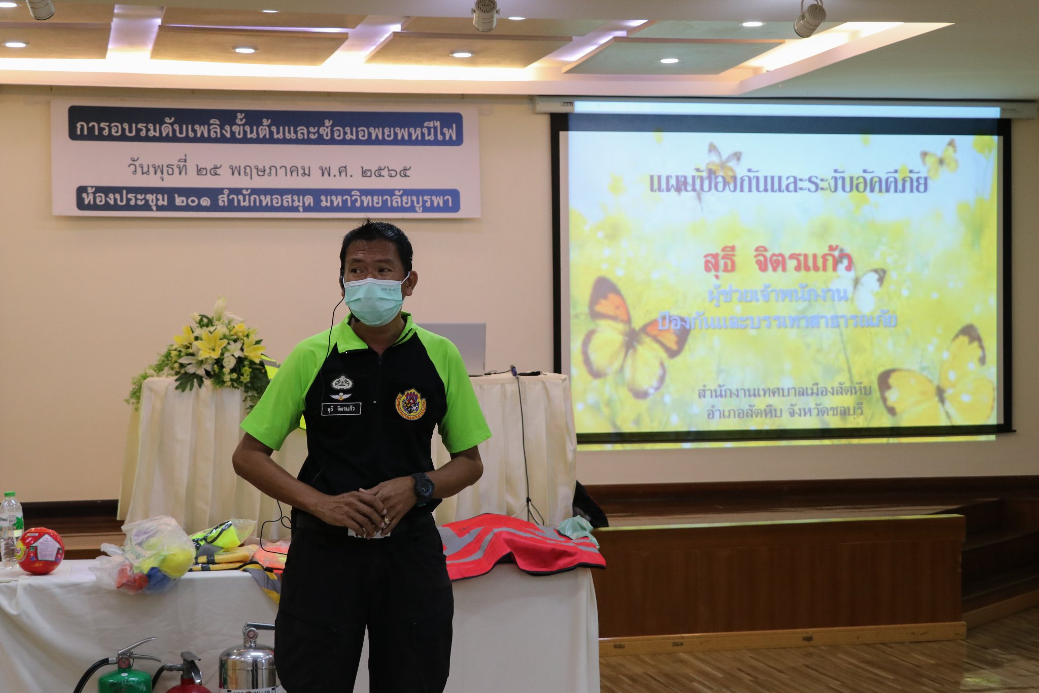 สำนักหอสมุด มหาวิทยาลัยบูรพา ดำเนินการจัดอบรมเชิงปฏิบัติการ เรื่อง การอบรมดับเพลิงขั้นต้นและซ้อมอพยพหนีไฟ เพื่อให้บุคลากรได้ทราบการป้องกันแหล่งกำเนิดของการติดไฟ เครื่องมือดับเพลิง และวิธีการใช้อุปกรณ์คุ้มครองความปลอดภัยส่วนบุคคลที่ใช้ในการดับเพลิง การจัดทำแผนป้องกันและระงับอัคคีภัย รวมถึงการฝึกดับเพลิงโดยใช้ถังดับเพลิง โดยวิทยากรจากงานป้องกันและบรรเทาสาธารณภัย อบต. สำนักบก จังหวัดชลบุรี เมื่อวันที่ 25 พฤษภาคม 2565