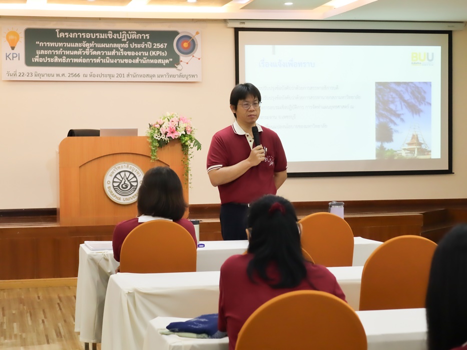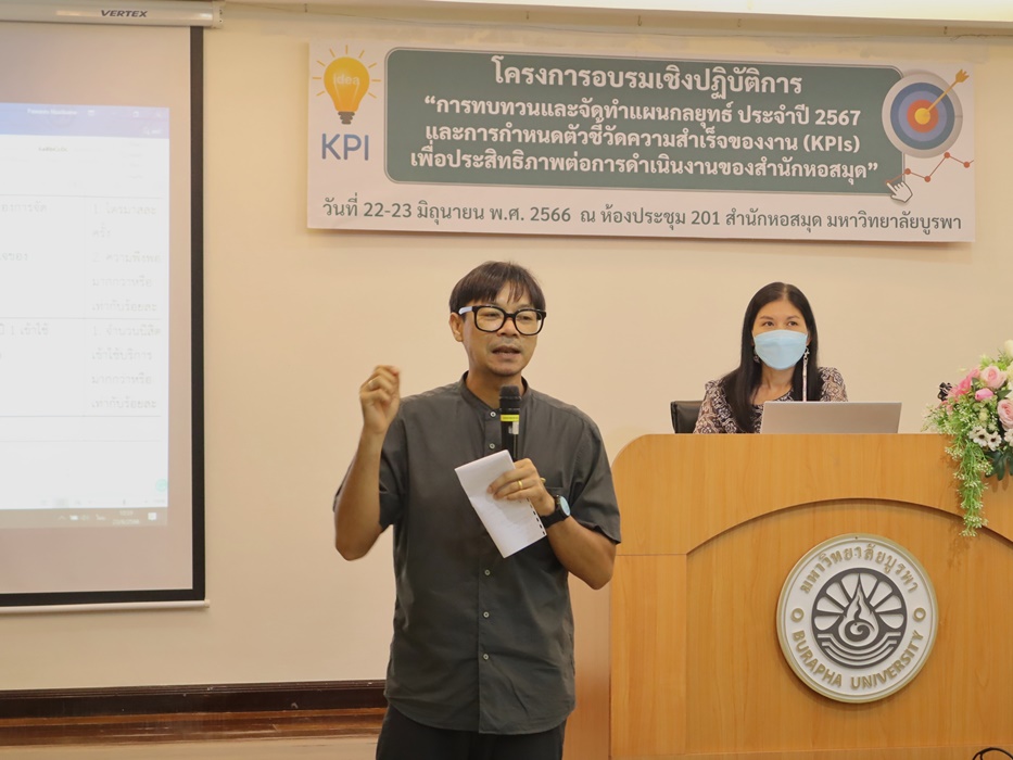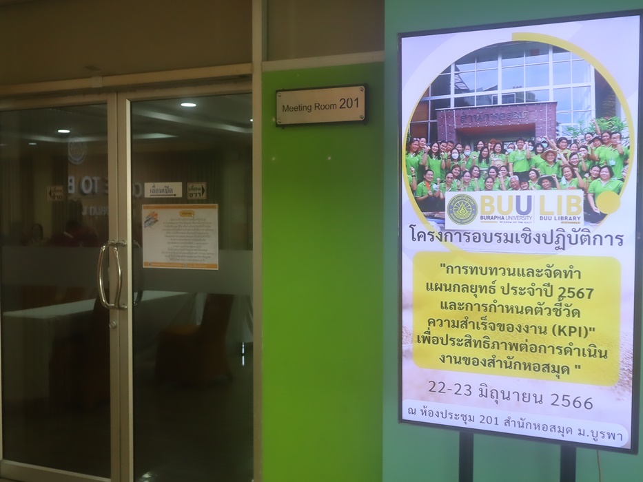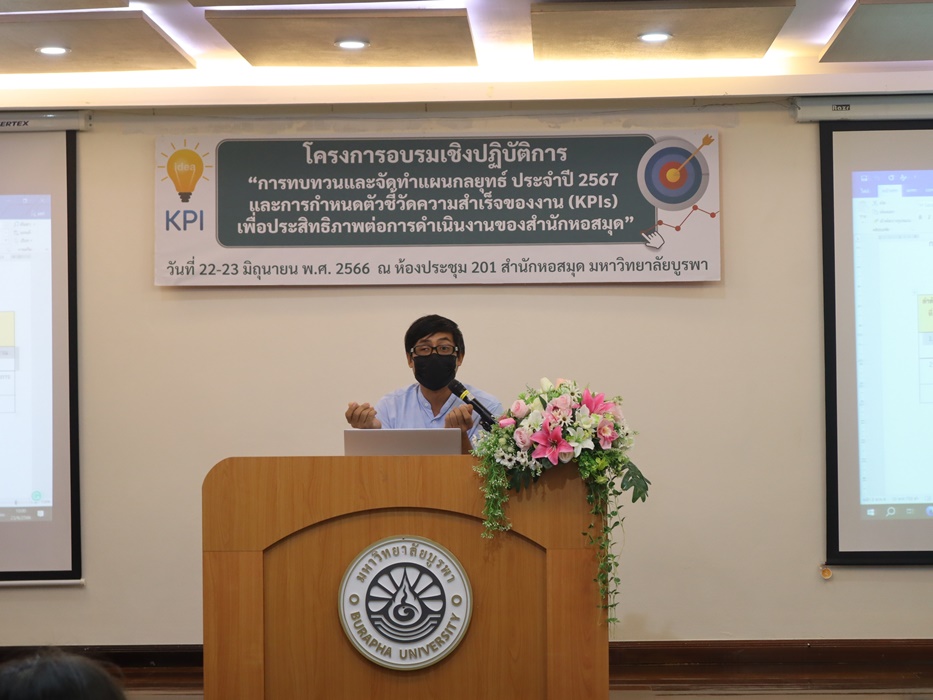 สำนักหอสมุด มหาวิทยาลัยบูรพา ได้จัดโครงการอบรมเชิงปฏิบัติการเรื่อง การทบทวนและจัดทำแผนกลยุทธ์ ประจำปี 2567 และการกำหนดตัวชี้วัดความสำเร็จของงาน (KPIs) เพื่อประสิทธิภาพต่อการดำเนินงานของสำนักหอสมุด เมื่อวันที่ 22-23 มิถุนายน พ.ศ. 2566 เวลา 08.30-16.00 น. ณ ห้องประชุม 201