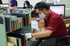 บุคลากรสำนักหอสมุด ร่วมแรงรวมใจสำรวจ คัดกรอง เพื่อจำหน่ายออกทรัพยากรสารสนเทศล้าสมัย และขยายชั้นวางหนังสือ ในโครงการสำรวจ คัดกรอง เพื่อจำหน่ายออกทรัพยากรสารสนเทศล้าสมัย ระหว่างวันที่ 3-18 พฤศจิกายน 2565