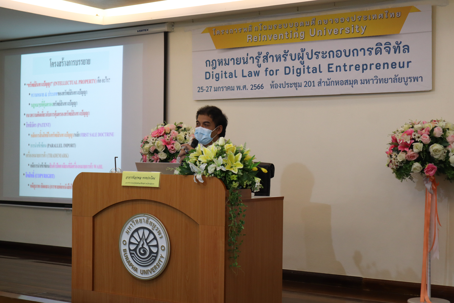 สำนักหอสมุด มหาวิทยาลัยบูรพา จัดการอบรมหลักสูตรฝึกอบรมระยะสั้น “กฎหมายน่ารู้สำหรับผู้ประกอบการดิจิทัล (Digital Law for Digital Entrepreneur)” โดยอาจารย์ประจำคณะรัฐศาสตร์และนิติศาสตร์ มหาวิทยาลัยบูรพา