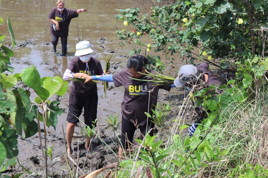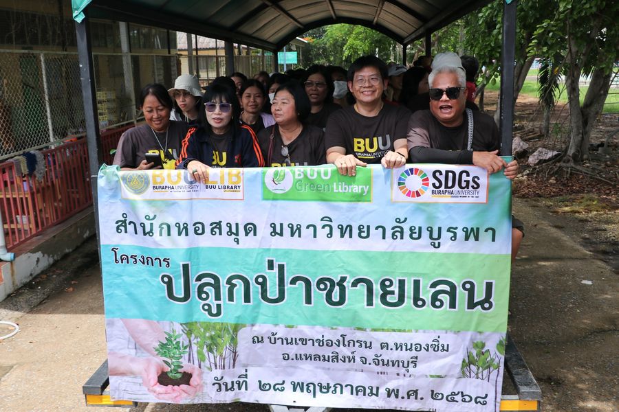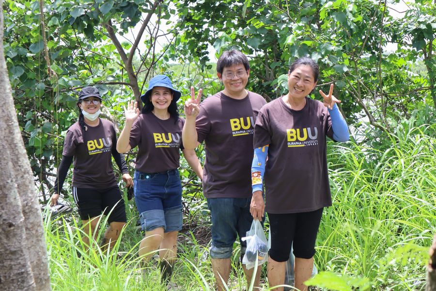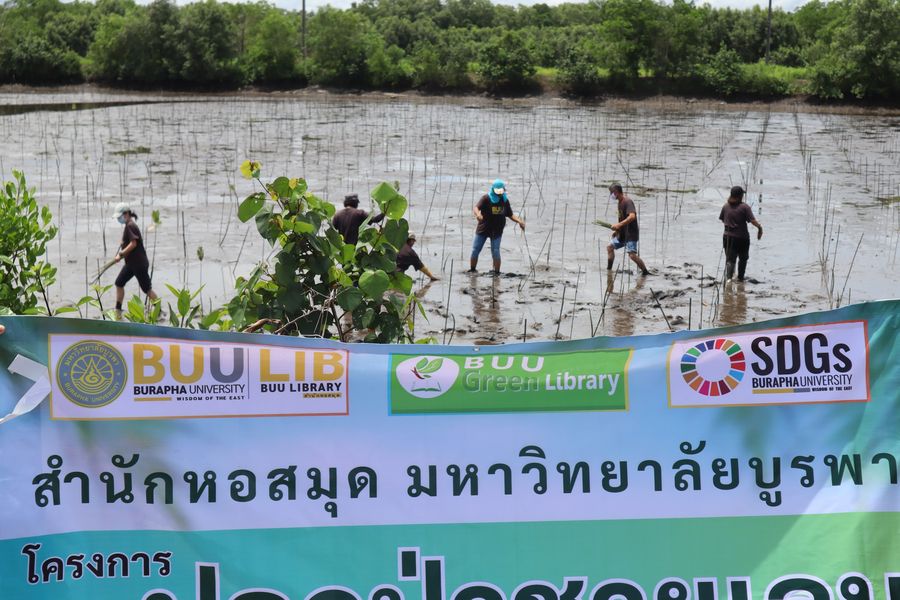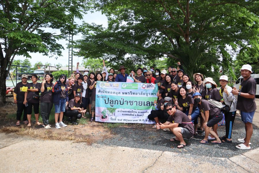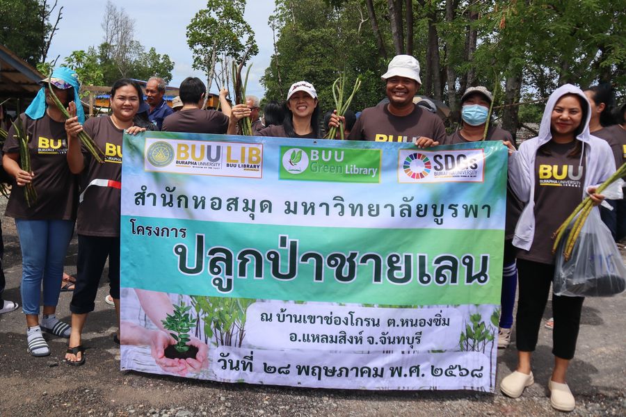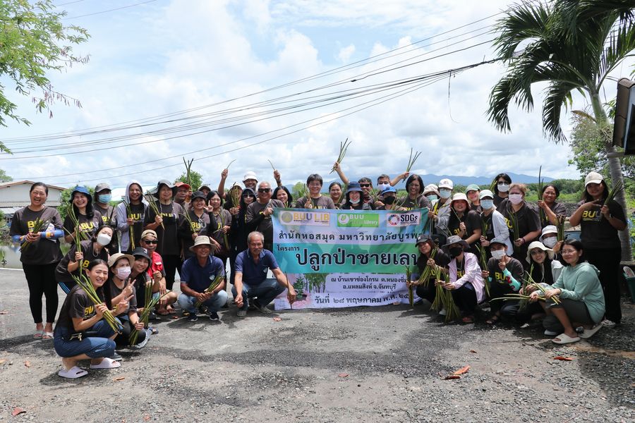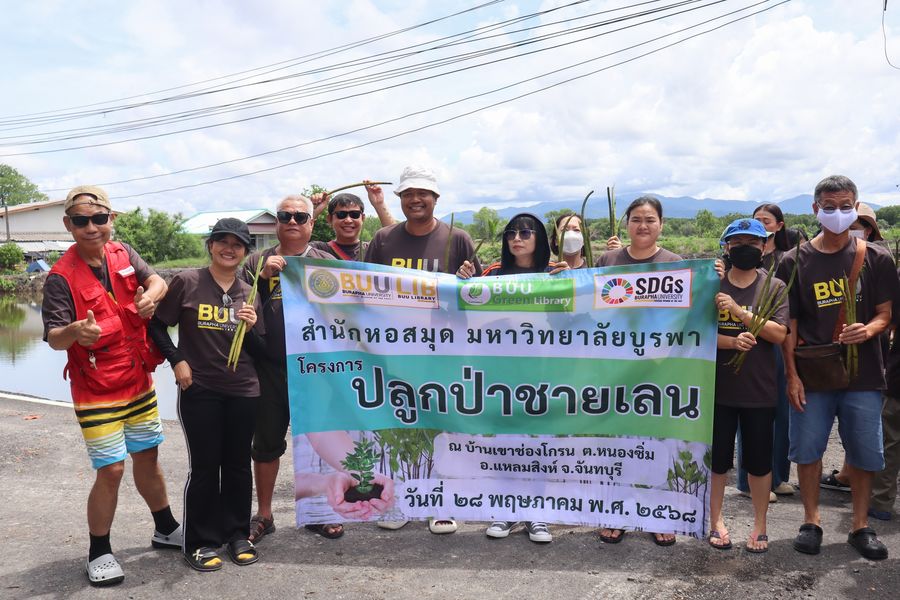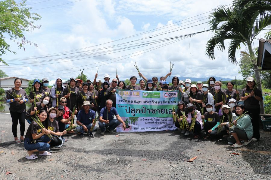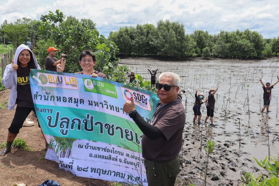 สำนักหอสมุด โดยอาจารย์เหมรัศมิ์ วชิรหัตถพงศ์ ผู้อำนวยการสำนักหอสมุด พร้อมด้วยบุคลากร ร่วมปลูกป่าชายเลน ณ บ้านเขาช่องโกรน ตำบลหนองซิ่ม อำเภอแหลมสิงห์ จังหวัดจันทบุรี