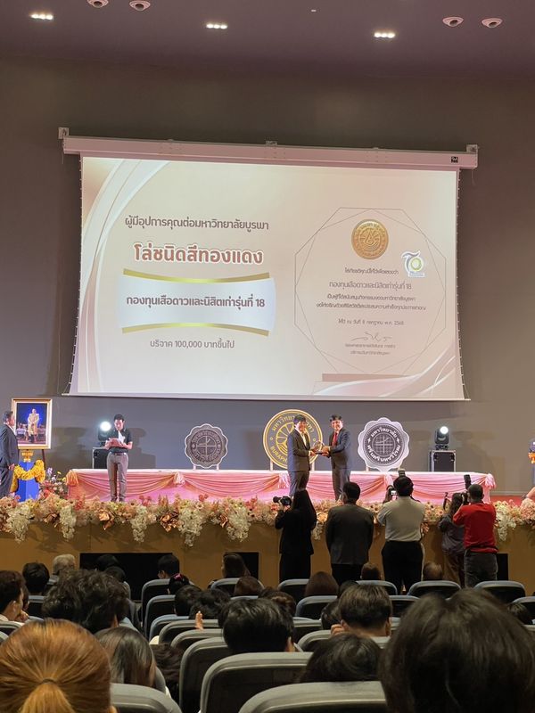 สำนักหอสมุด โดยผู้บริหารและบุคลากรสำนักหอสมุด เข้าร่วมงานวันสถาปนามหาวิทยาลัยบูรพา ในโอกาสครบรอบ 70 ปี “8 กรกฎ” โดยอาจารย์เหมรัศมิ์ วชิรหัตถพงศ์ ผู้อำนวยการสำนักหอสมุด เป็นตัวแทนกองทุนเสือดาวและนิสิตเก่ารุ่นที่ 18 เข้ารับมอบโล่สมนาคุณ ผู้มีอุปการคุณต่อมหาวิทยาลัย ที่ได้มอบเงินบริจาคให้กับสำนักหอสมุดเพื่อการจัดซื้อวัสดุ ครุภัณฑ์ และดำเนินการในกิจกรรมที่เกี่ยวข้องกับการพัฒนาจดหมายเหตุมหาวิทยาลัยบูรพา ทั้งนี้มีบุคลากรสำนักหอสมุดเข้ารับพิธีมอบเครื่องราชอิสริยาภรณ์อันเป็นที่สรรเสริญยิ่งดิเรกคุณาภรณ์ ประจำปี 2567 (นางสาวนิสาชล กาญจนพิชิต) และรับมอบเข็มเชิดชูเกียรติมหาวิทยาลัยบูรพา (นายเฉลิมเกียรติ ดีสม) เมื่อวันที่ 8 กรกฎาคม 2568 ณ หอประชุมธำรง บัวศรี มหาวิทยาลัยบูรพา