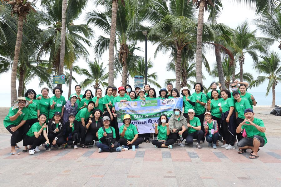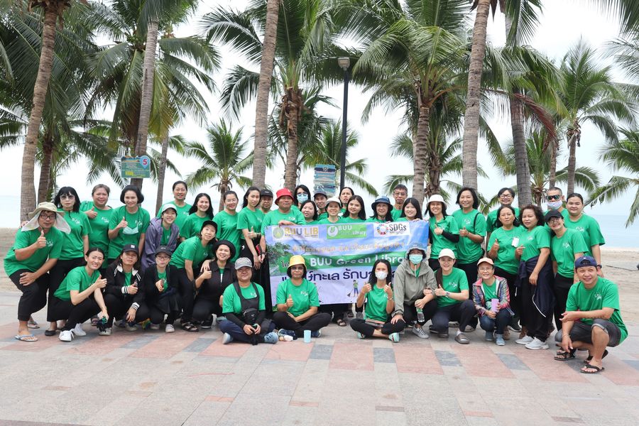 สำนักหอสมุด มหาวิทยาลัยบูรพา ร่วมเก็บขยะบริเวณชายหาดบางแสน ซึ่งเป็นกิจกรรม