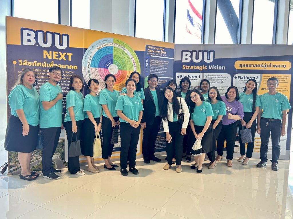 สำนักหอสมุด นำโดยอาจารย์เหมรัศมิ์ วชิรหัตถพงศ์ ผู้อำนวยการสำนักหอสมุด พร้อมด้วยบุคลากร เข้าร่วมงาน BUU Step Forward 2026: “เรากำลังเดินหน้า เพราะเรารู้ว่าจะไปทางไหน” สะท้อนความสำเร็จจากปี 2568 สู่ทิศทางใหม่ในปี 2569 เมื่อวันที่ 18 กันยายน พ.ศ. 2568